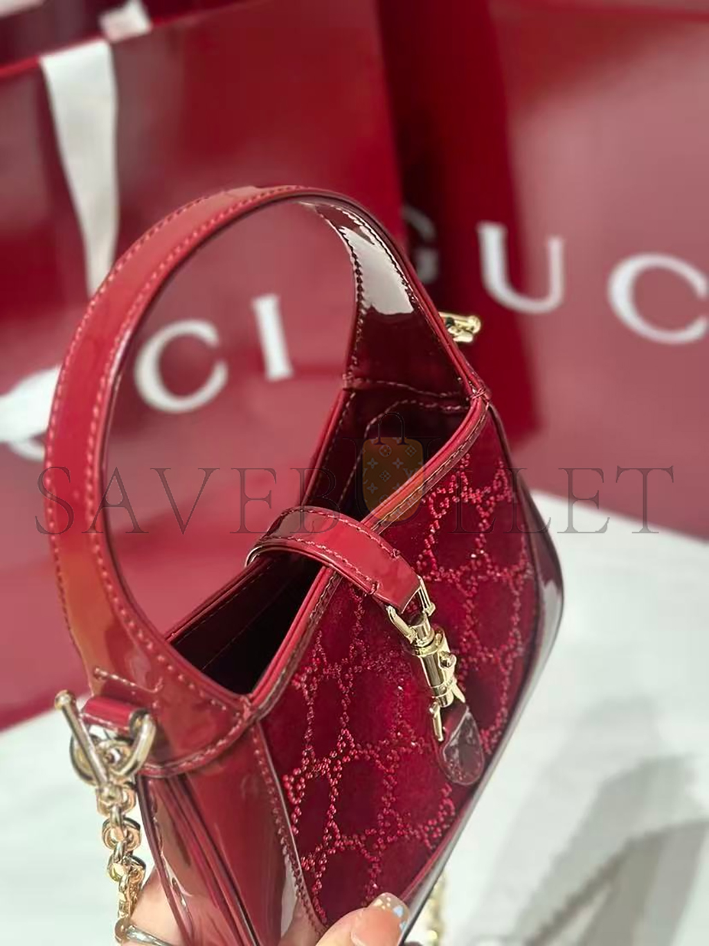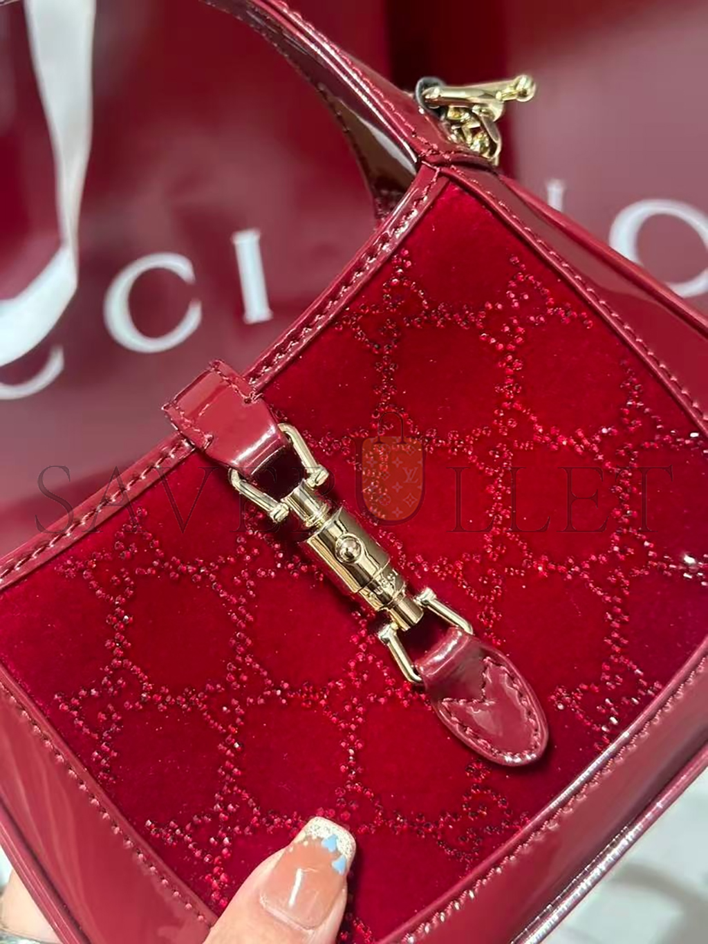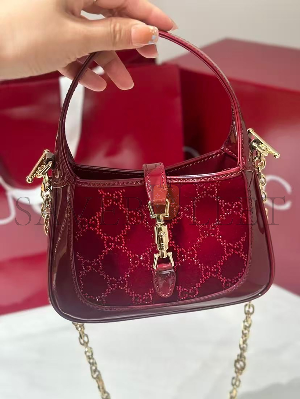 Gucci Rosso Ancora red velvet with GG crystal