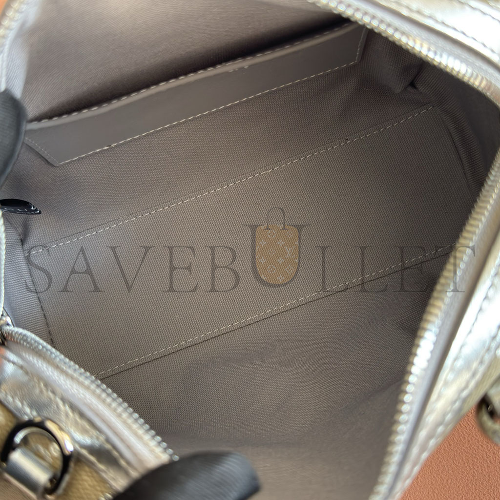 Light beige and metallic silver laminated-effect GG Monogram coated fabric