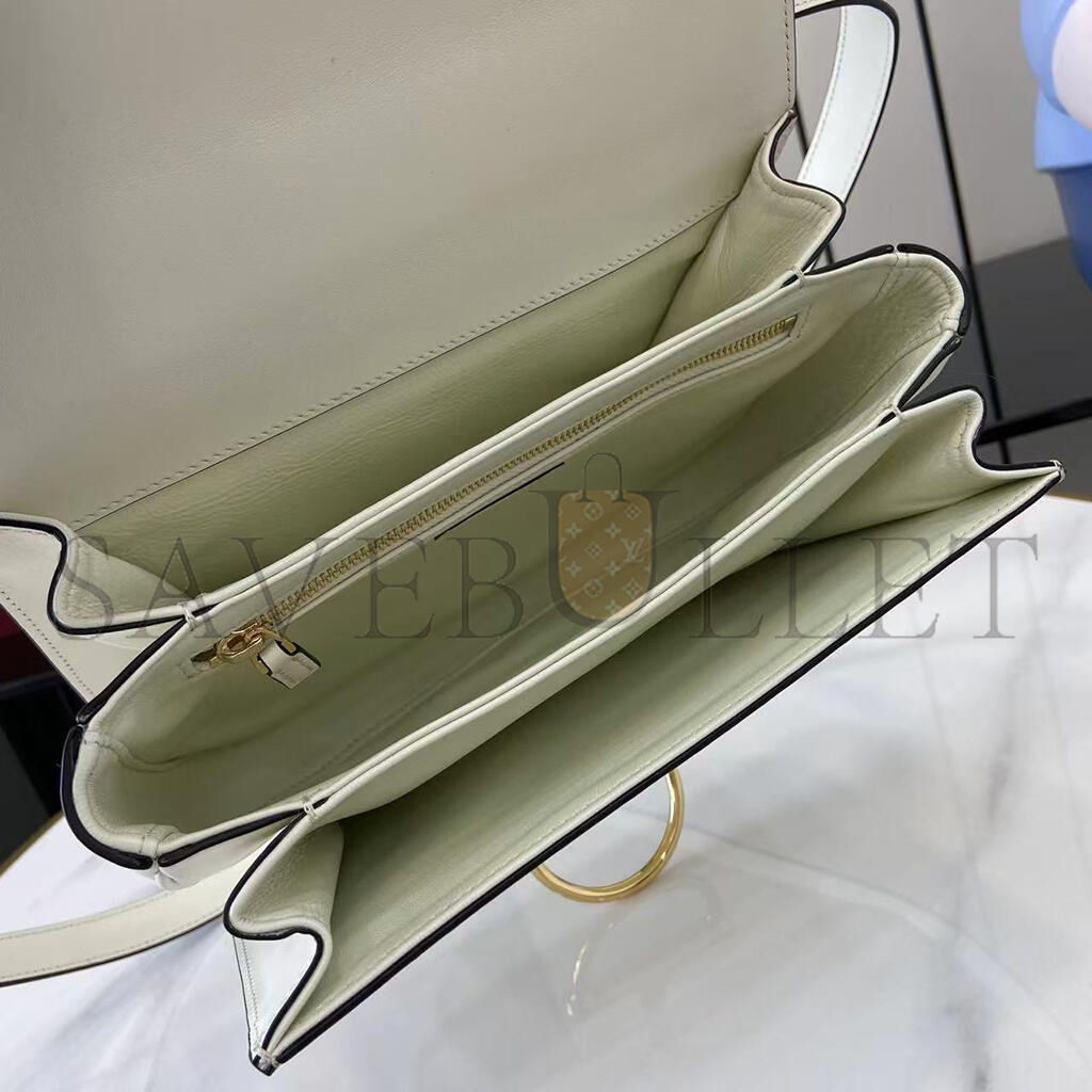 Shoulder, crossbody or hand carryDetachable and adjustable leather strapDetachable donut chain adorned with an Anagram PebbleDiscreet magnetic closure..
