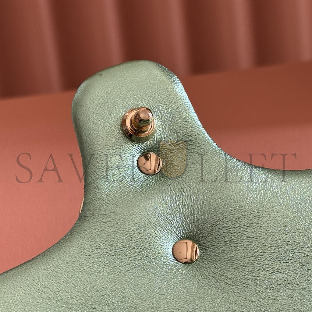 Pale mint green matelassé chevron lamé leather