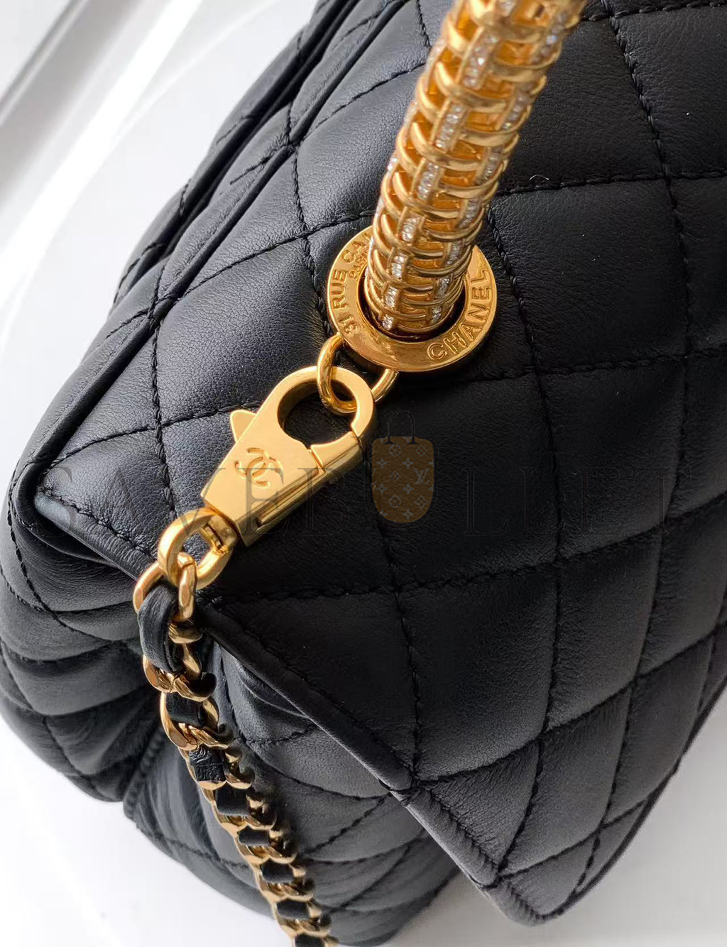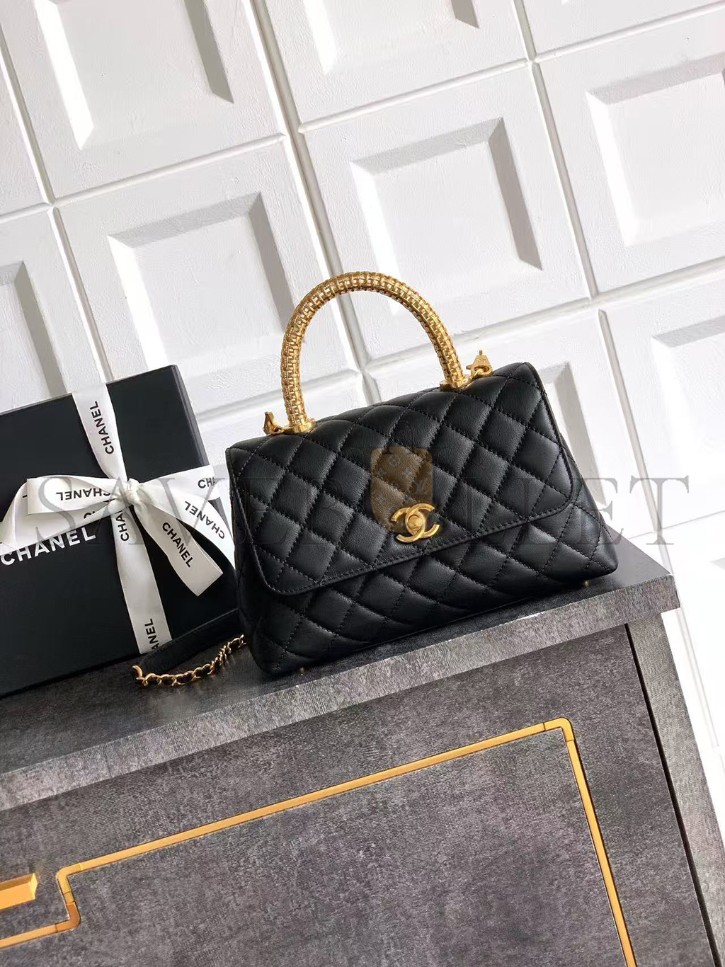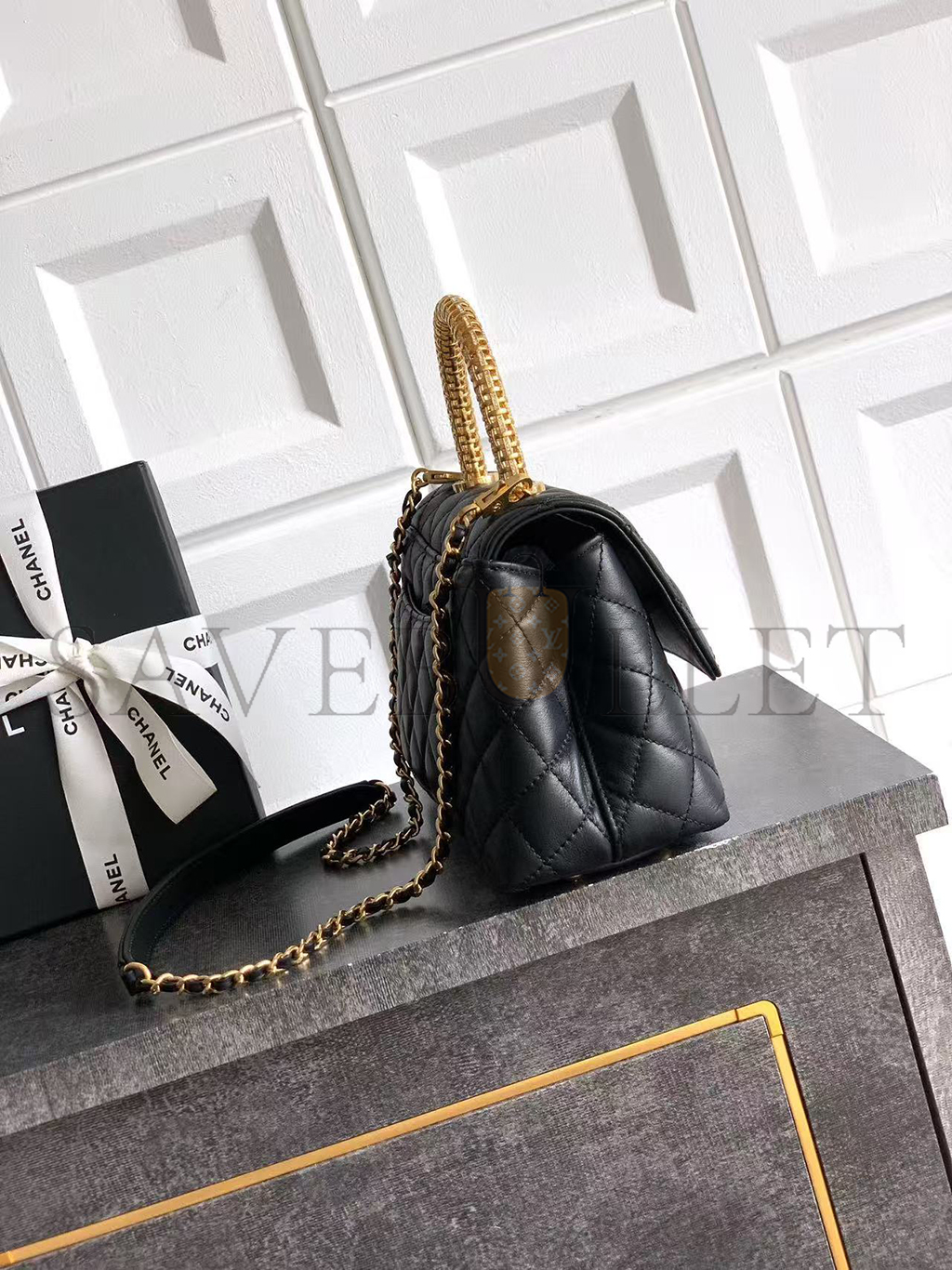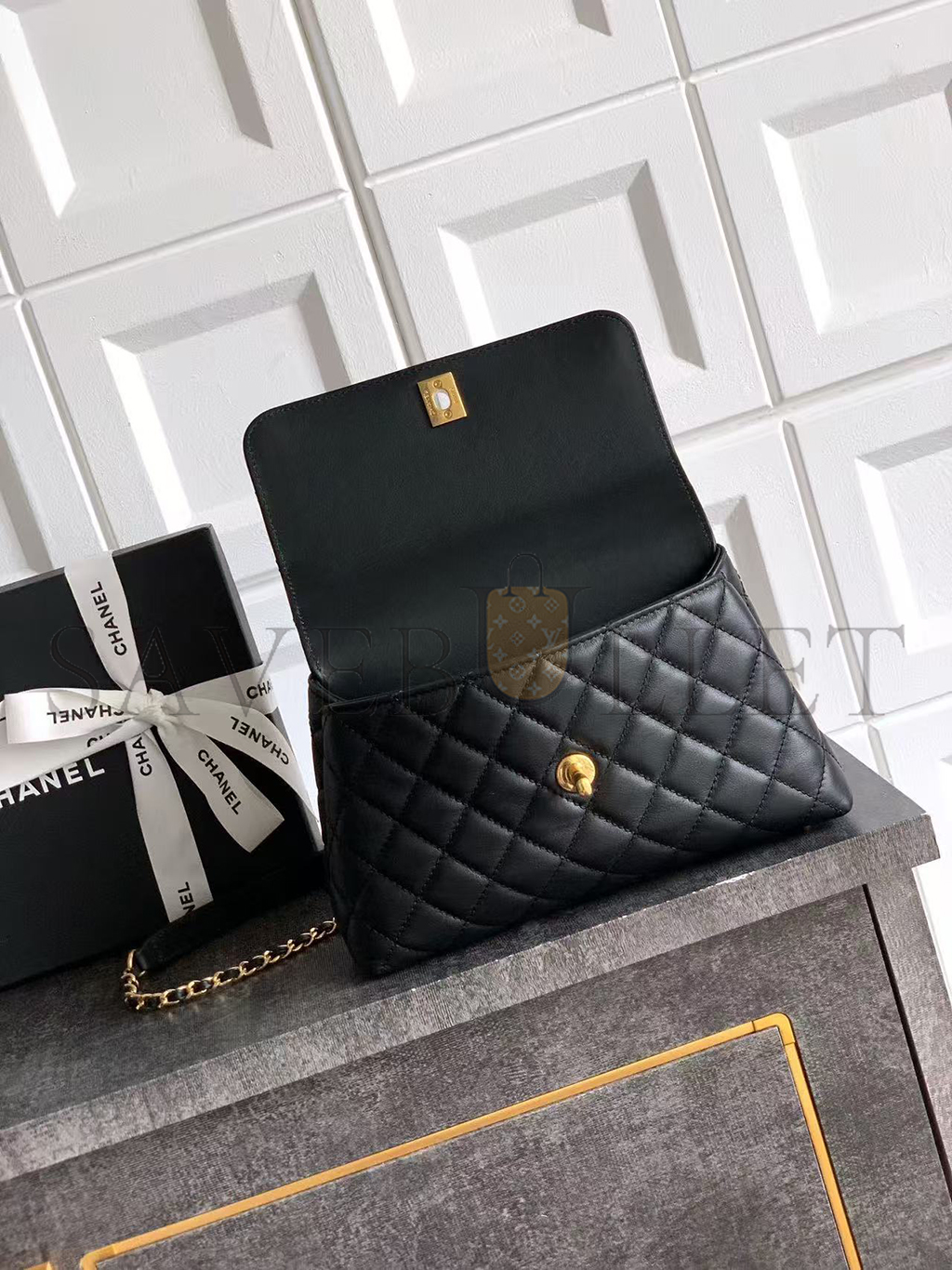 CHANEL 25A CALFSKIN QUILTED TOP HANDLE FLAP BAG 625301 (23*14*8cm)