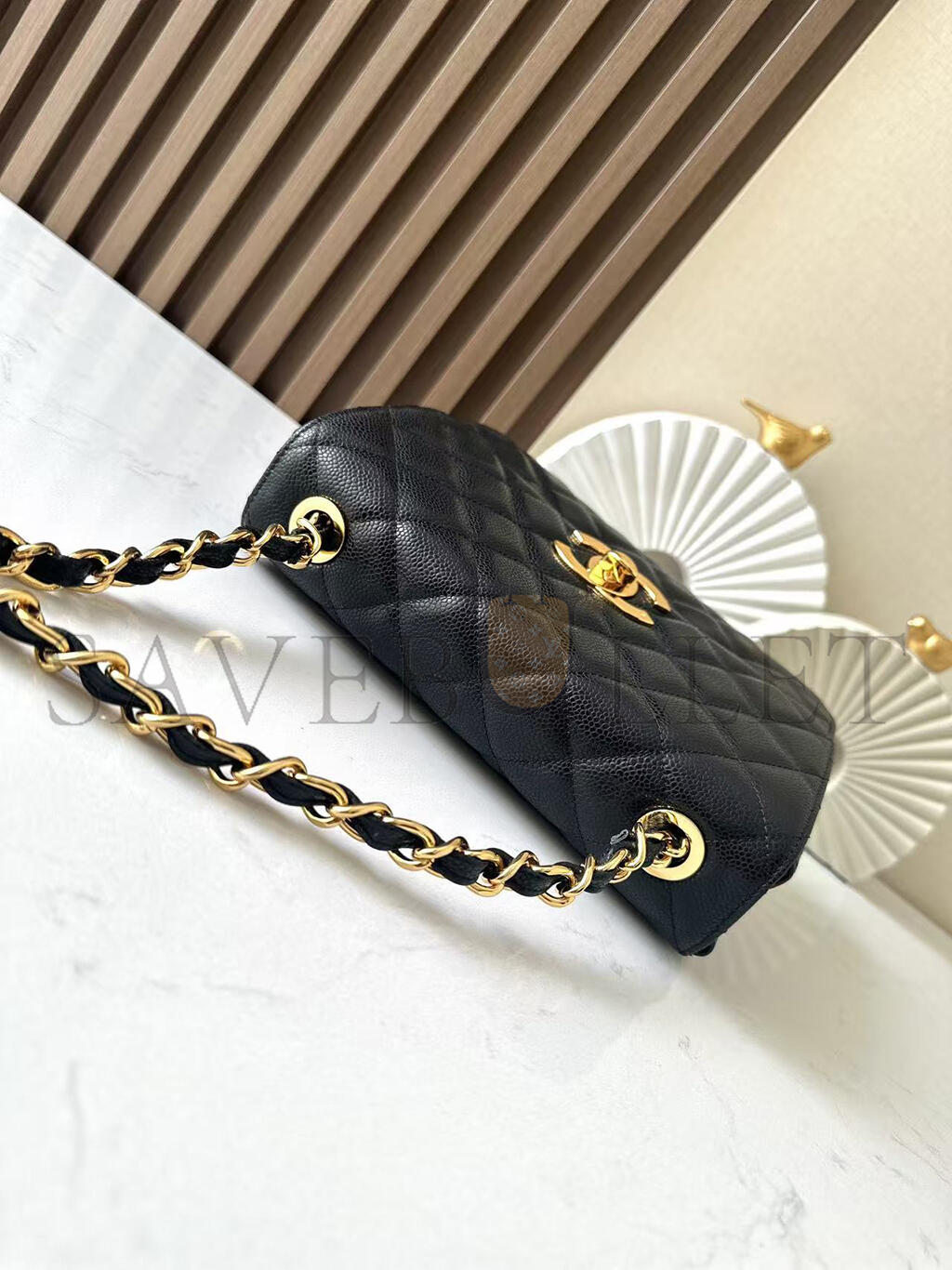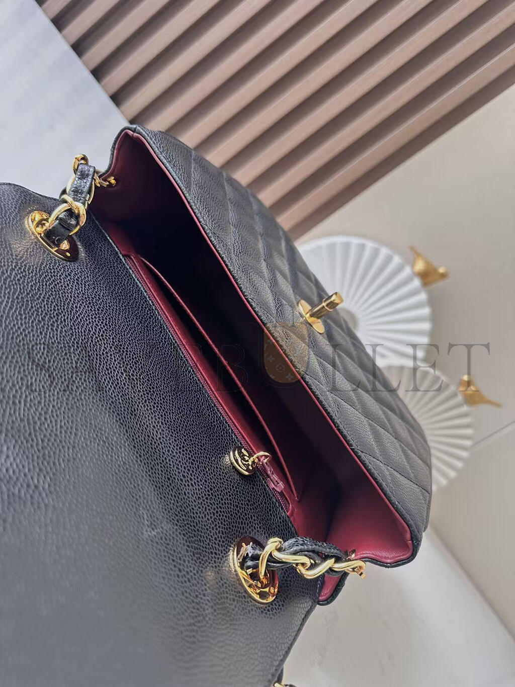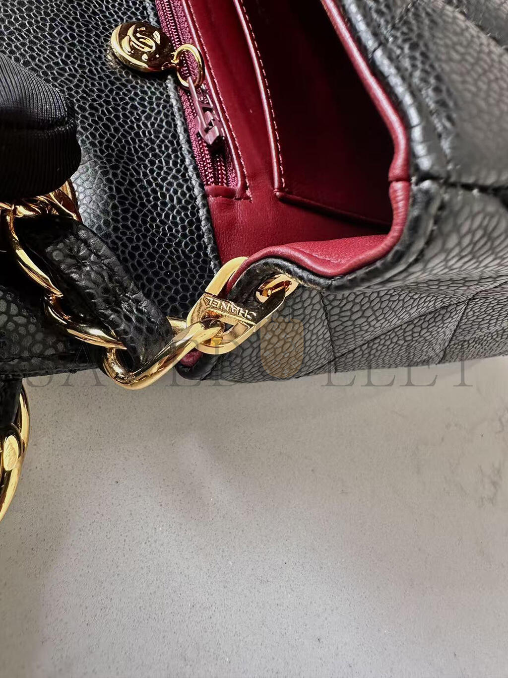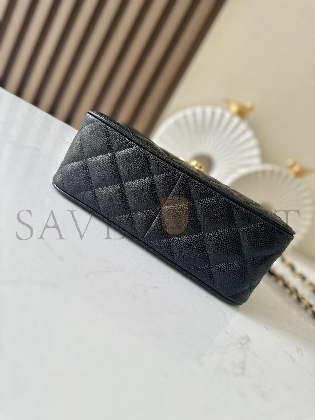 CHANEL BLACK QUILTED CAVIAR XL CC JUMBO SQUARE FLAP GOLD HARDWARE 1157428 (25*20.5*9cm)
