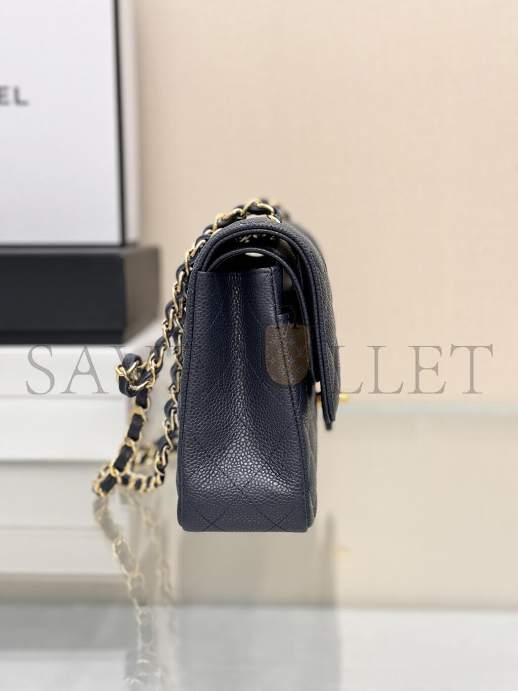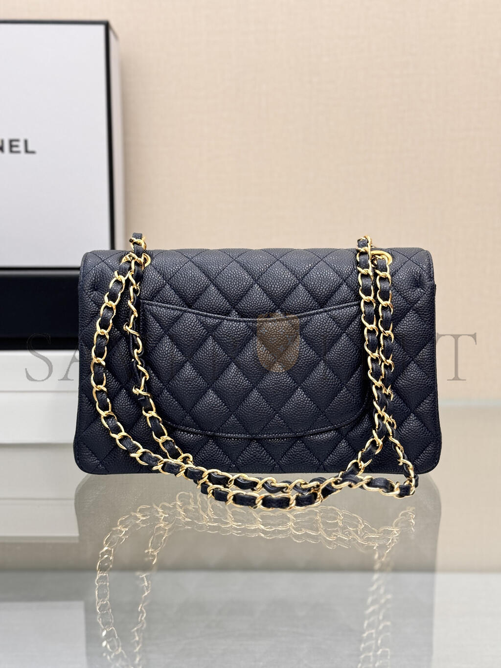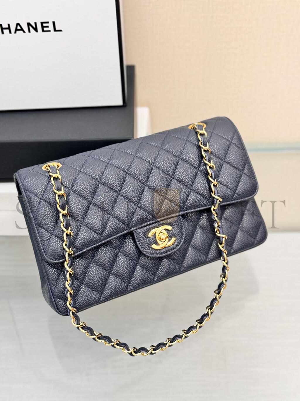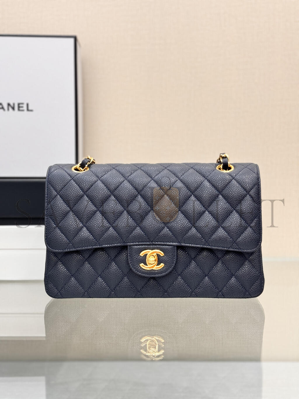 CHANEL MASTER CAVIAR LARGE CLASSIC FLAP GOLD METAL BLUE BAG A01112 (25*16*6cm)