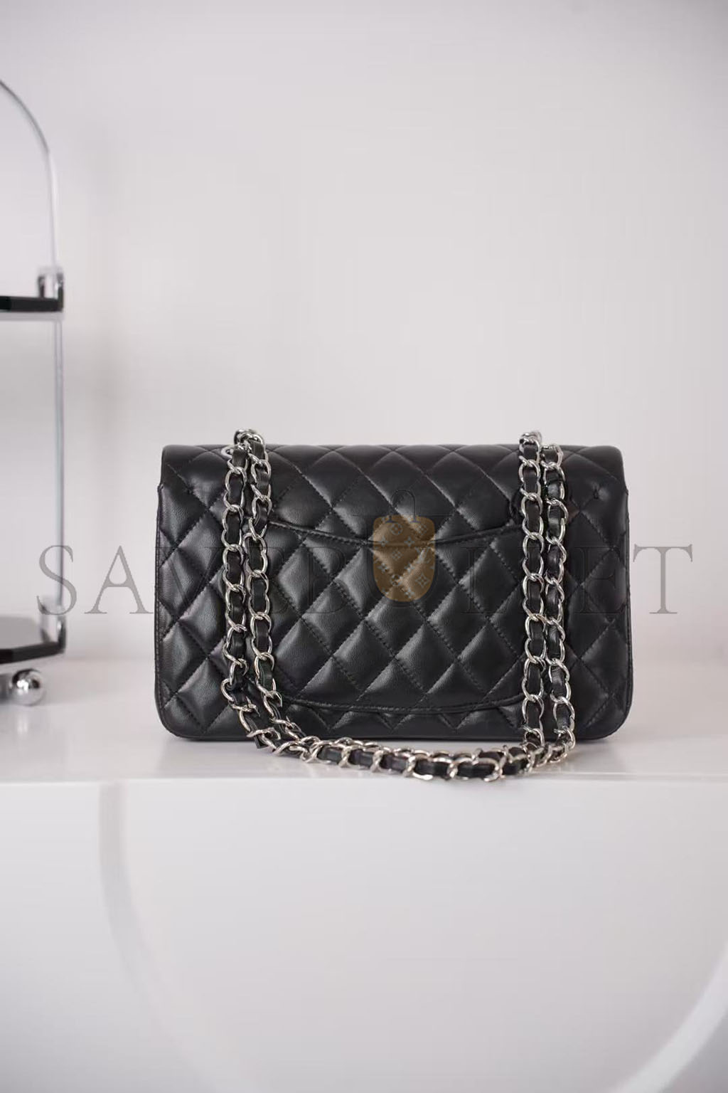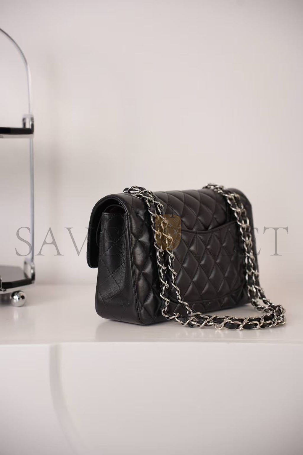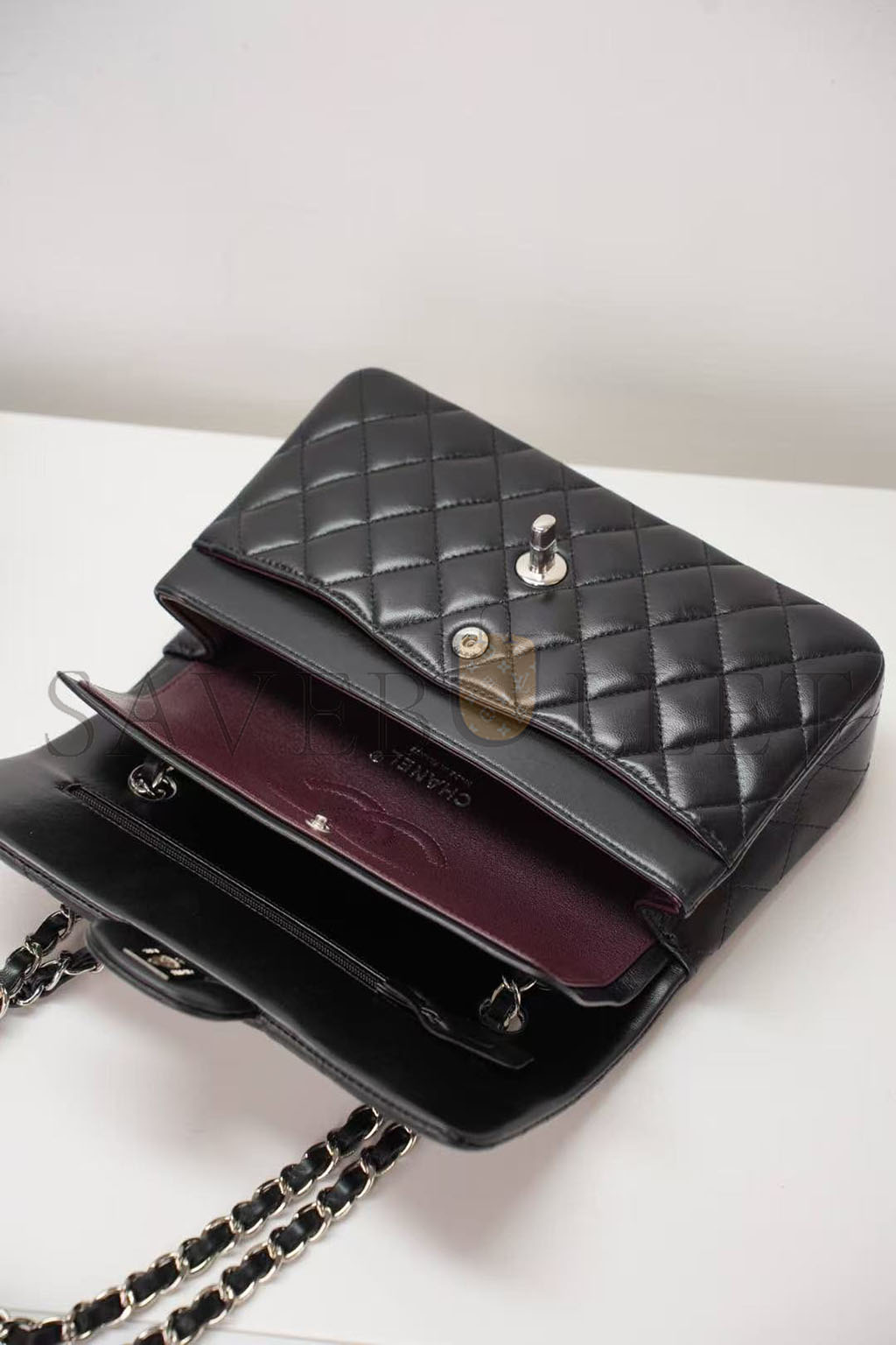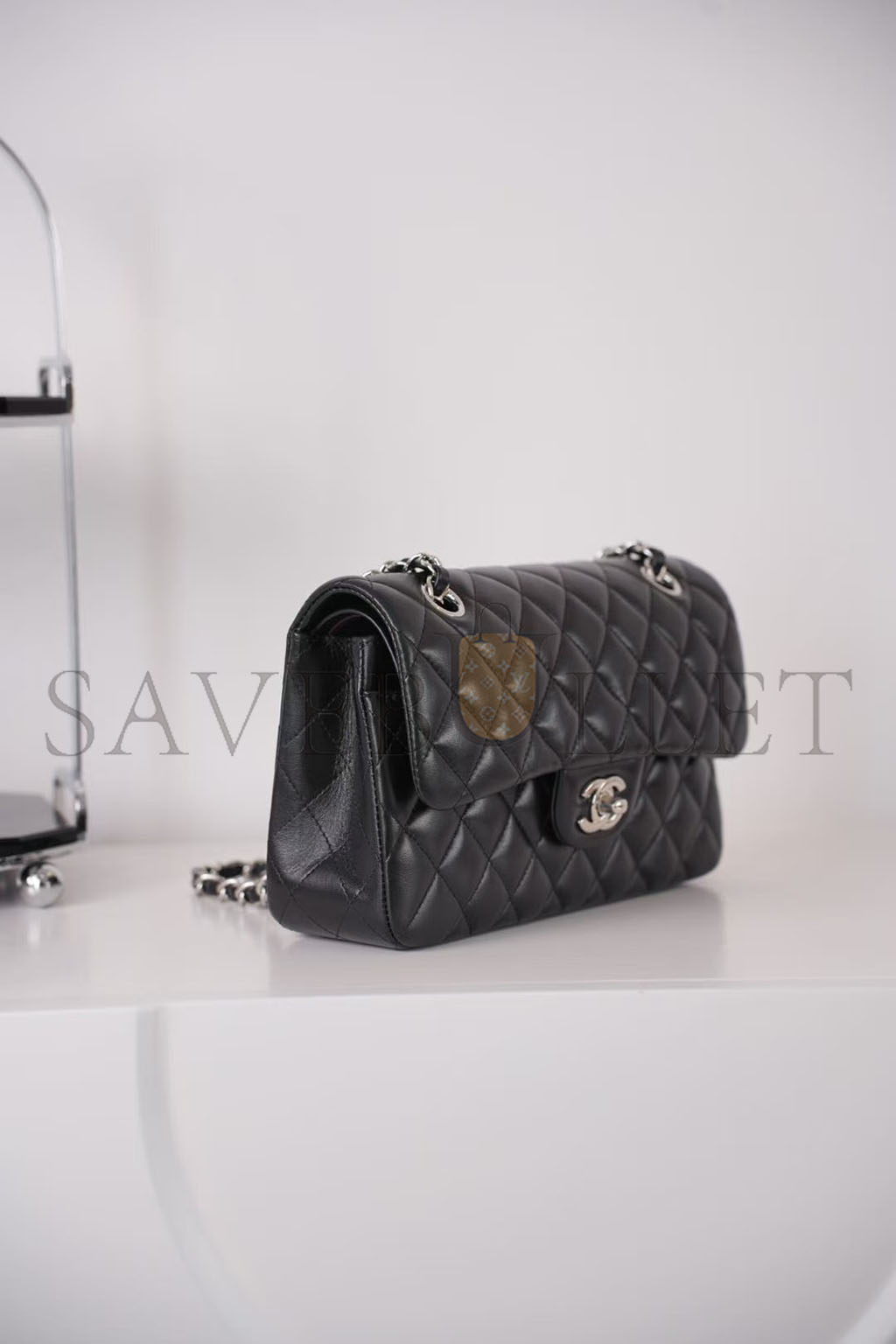 CHANEL MASTER SMALL CLASSIC DOUBLE FLAP BLACK LAMBSKIN SILVER HARDWARE A01113 (23*14.5*6cm)