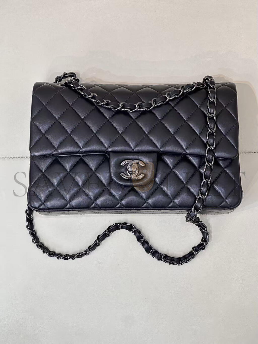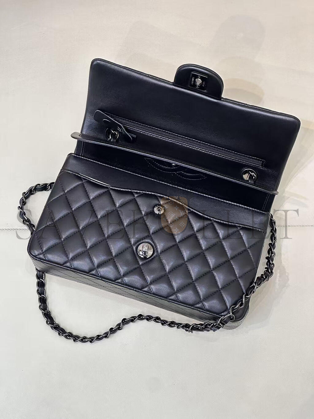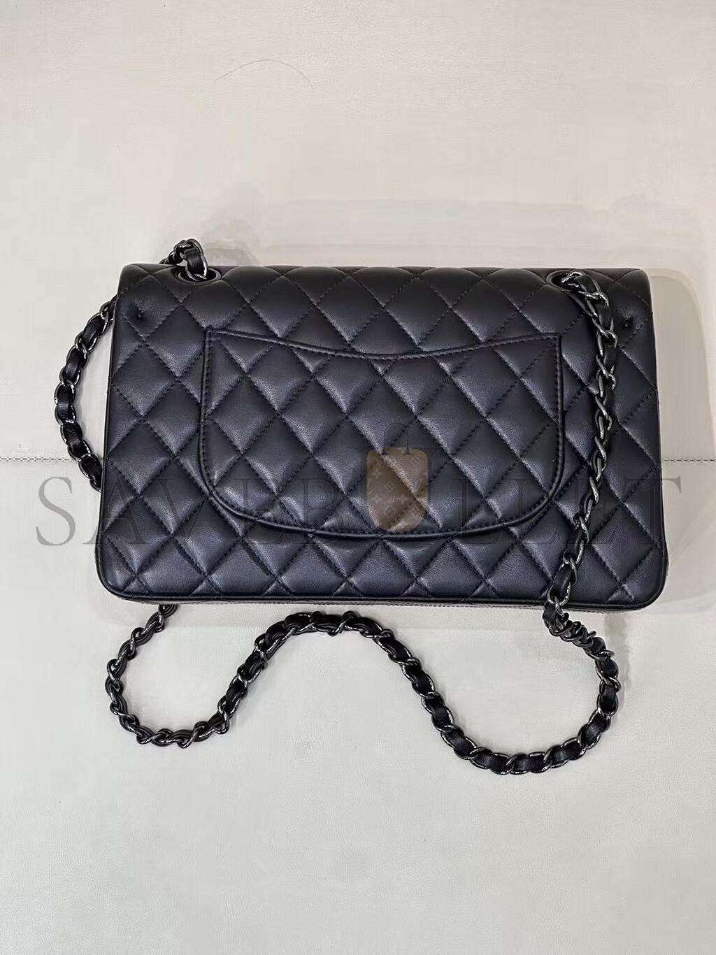 CHANEL MASTER MEDIUM CLASSIC DOUBLE FLAP BAG SO BLACK LAMBSKIN BLACK HARDWARE 1109944 (25*15*7cm)
