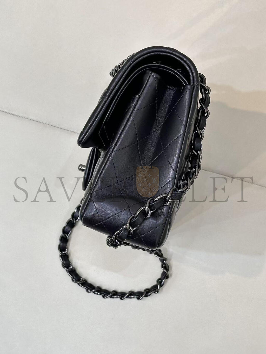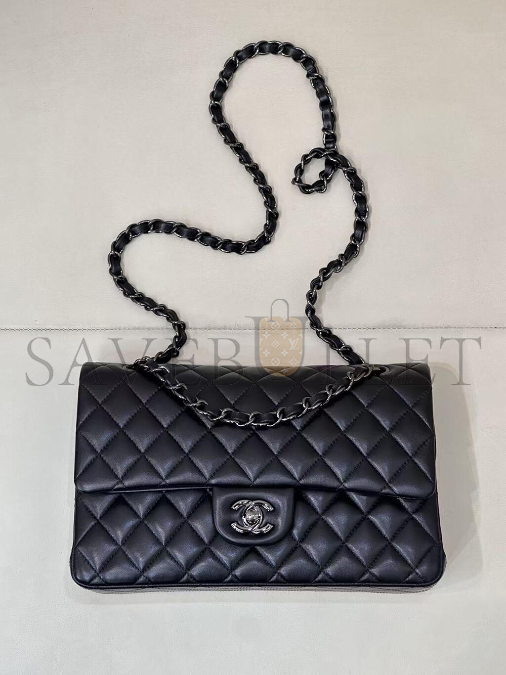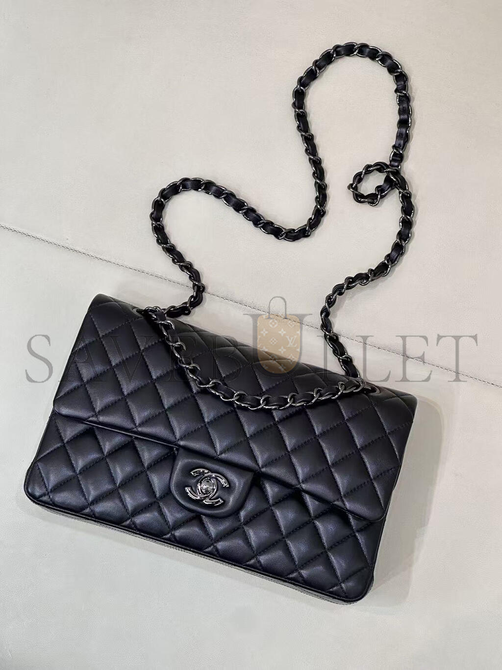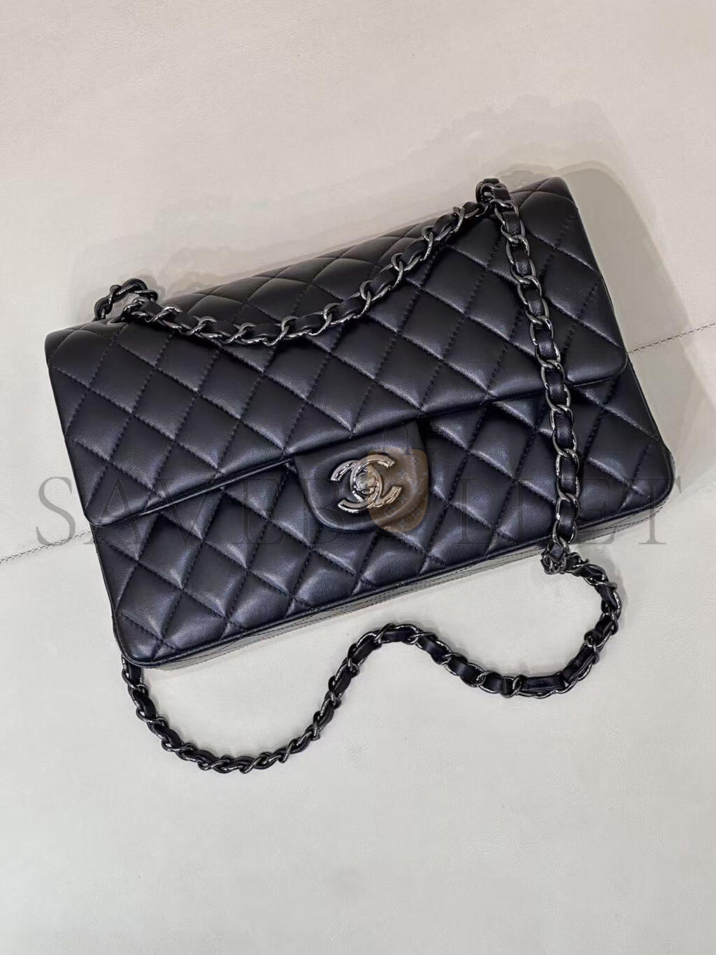 CHANEL MASTER MEDIUM CLASSIC DOUBLE FLAP BAG SO BLACK LAMBSKIN BLACK HARDWARE 1109944 (25*15*7cm)