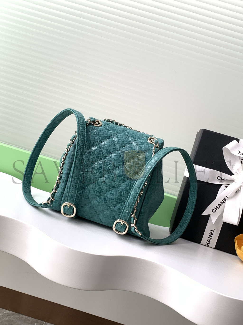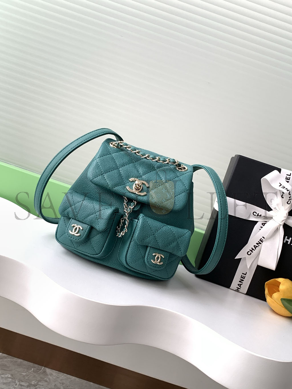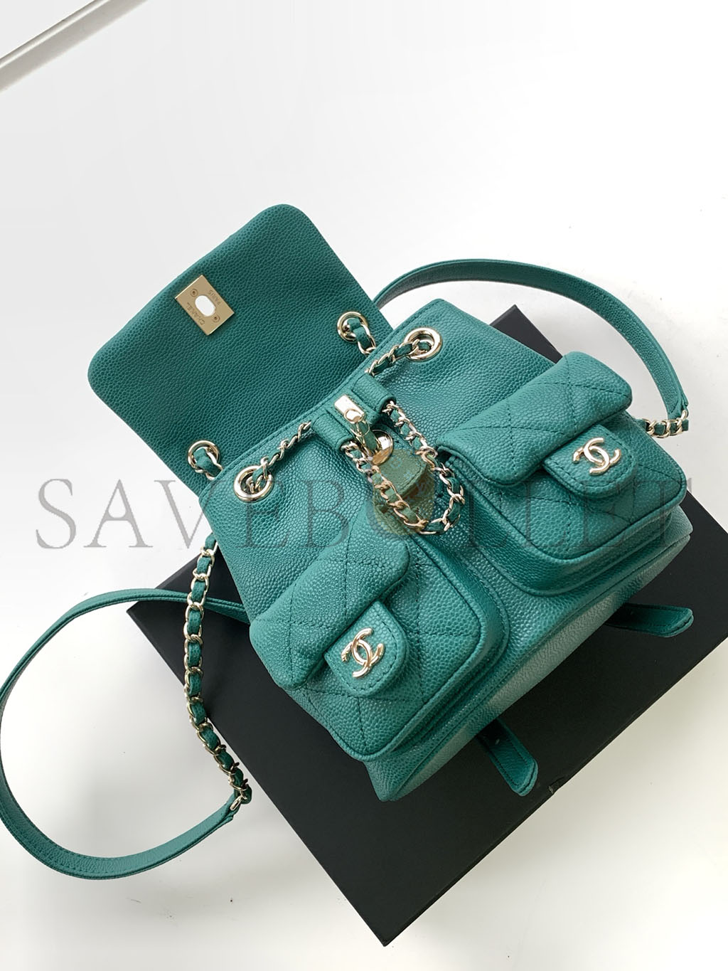CHANEL MASTER SMALL DUMA BACKPACK DARK GREEN CAVIAR AS3787 (17.5*16.5*10cm)