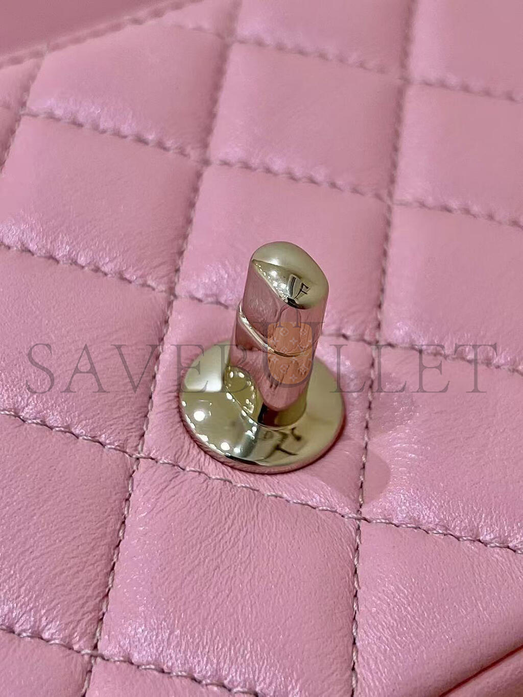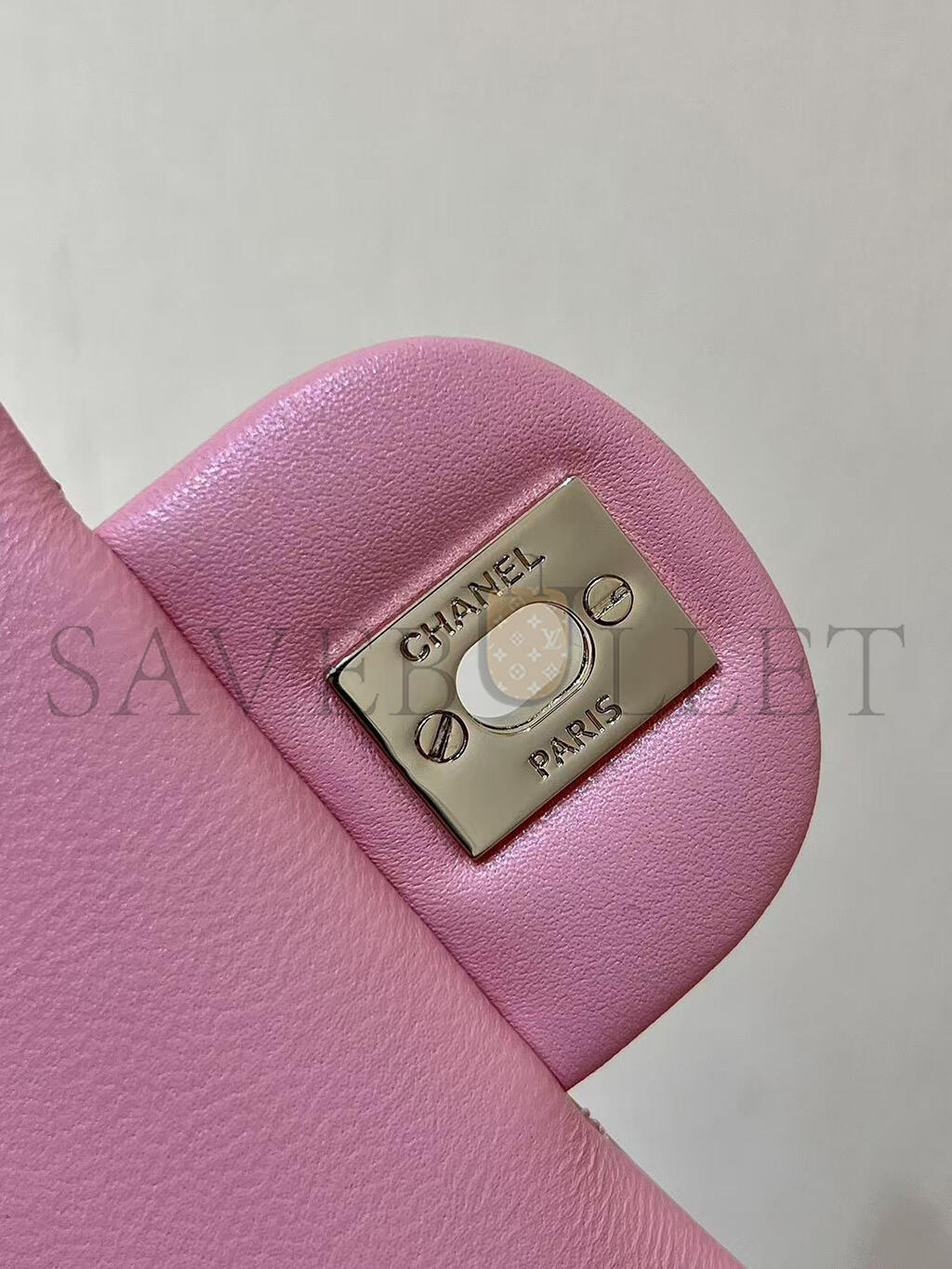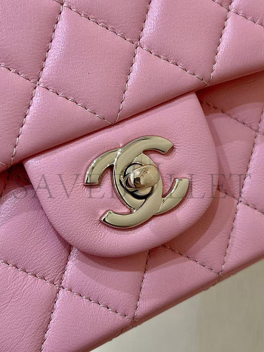 CHANEL QUILTED TOP HANDLE MINI RECTANGULAR PINK LAMBSKIN AS2431 (20*12*6cm)