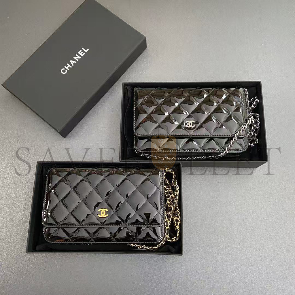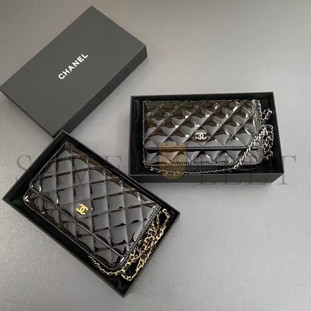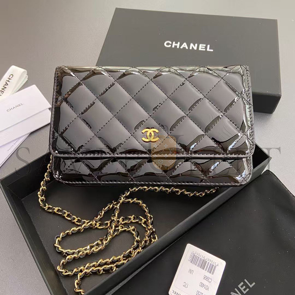 CHANEL BLACK QUILTED PATENT LEATHER CLASSIC WOC CLUTCH BAG AP0250 (19*13*3cm)