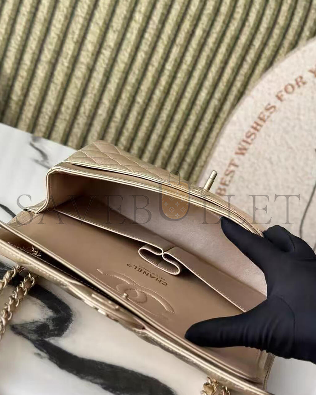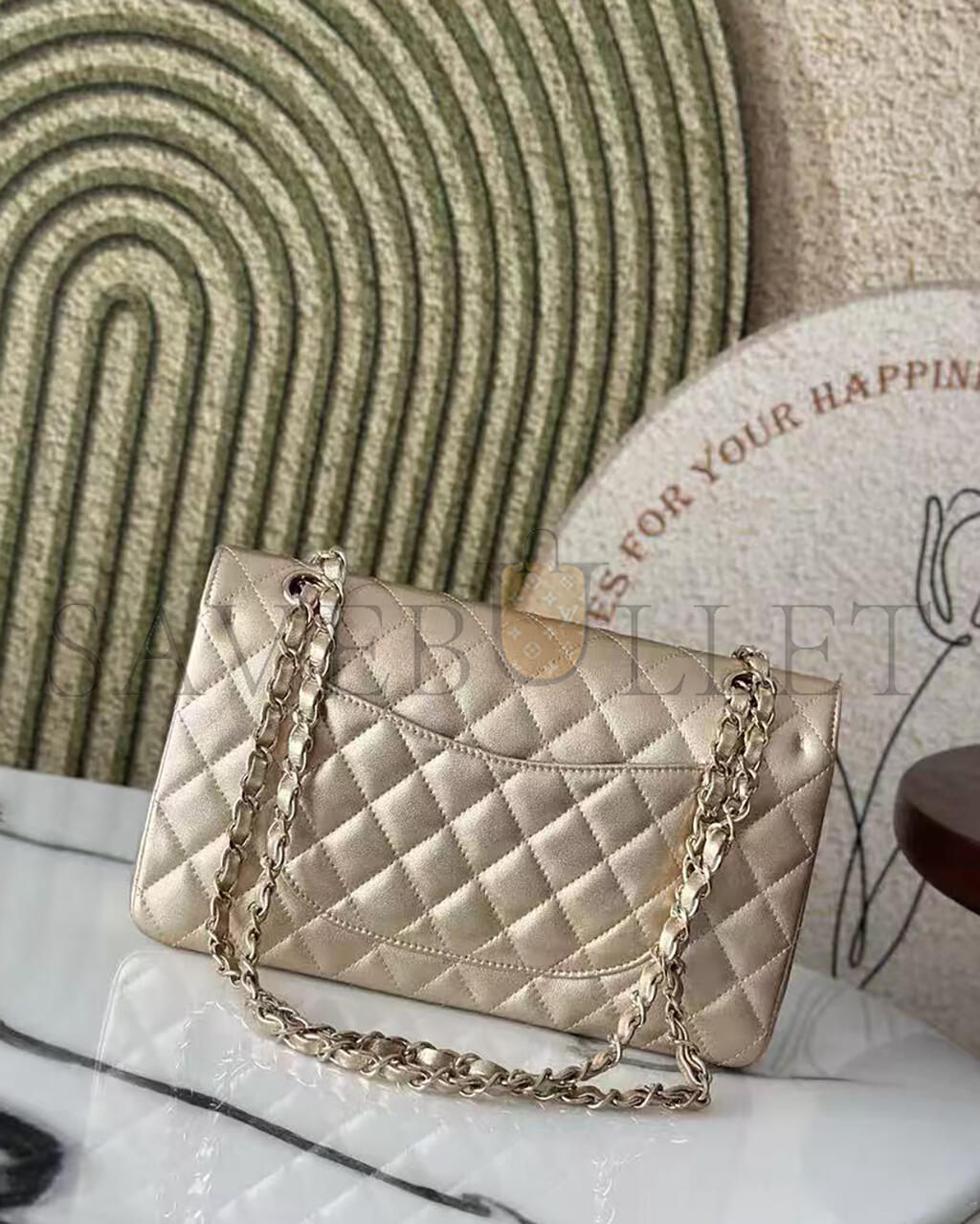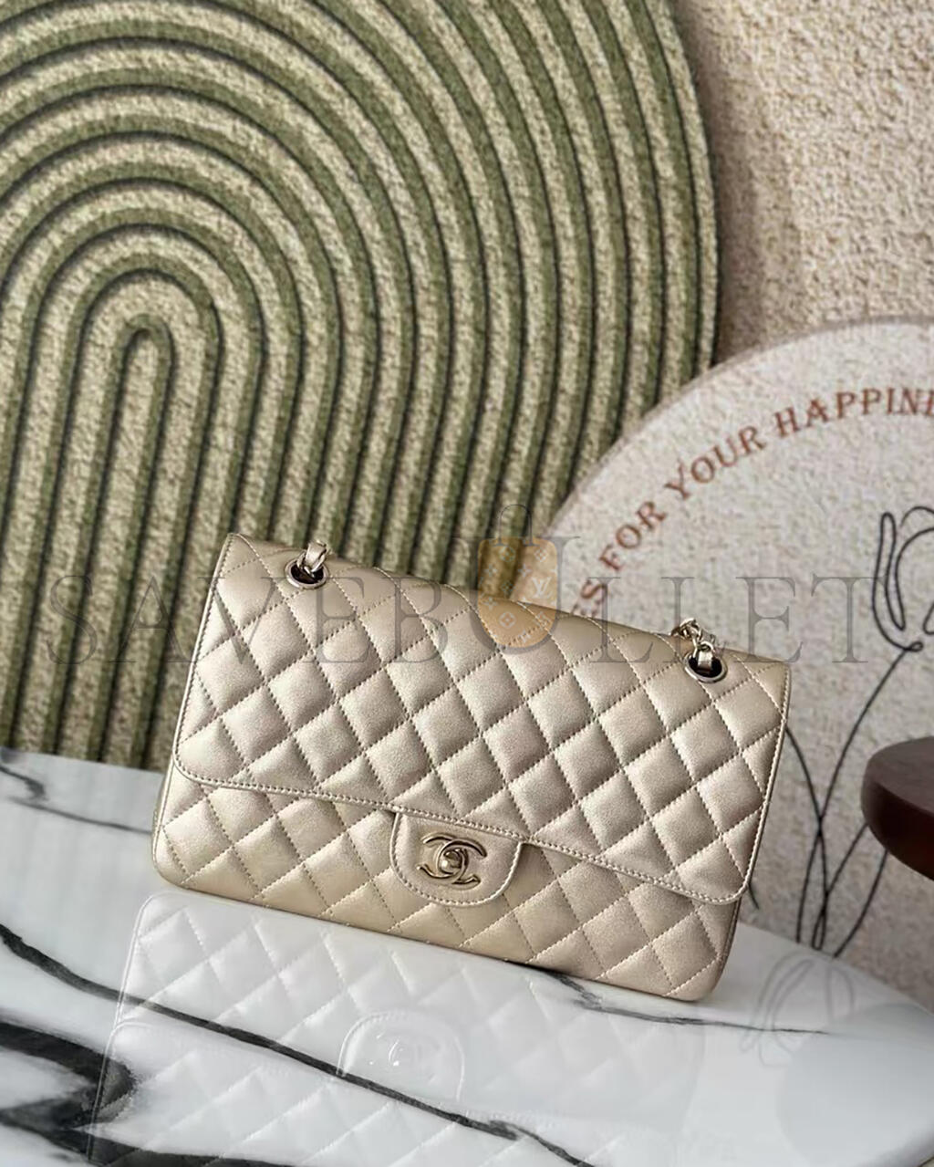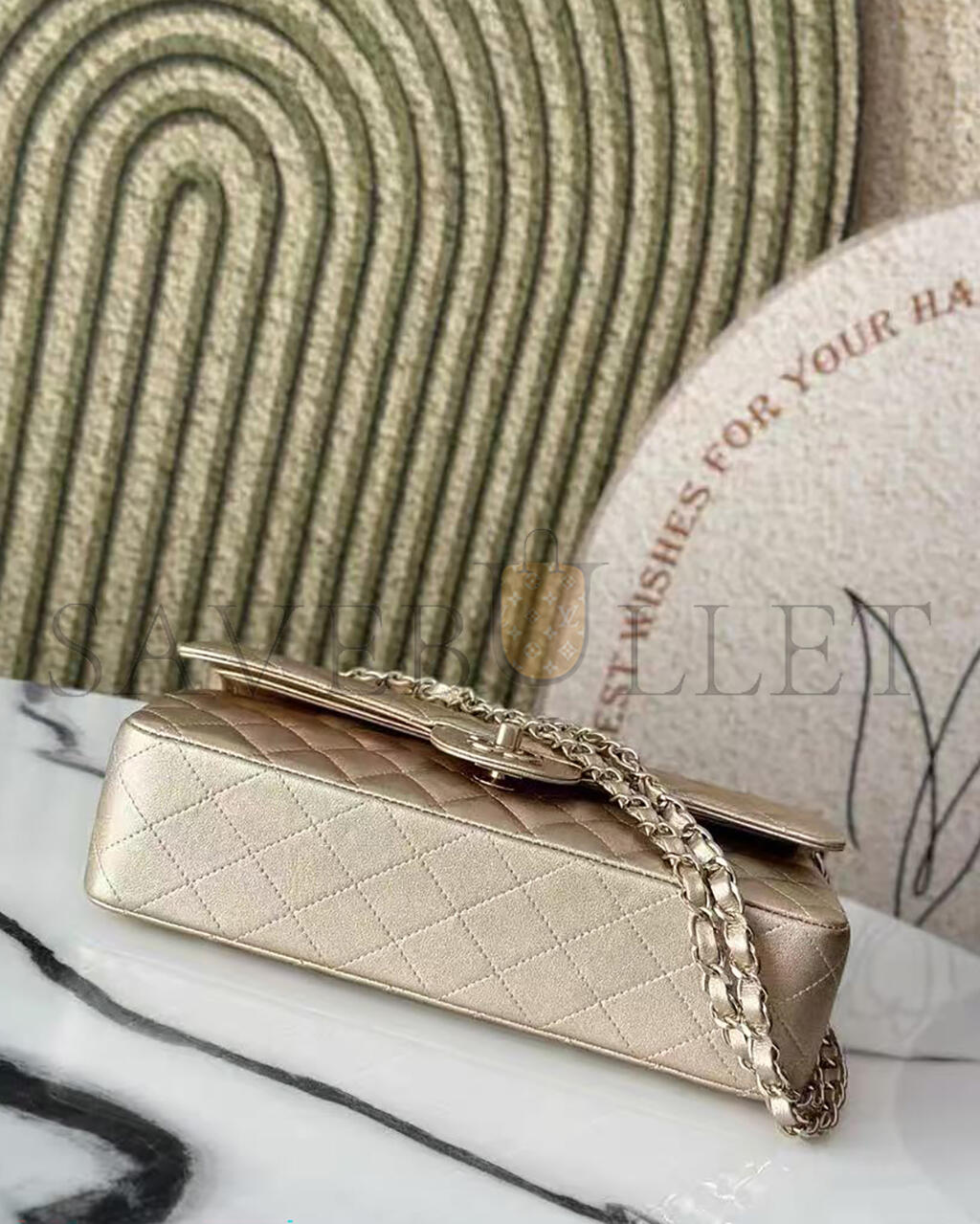 CHANEL GOLD METALLIC LAMBSKIN MEDIUM CLASSIC FLAP BAG A01112 (25.5*15*6cm)