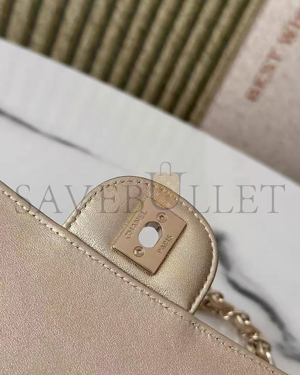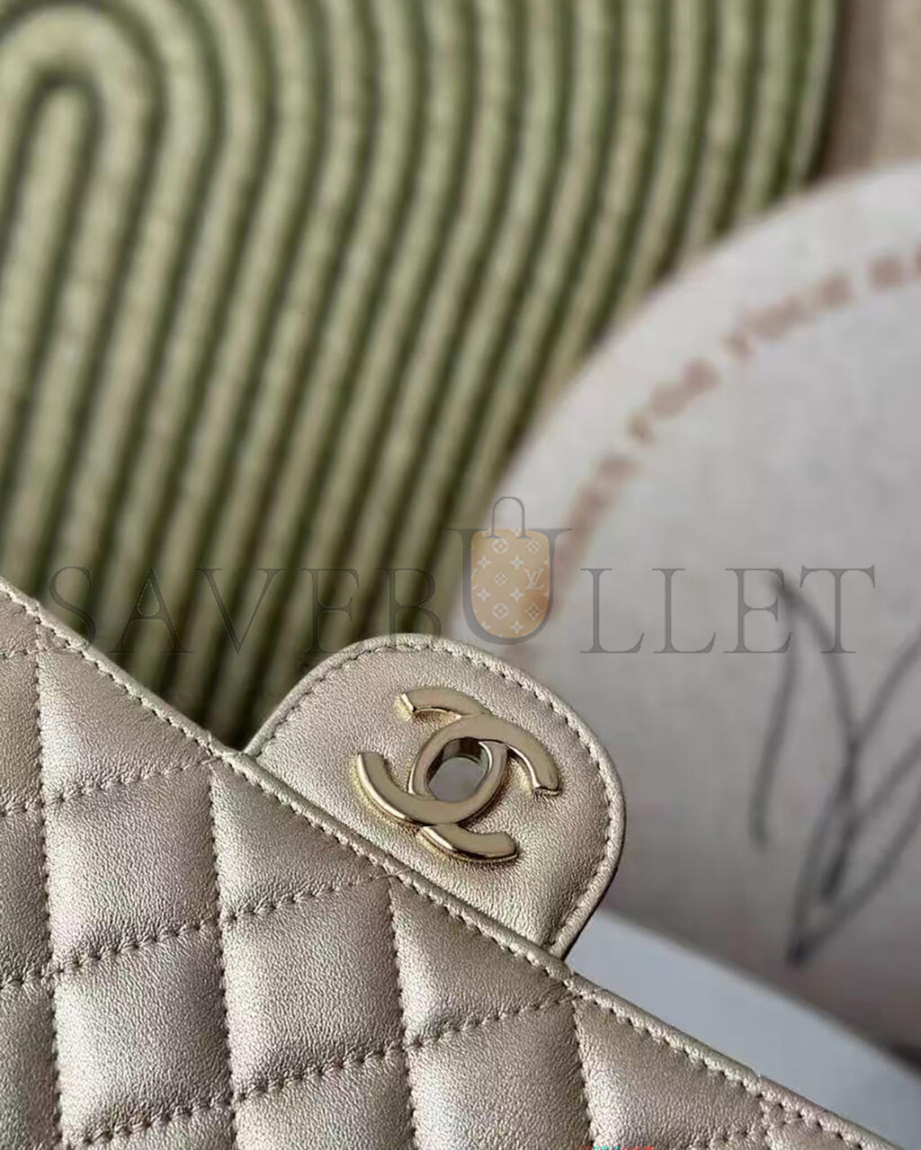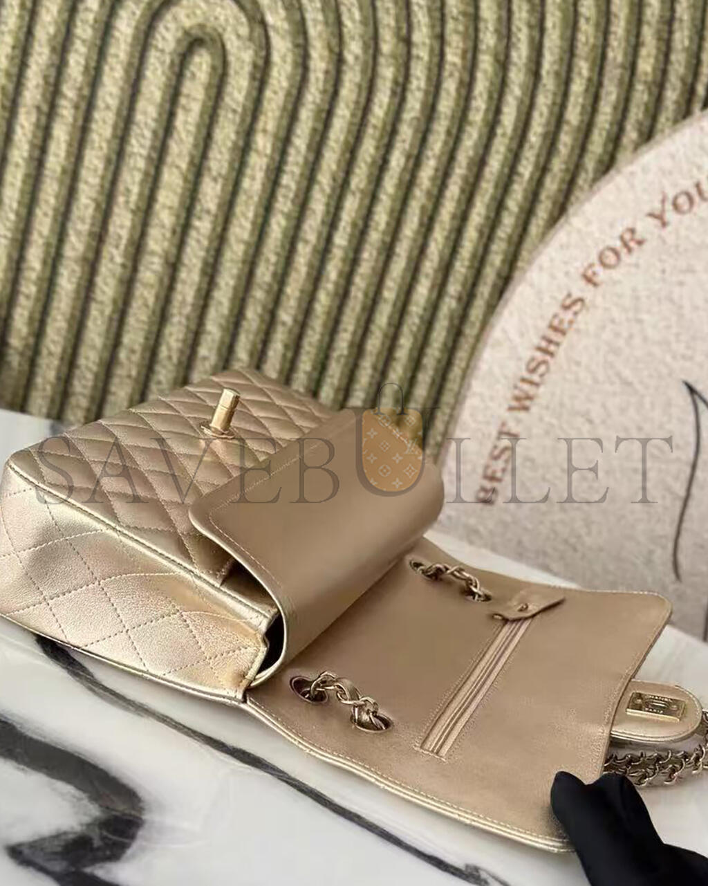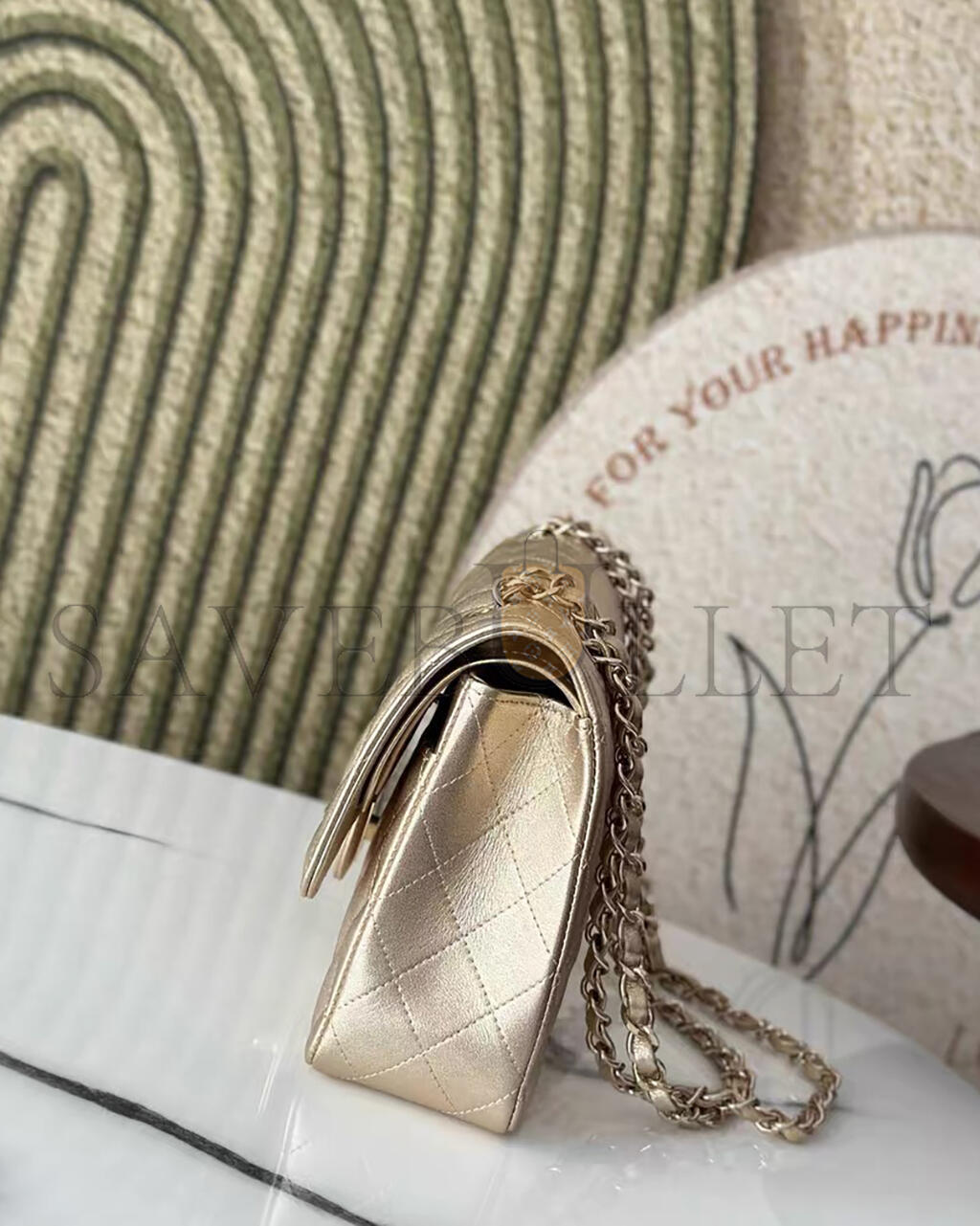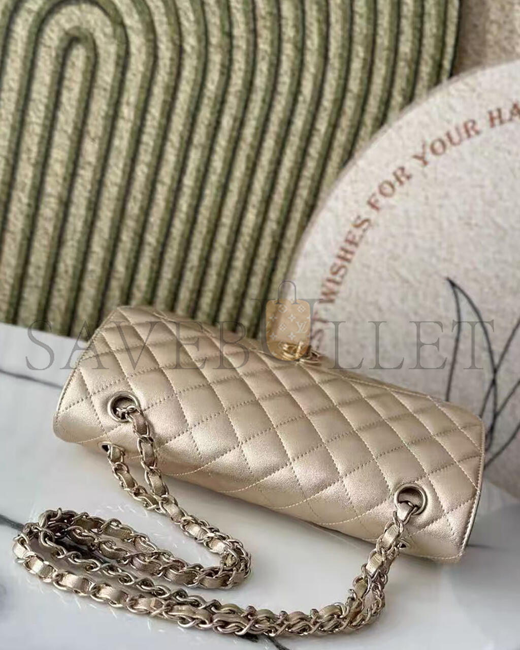 CHANEL GOLD METALLIC LAMBSKIN MEDIUM CLASSIC FLAP BAG A01112 (25.5*15*6cm)