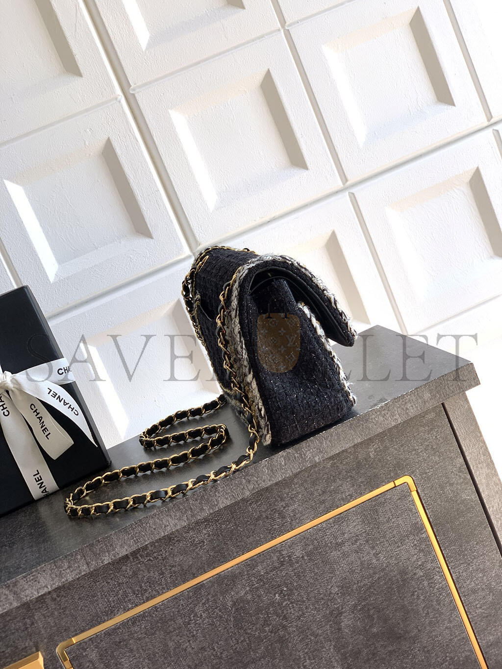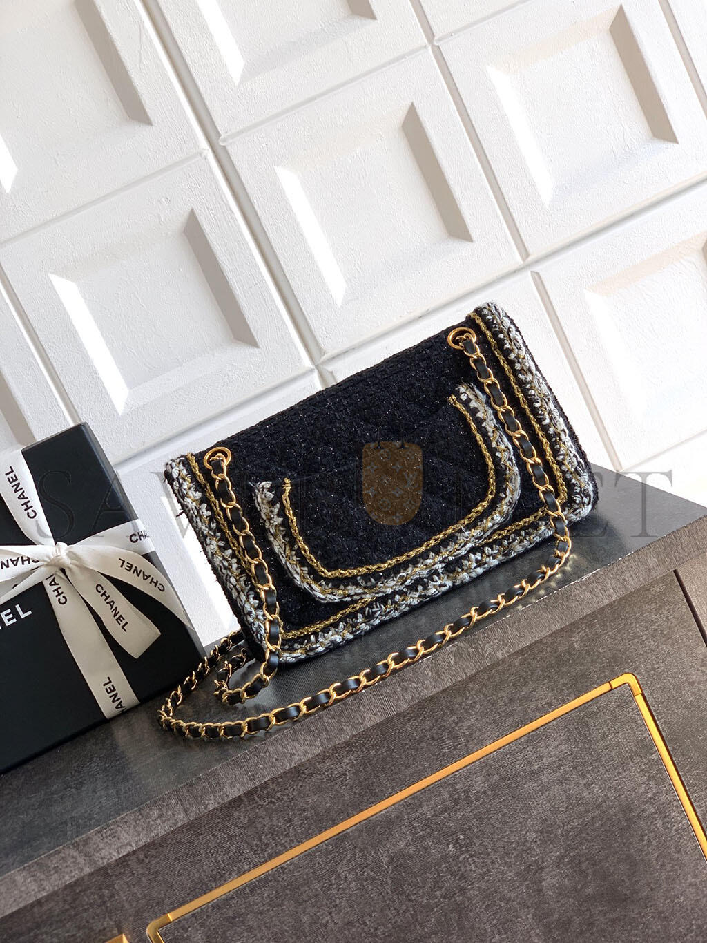 CHANEL FLAP BAG GRAINED SHINY CALFSKIN & GOLD-TONE METAL AS5182 (33*16*5cm)
