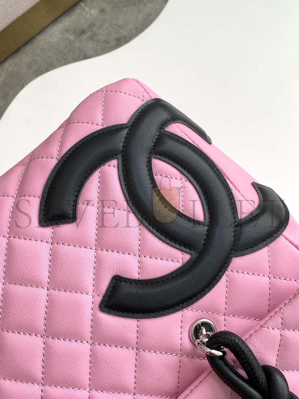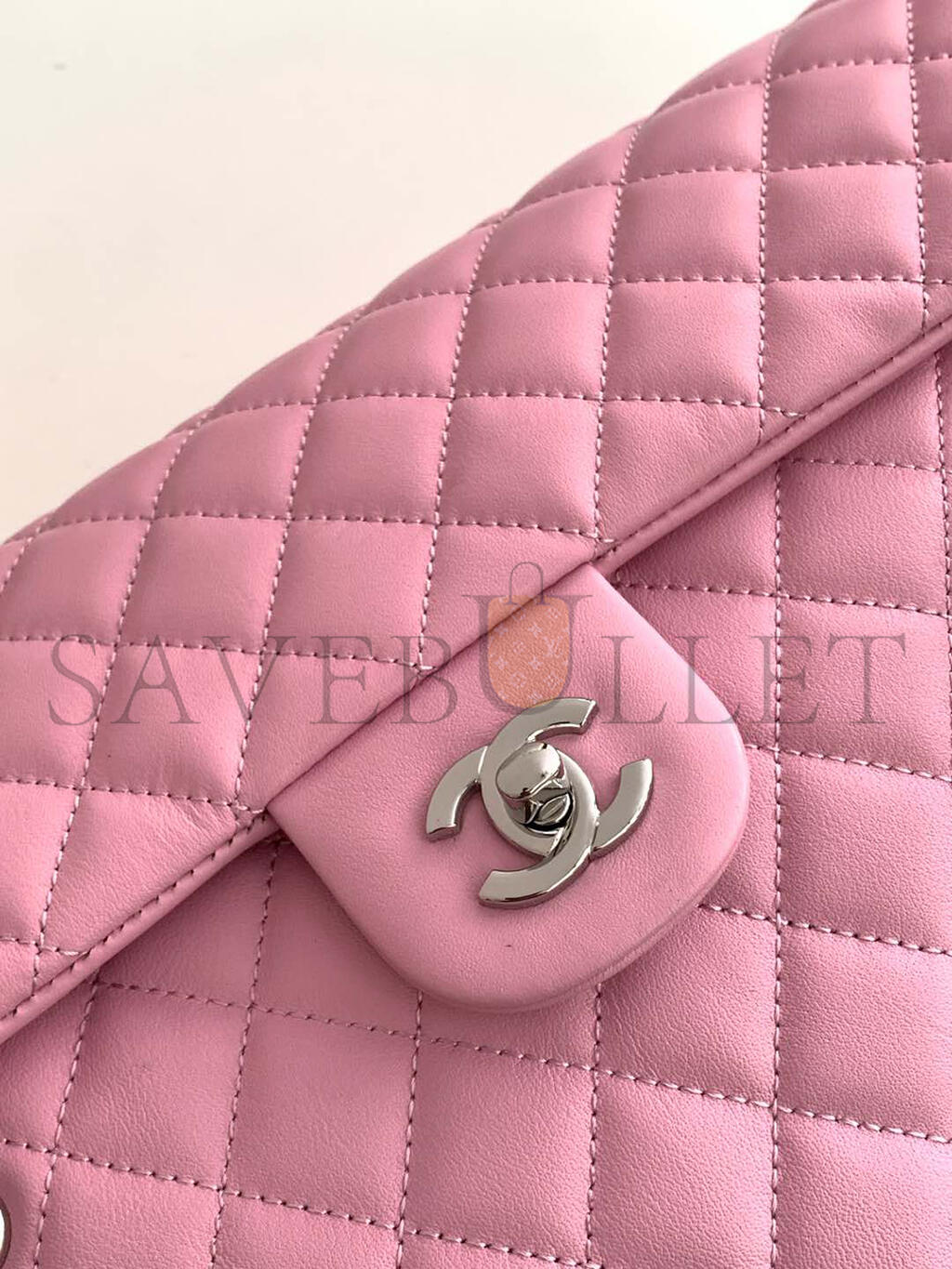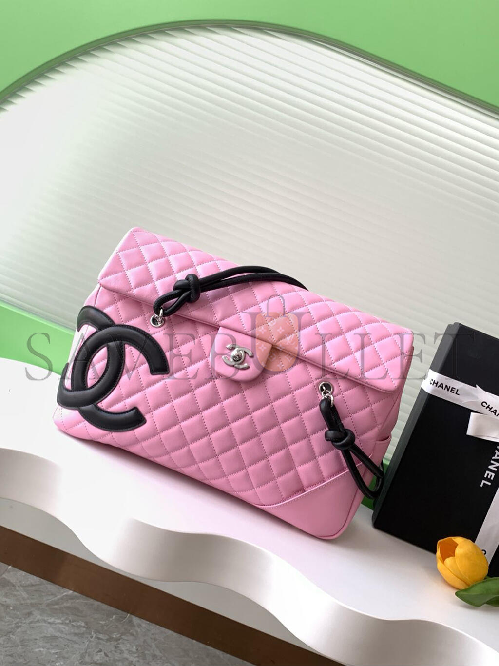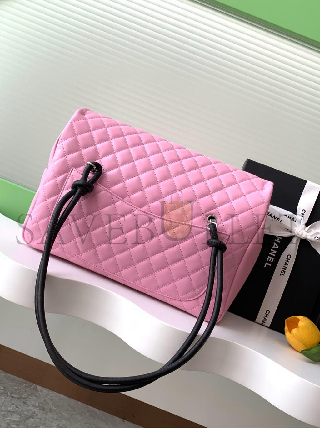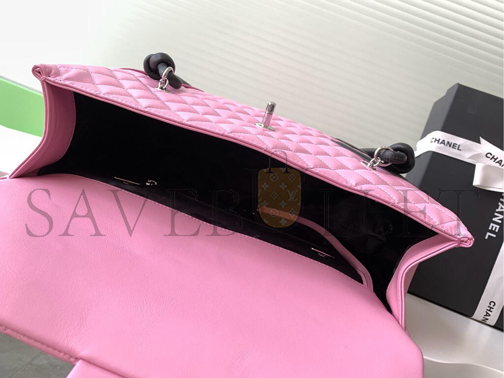 CHANEL CALFSKIN QUILTED LARGE CAMBON FLAP PINK BLACK (33*24*11cm)