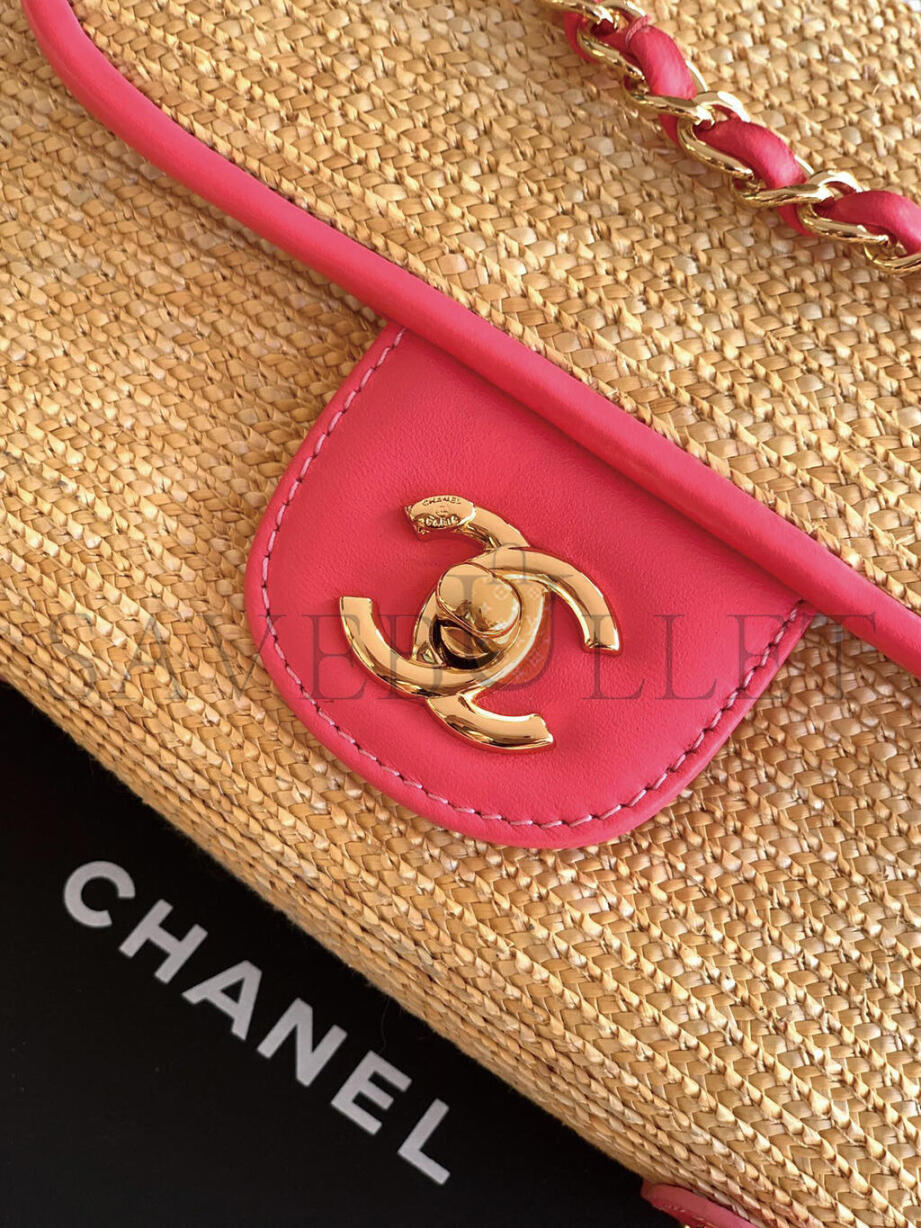 CHANEL FLAP BAG GRAINED SHINY CALFSKIN & GOLD-TONE METAL AS5182 (33*16*5cm)