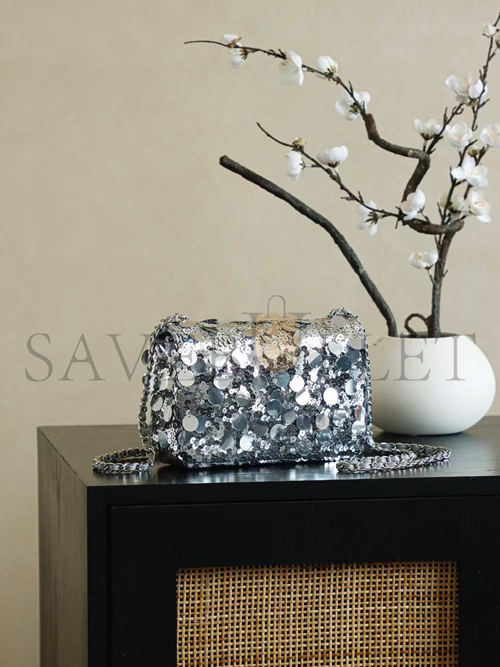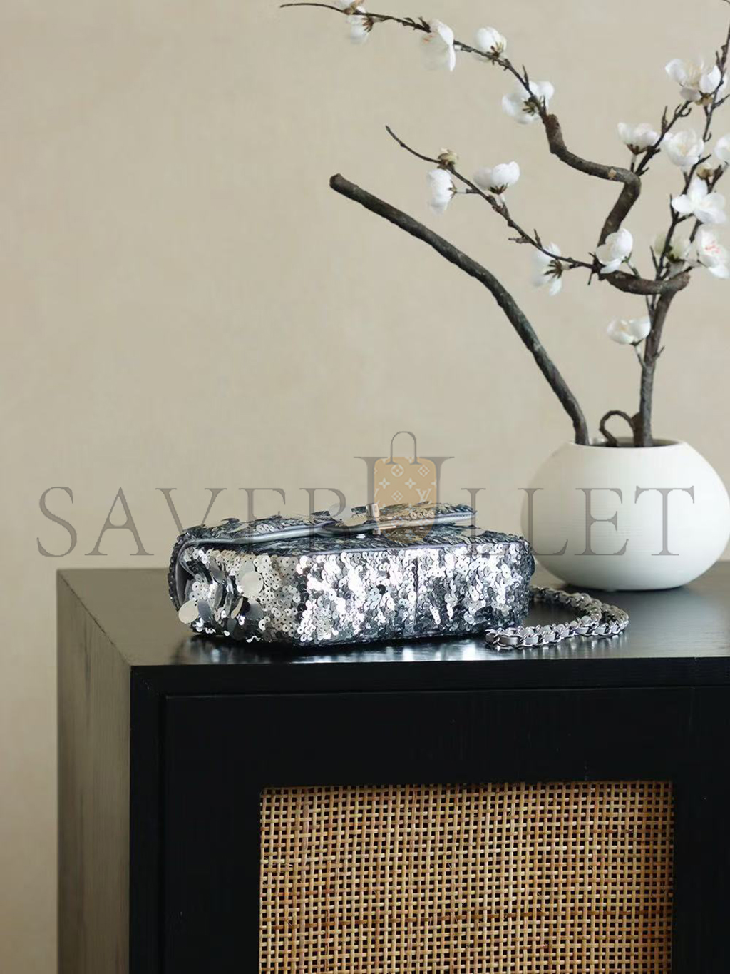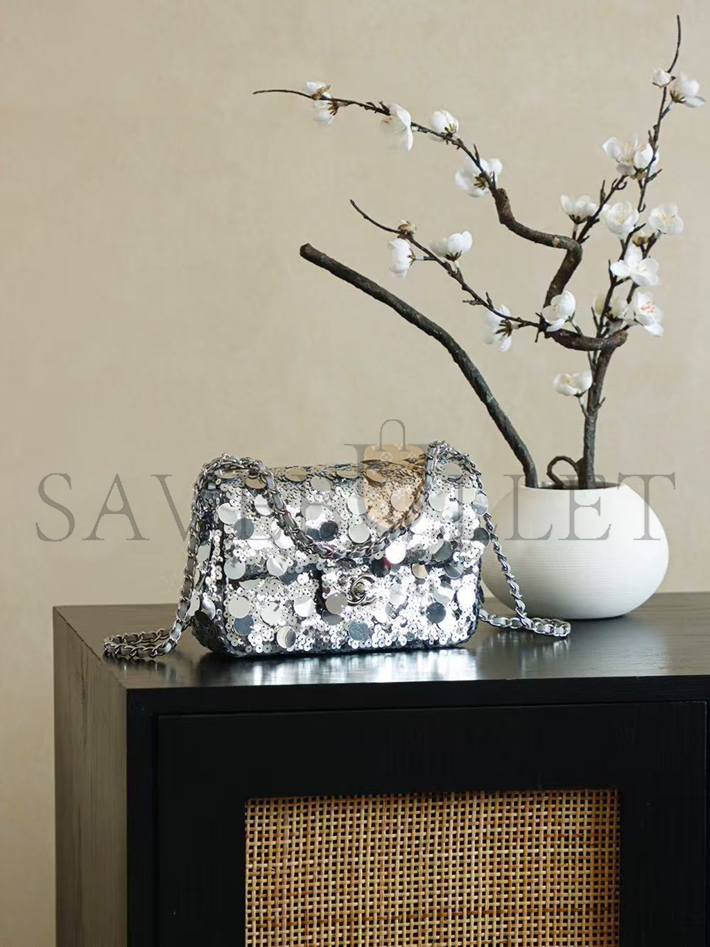 CHANEL SEQUIN MINI RECTANGULAR FLAP SILVER (20*13*6cm)
