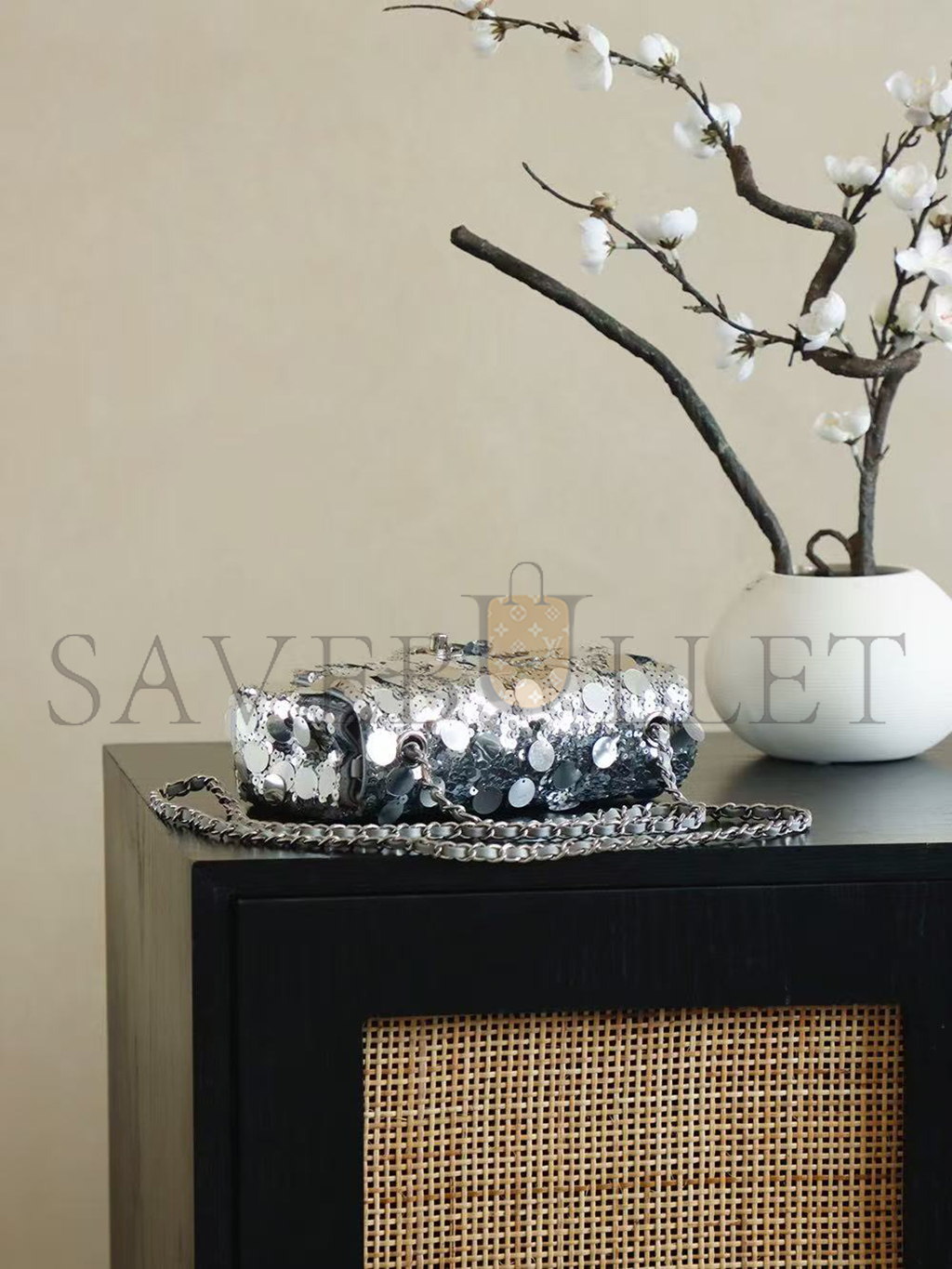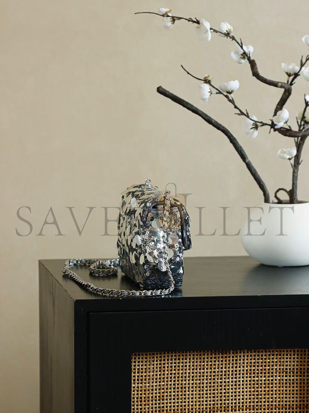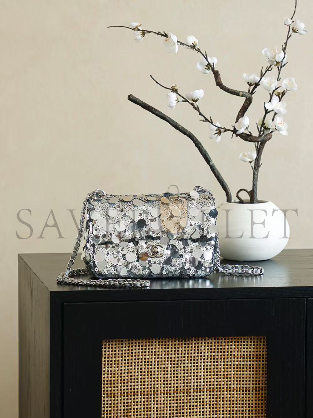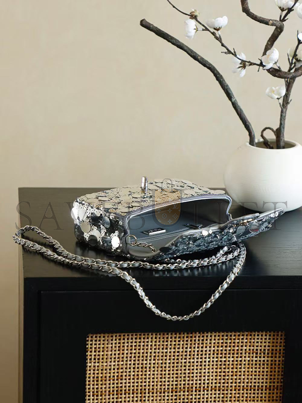 CHANEL SEQUIN MINI RECTANGULAR FLAP SILVER (20*13*6cm)