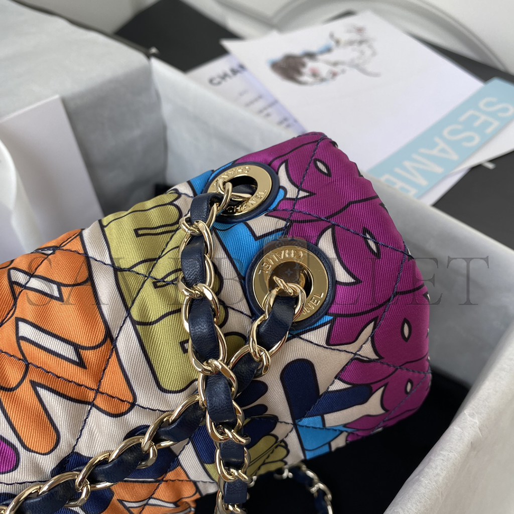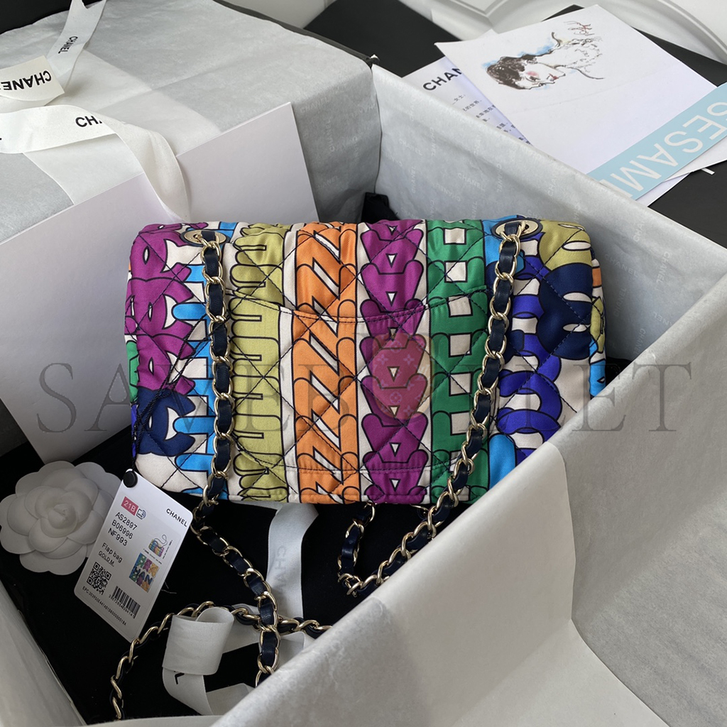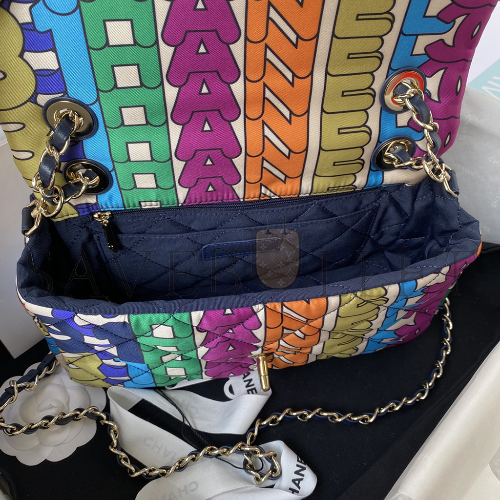 CHANEL RAINBOW QUILTED NYLON MEDIUM LOGO FLAP GOLD HARDWARE AS2897 (24.5*15*5cm)