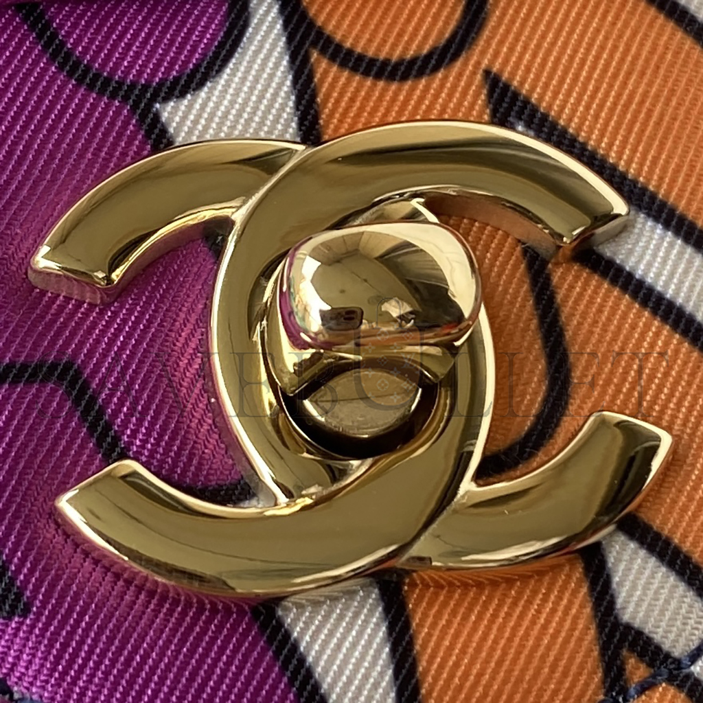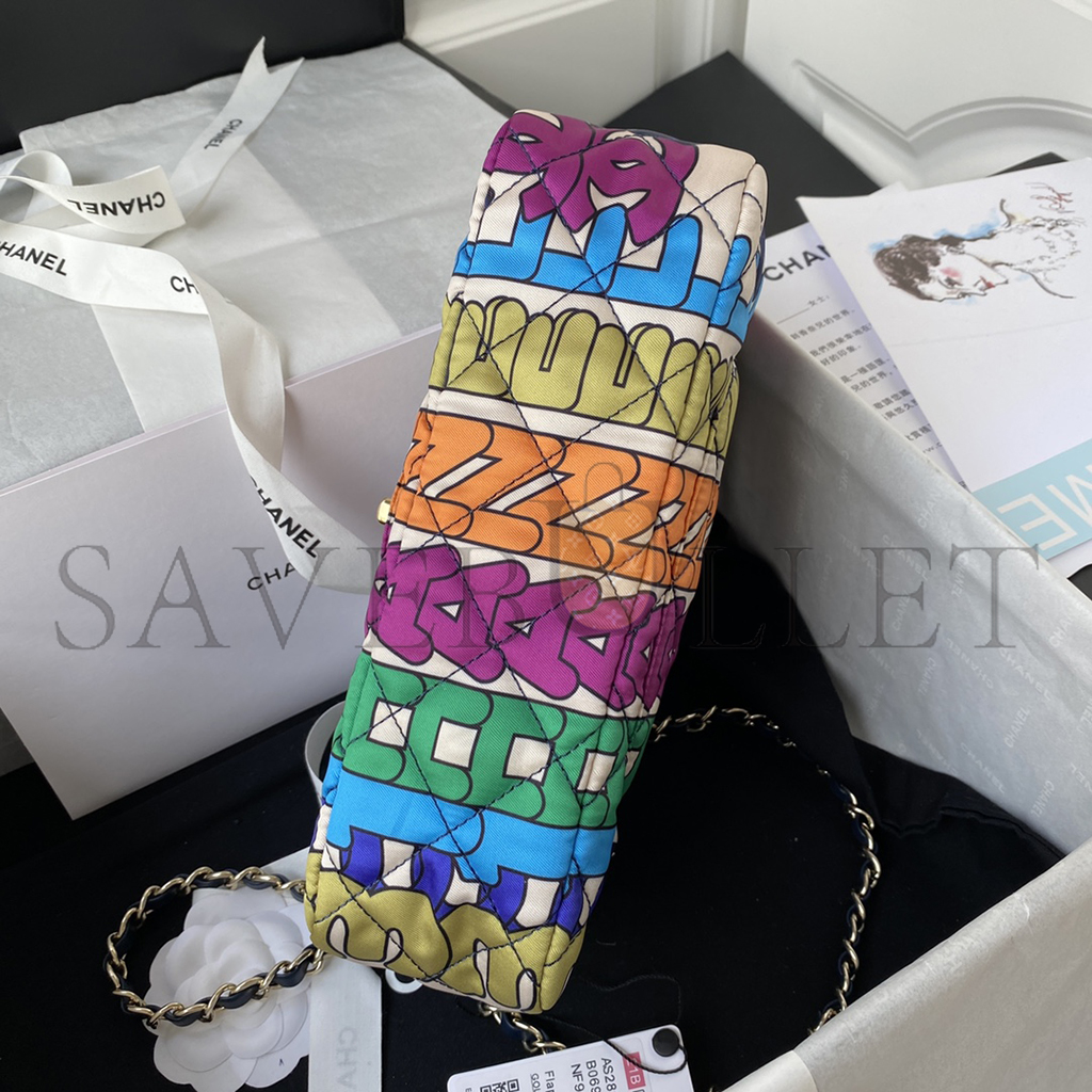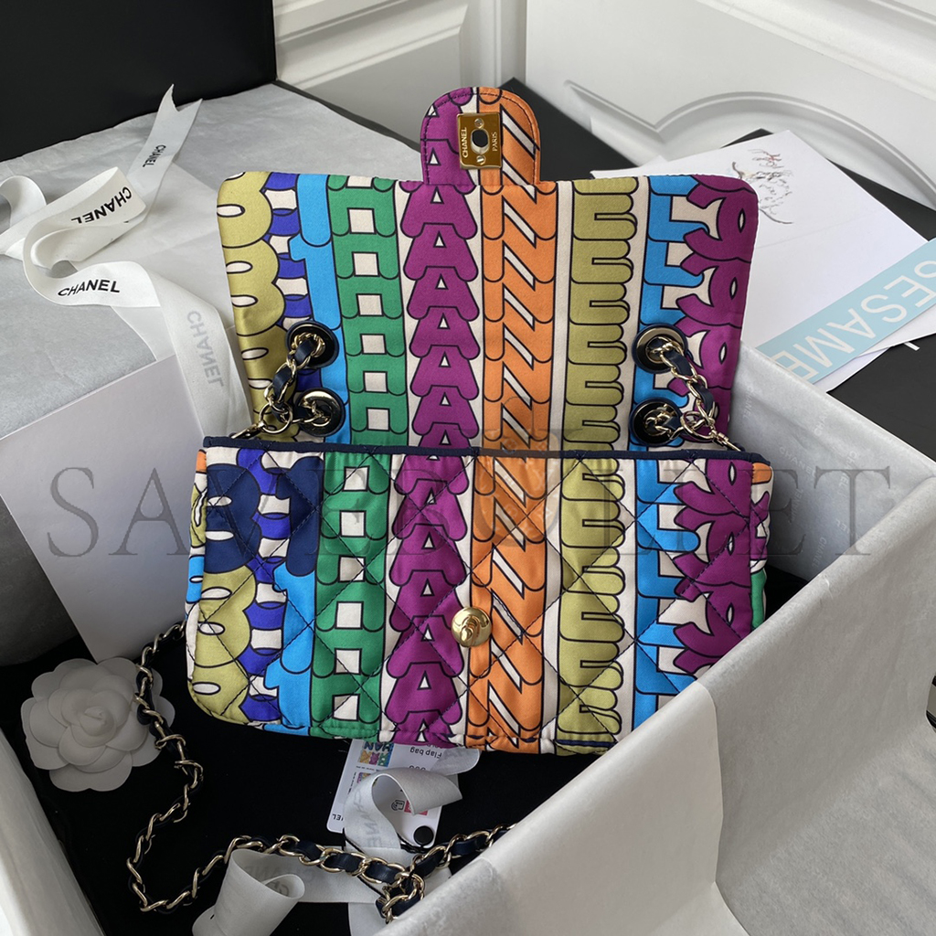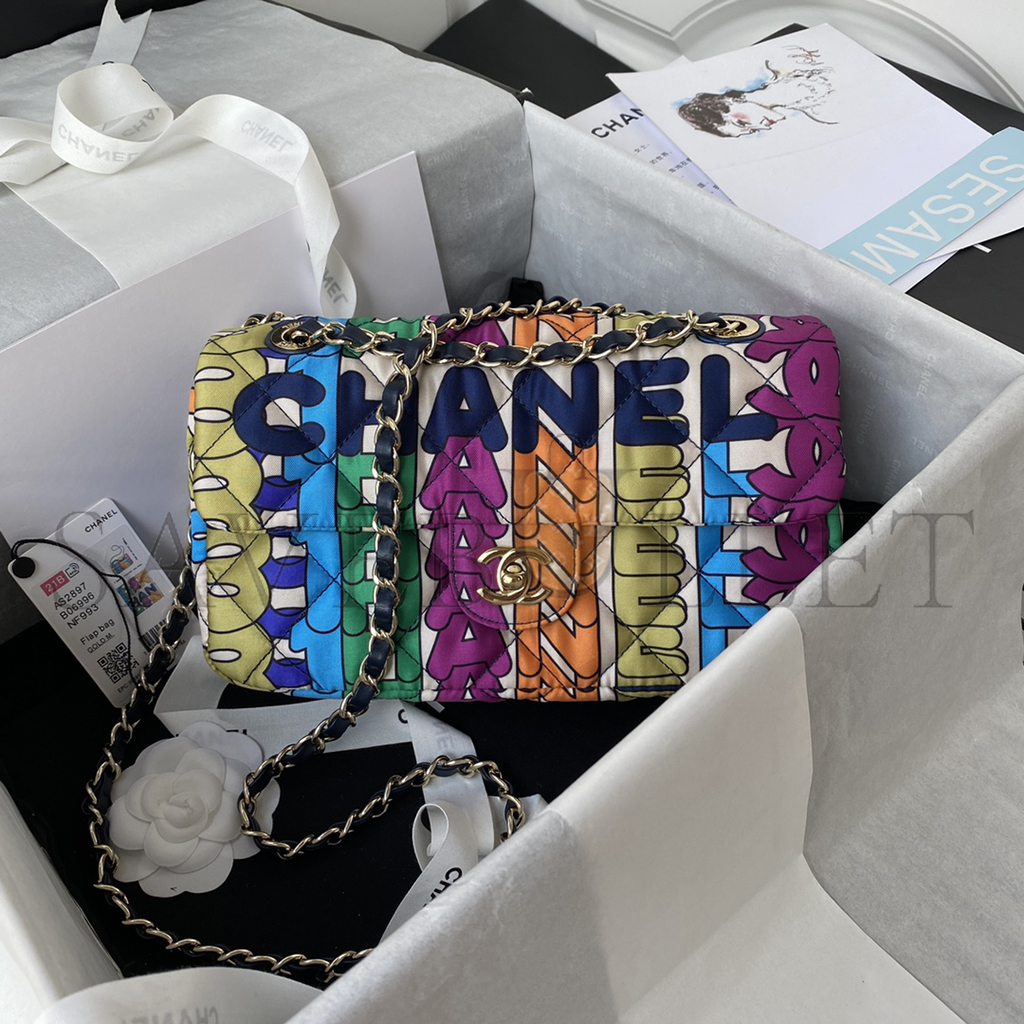 CHANEL RAINBOW QUILTED NYLON MEDIUM LOGO FLAP GOLD HARDWARE AS2897 (24.5*15*5cm)