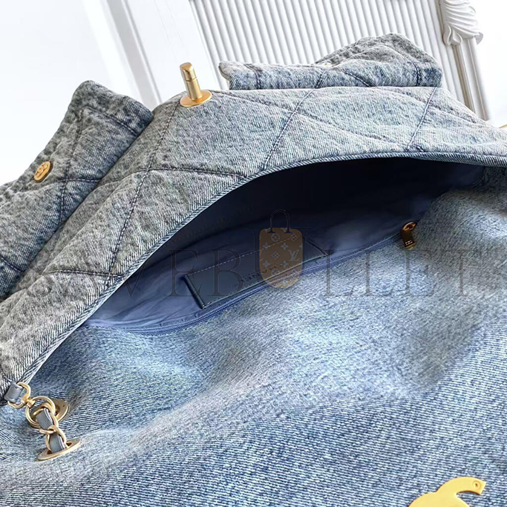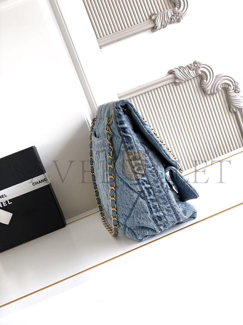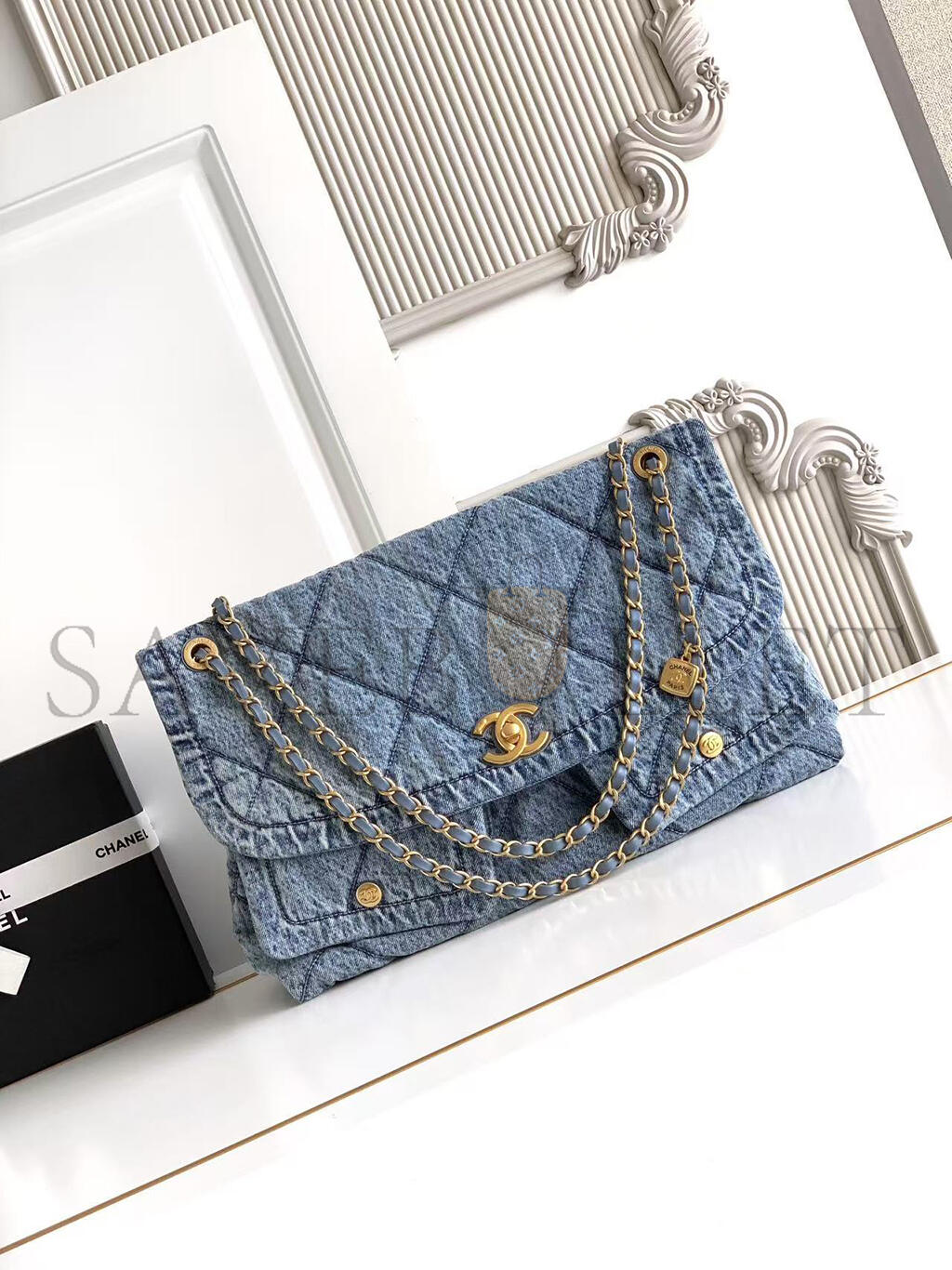 CHANEL BLUE WASHED DENIM MAXI FLAP BAG AS5727 (45*26.5*9.5cm)