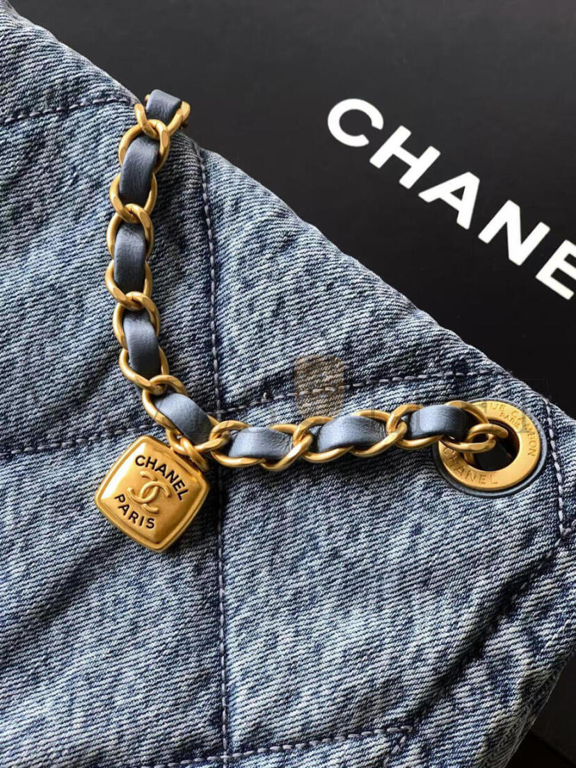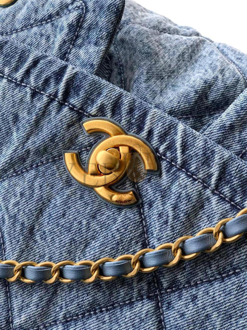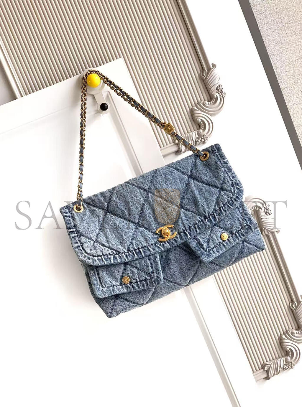 CHANEL BLUE WASHED DENIM MAXI FLAP BAG AS5727 (45*26.5*9.5cm)