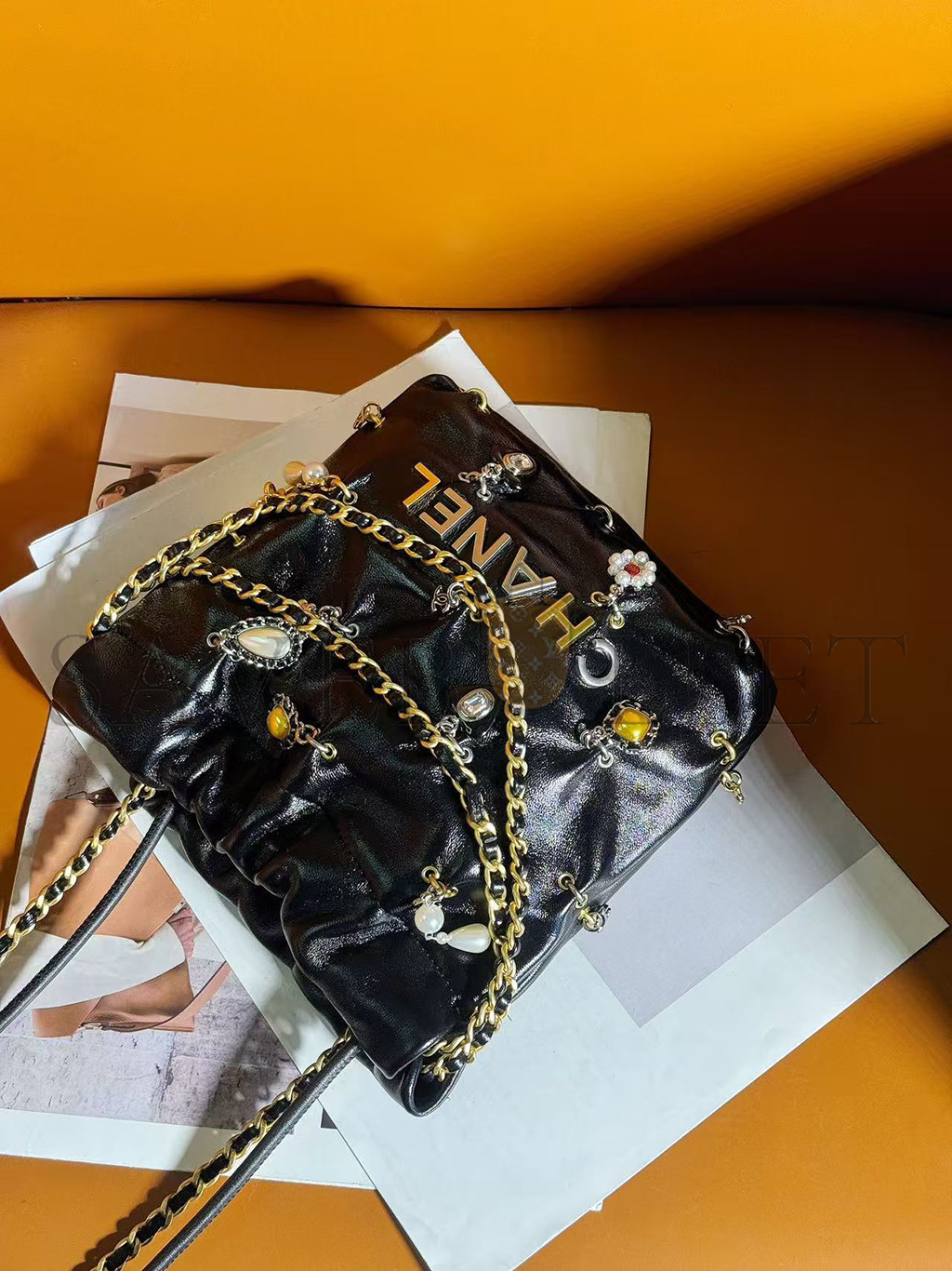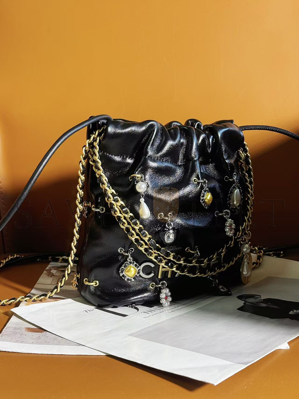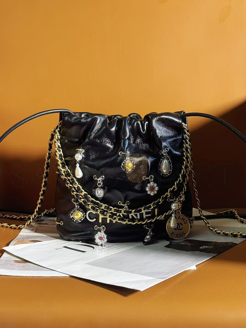 CHANEL 22 MINI CHARM SHOULDER HANDBAG CALFSKIN BLACK AS3980 (20*19*6cm)