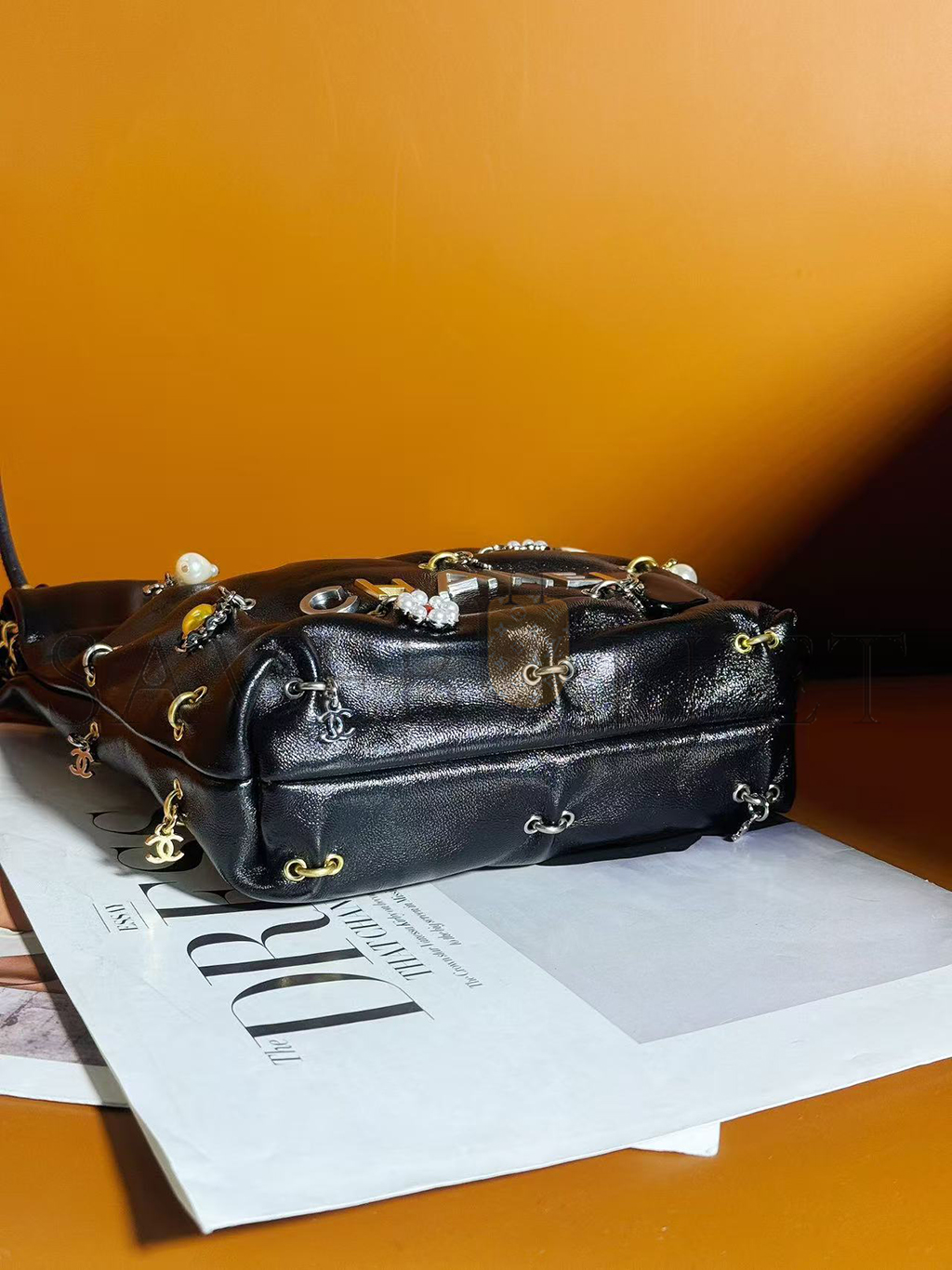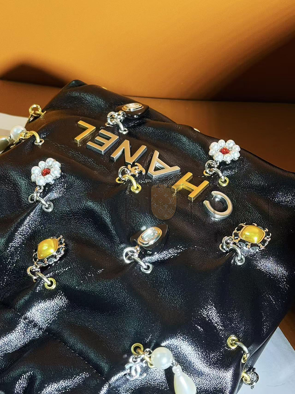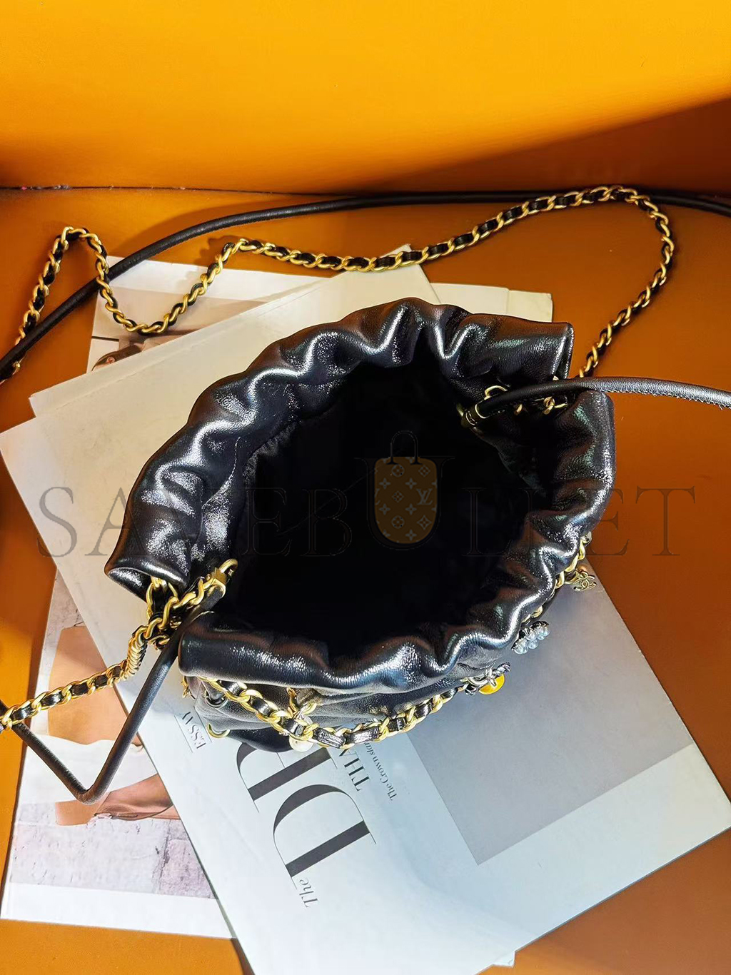 CHANEL 22 MINI CHARM SHOULDER HANDBAG CALFSKIN BLACK AS3980 (20*19*6cm)