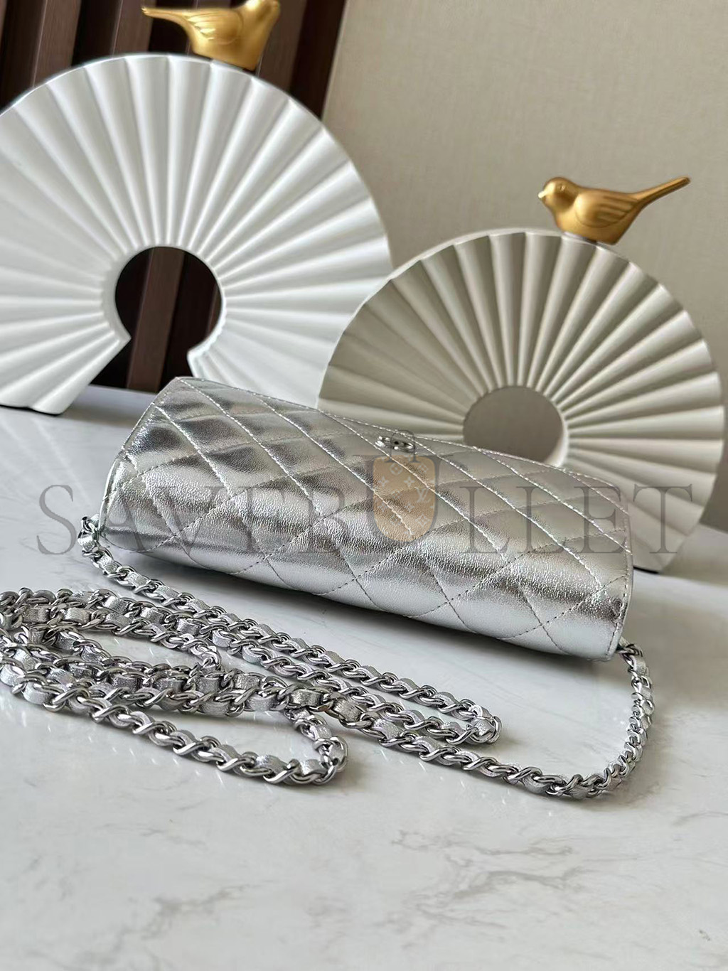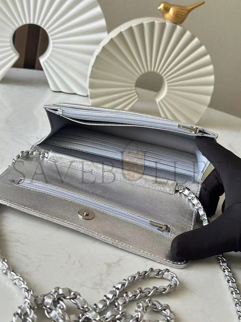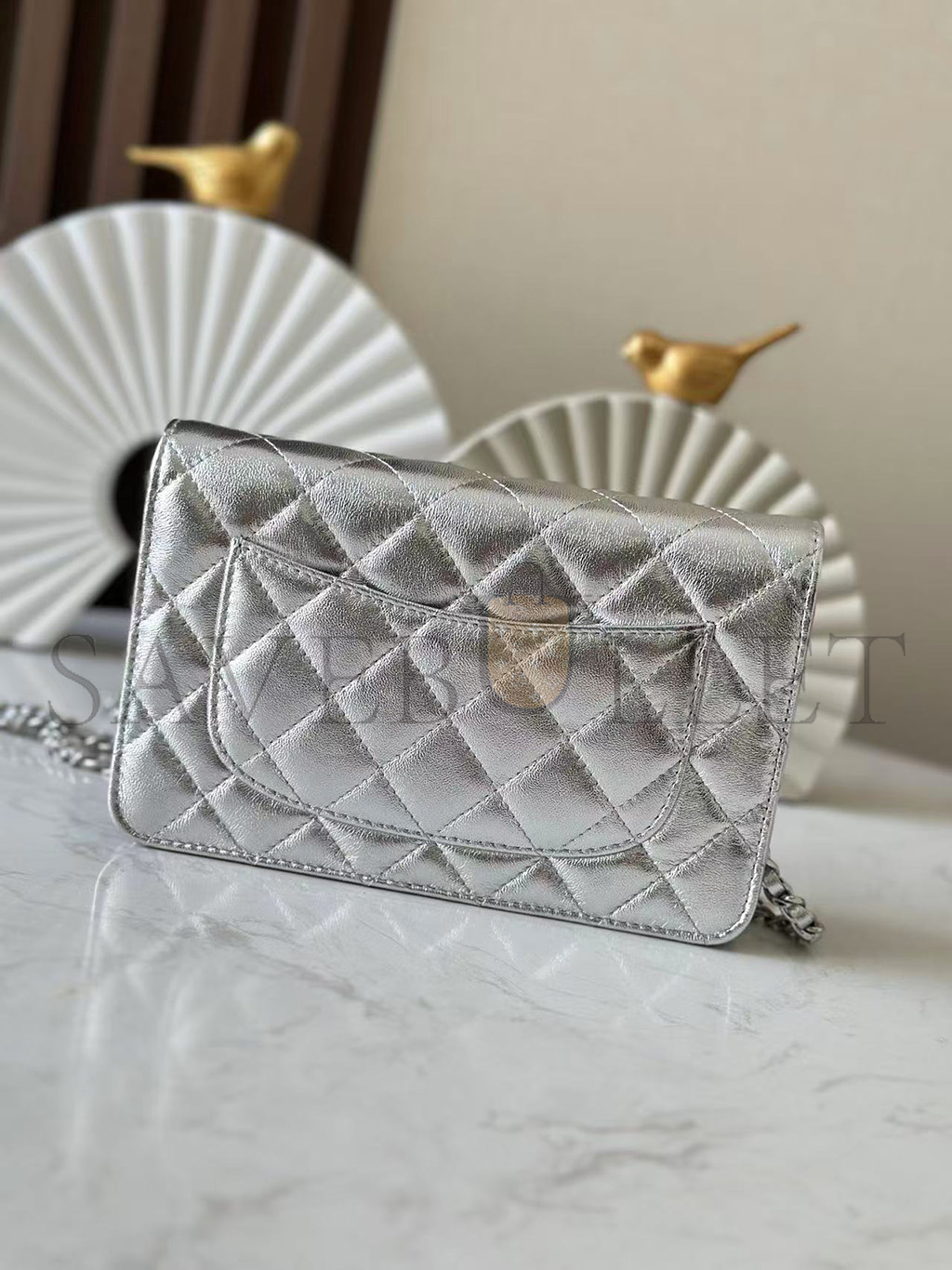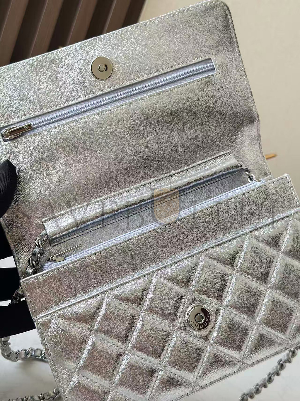 CHANEL METALLIC LAMBSKIN QUILTED WALLET ON CHAIN WOC SILVER AP0250 (19*13*3cm)