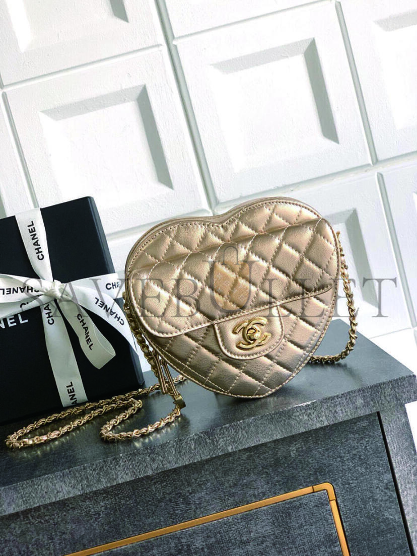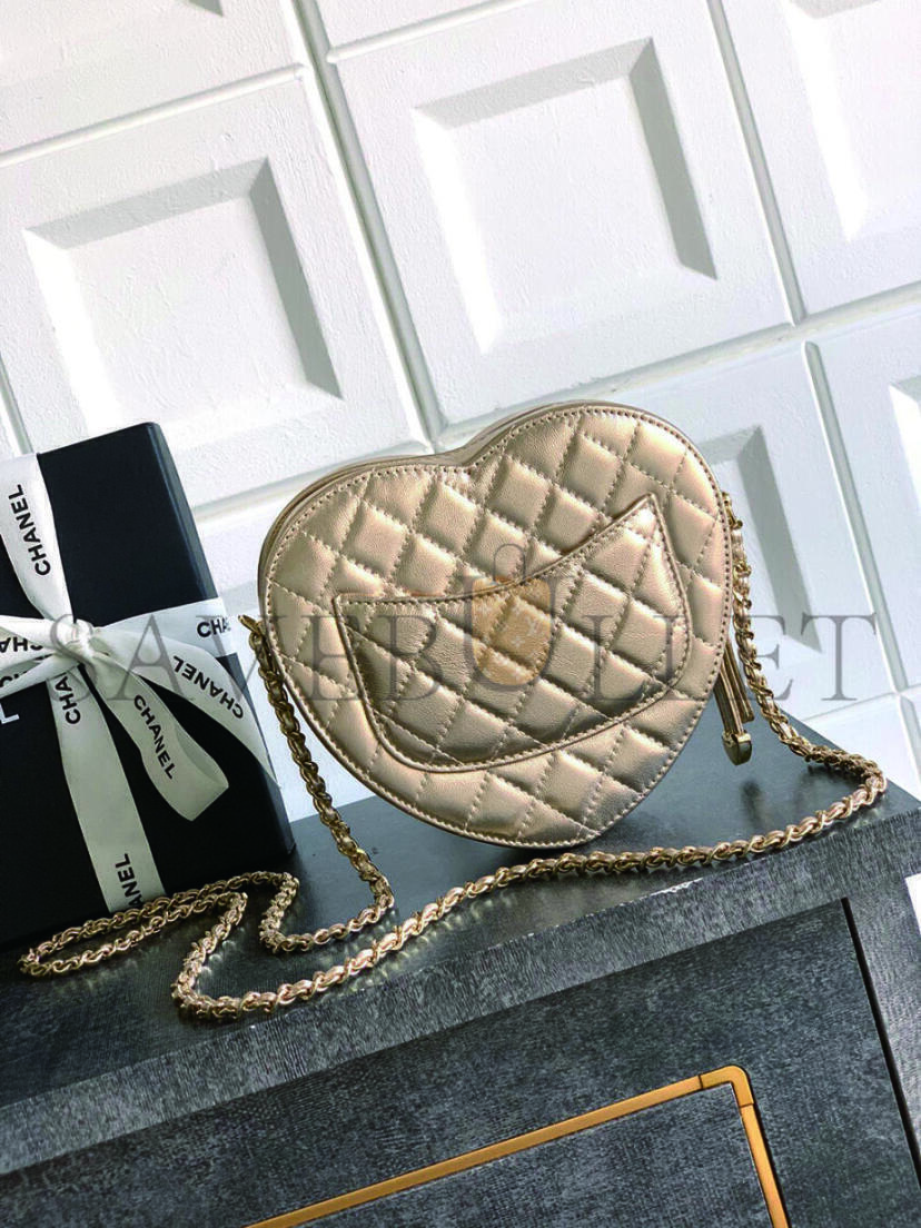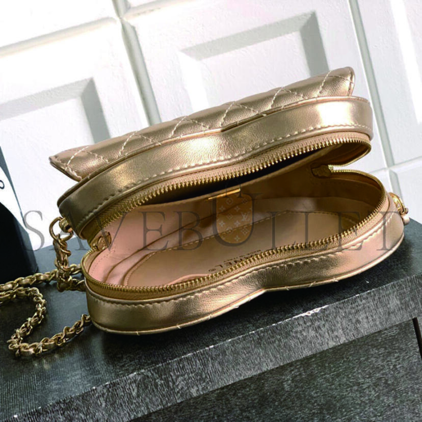 CHANEL HEART BAG LAMBSKIN IN GOLD AS5764 (19*17*5.5cm)