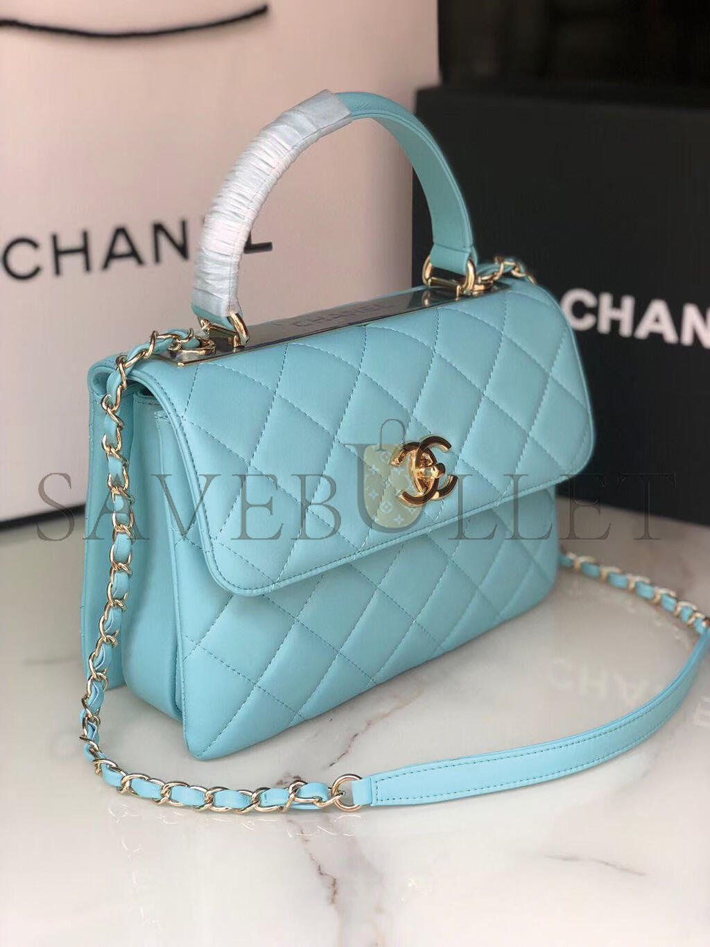 CHANEL LAMBSKIN QUILTED SMALL TRENDY TOP HANDLE BAG A92236 02 (25*17*12cm)