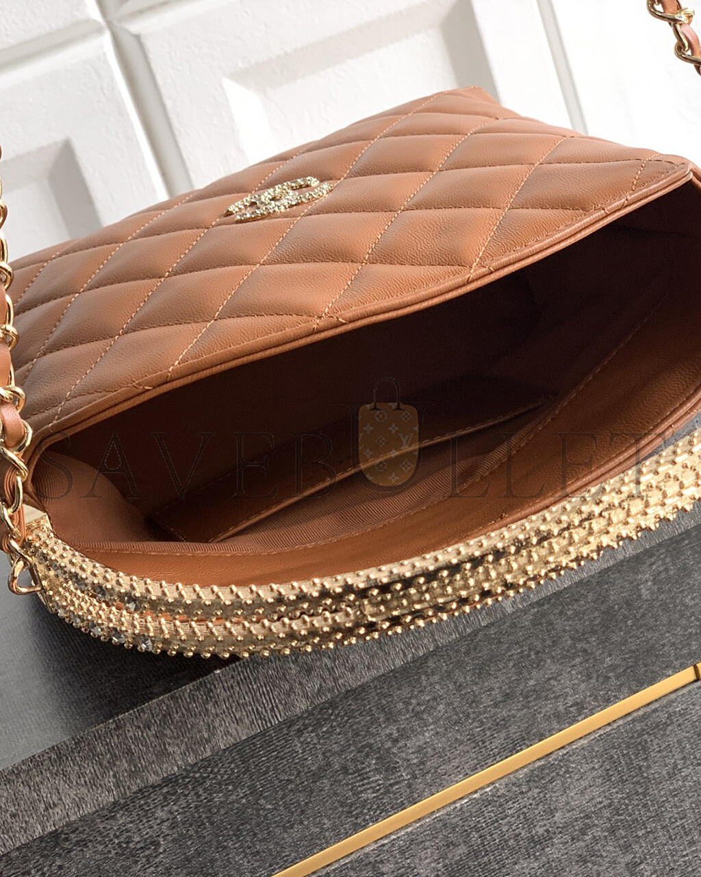 CHANEL FLAP BAG GRAINED SHINY CALFSKIN & GOLD-TONE METAL AS5182 (33*16*5cm)