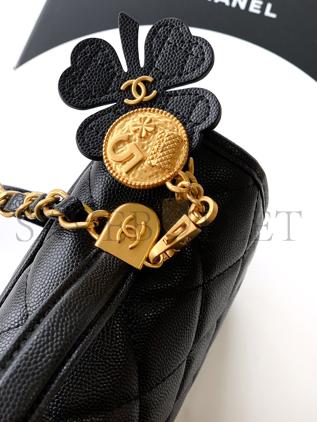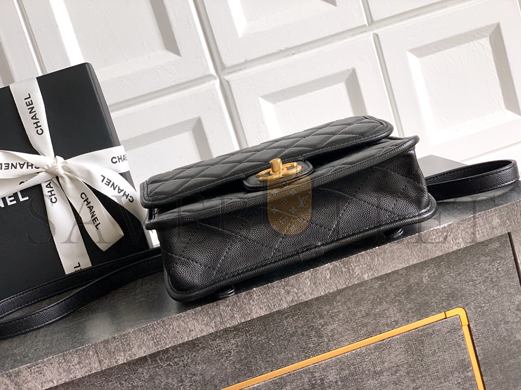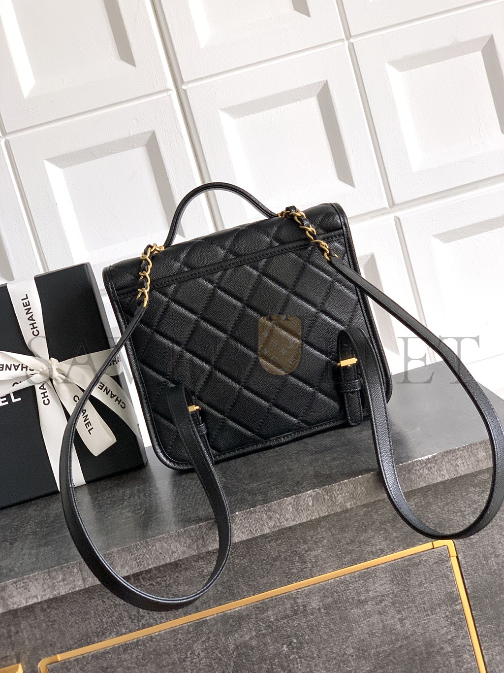 CHANEL BACKPACK GRAINED SHINY CALFSKIN & GOLD-TONE METAL BLACK AS5715 (22*19.5*7cm)