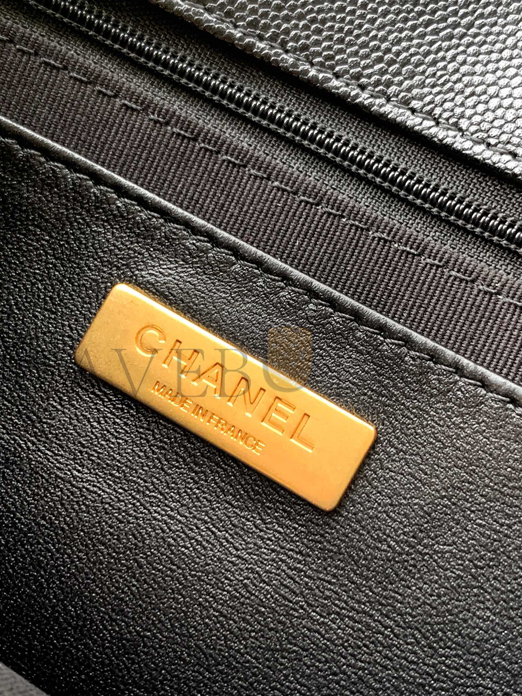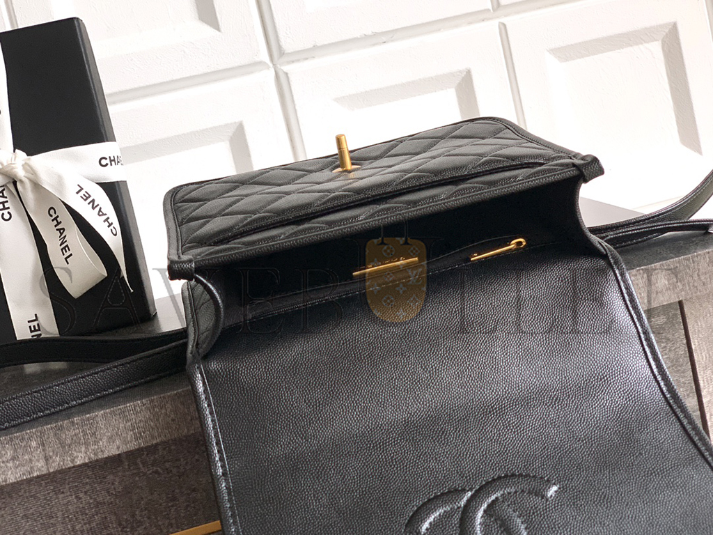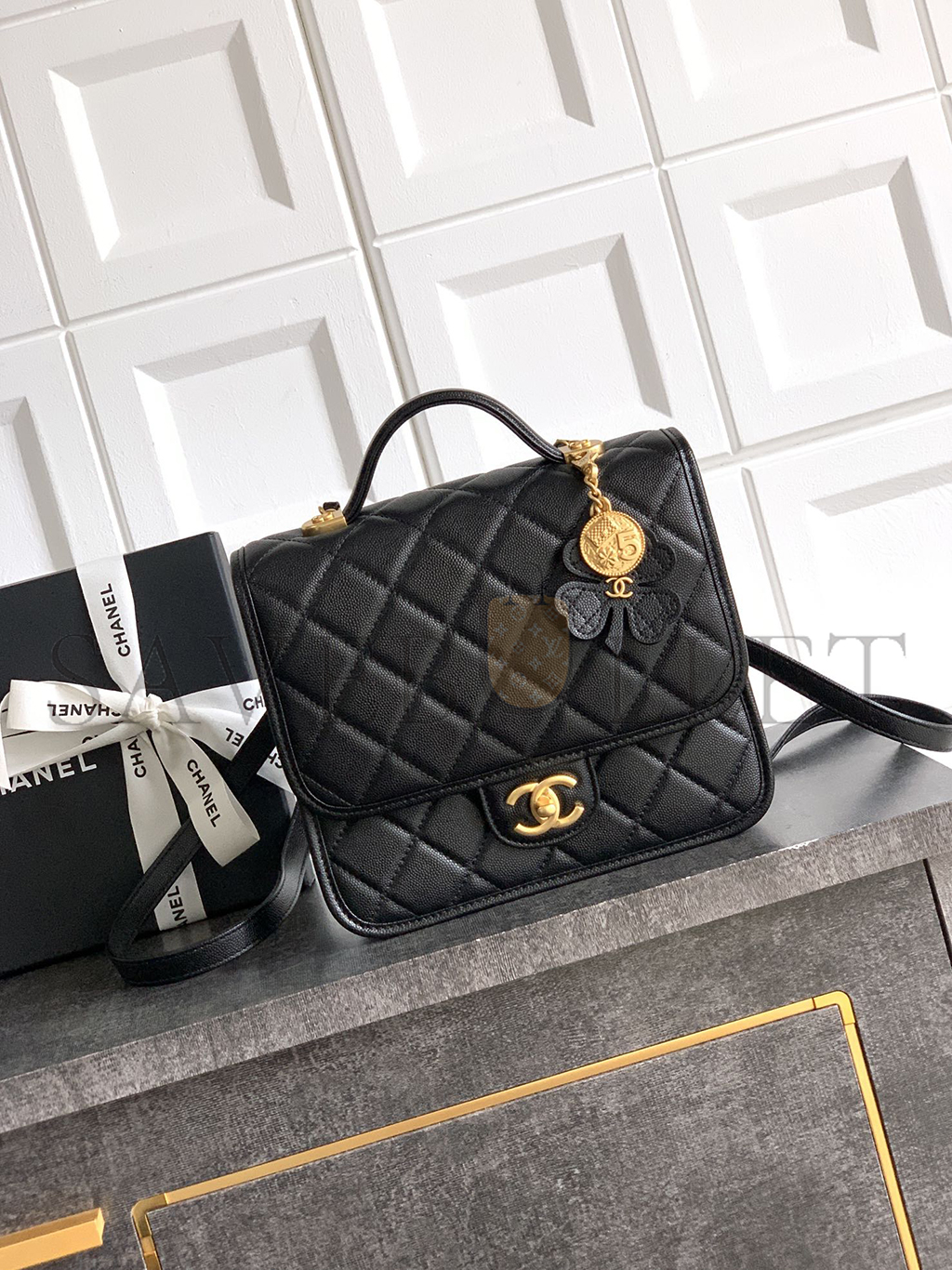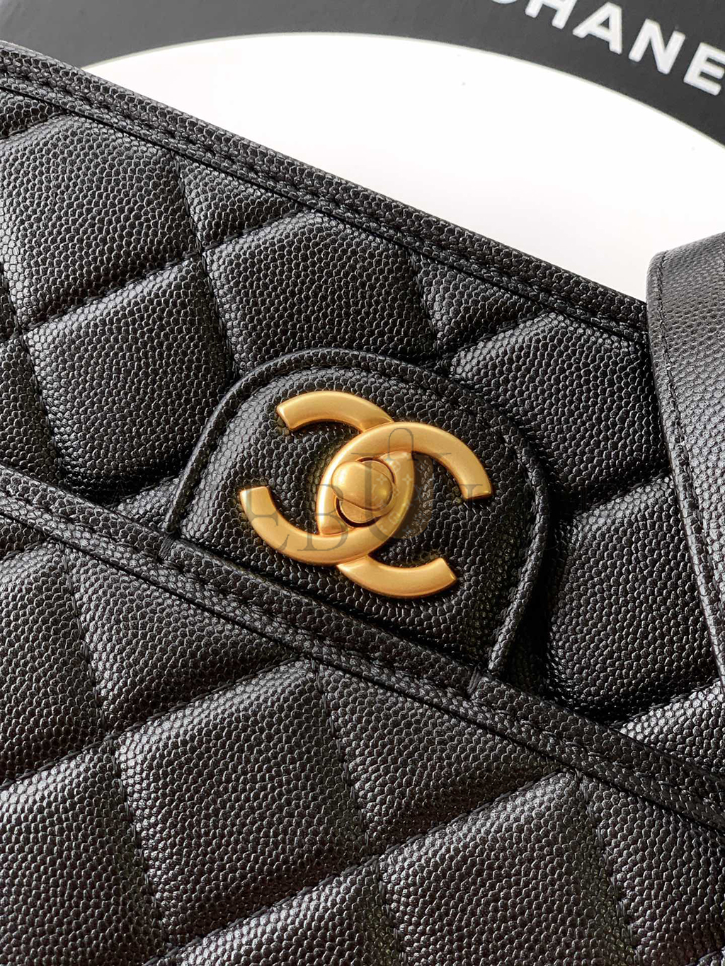 CHANEL BACKPACK GRAINED SHINY CALFSKIN & GOLD-TONE METAL BLACK AS5715 (22*19.5*7cm)
