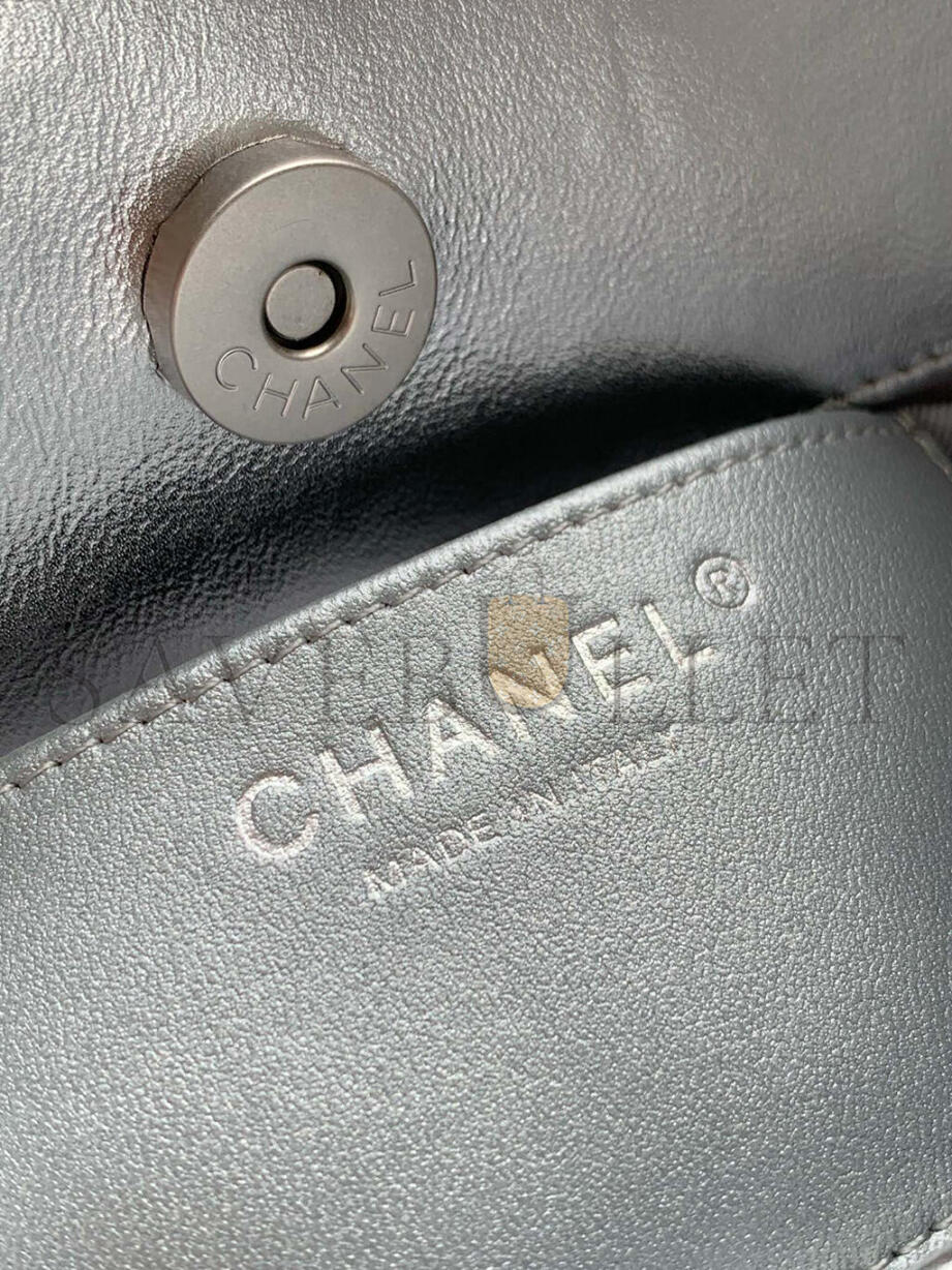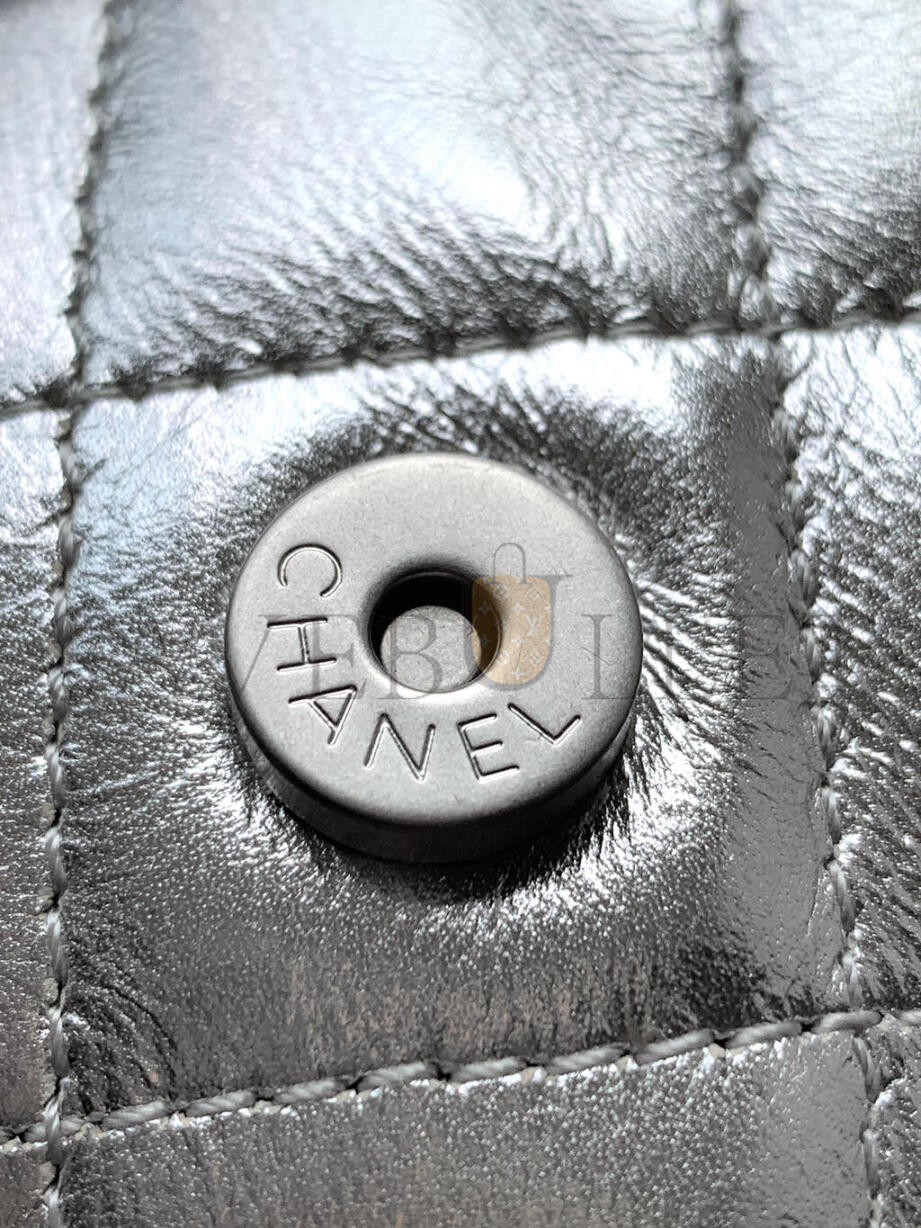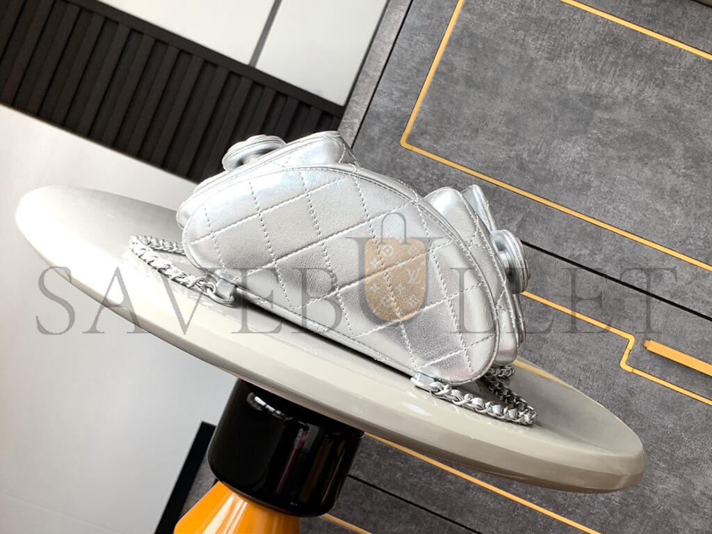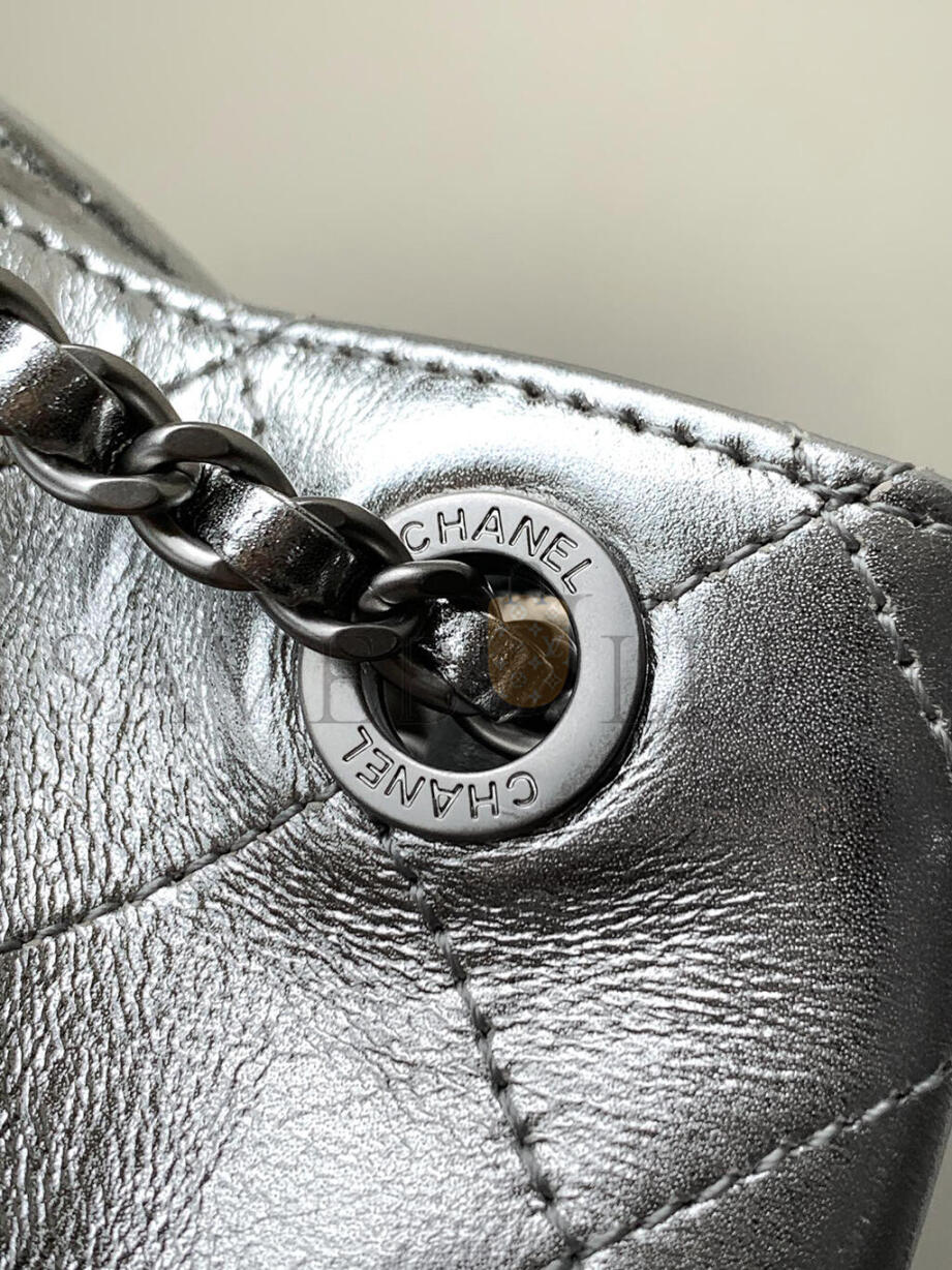 CHANEL METALLIC LAMBSKIN QUILTED DOUBLE POCKET BACKPACK SILVERY AS5310 (24*18*8cm)