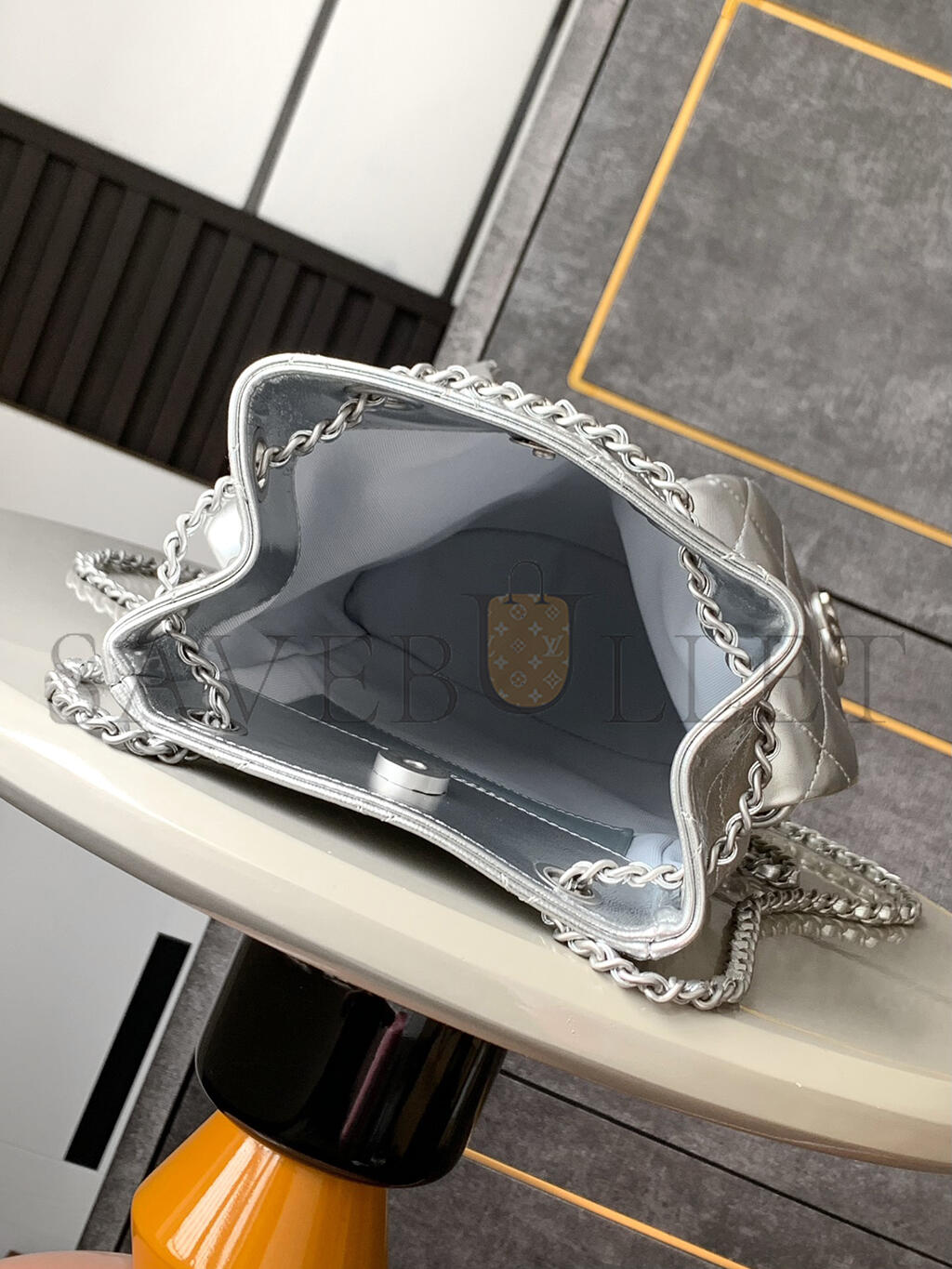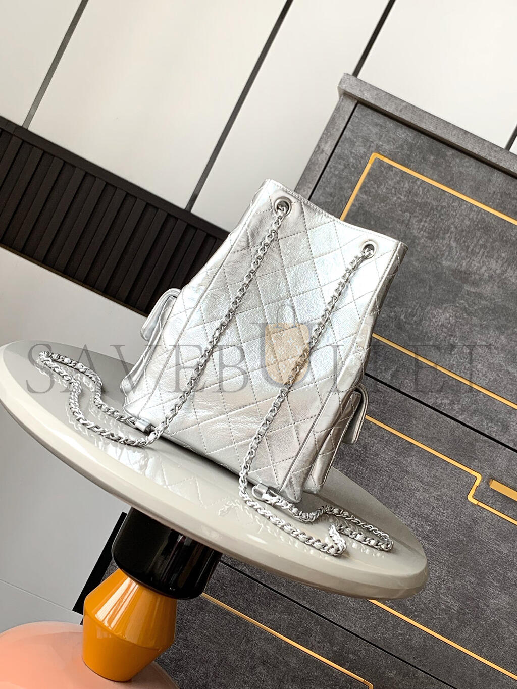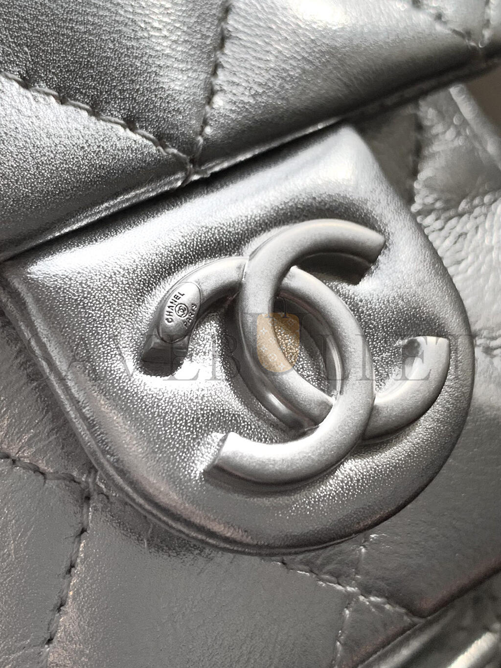 CHANEL METALLIC LAMBSKIN QUILTED DOUBLE POCKET BACKPACK SILVERY AS5310 (24*18*8cm)