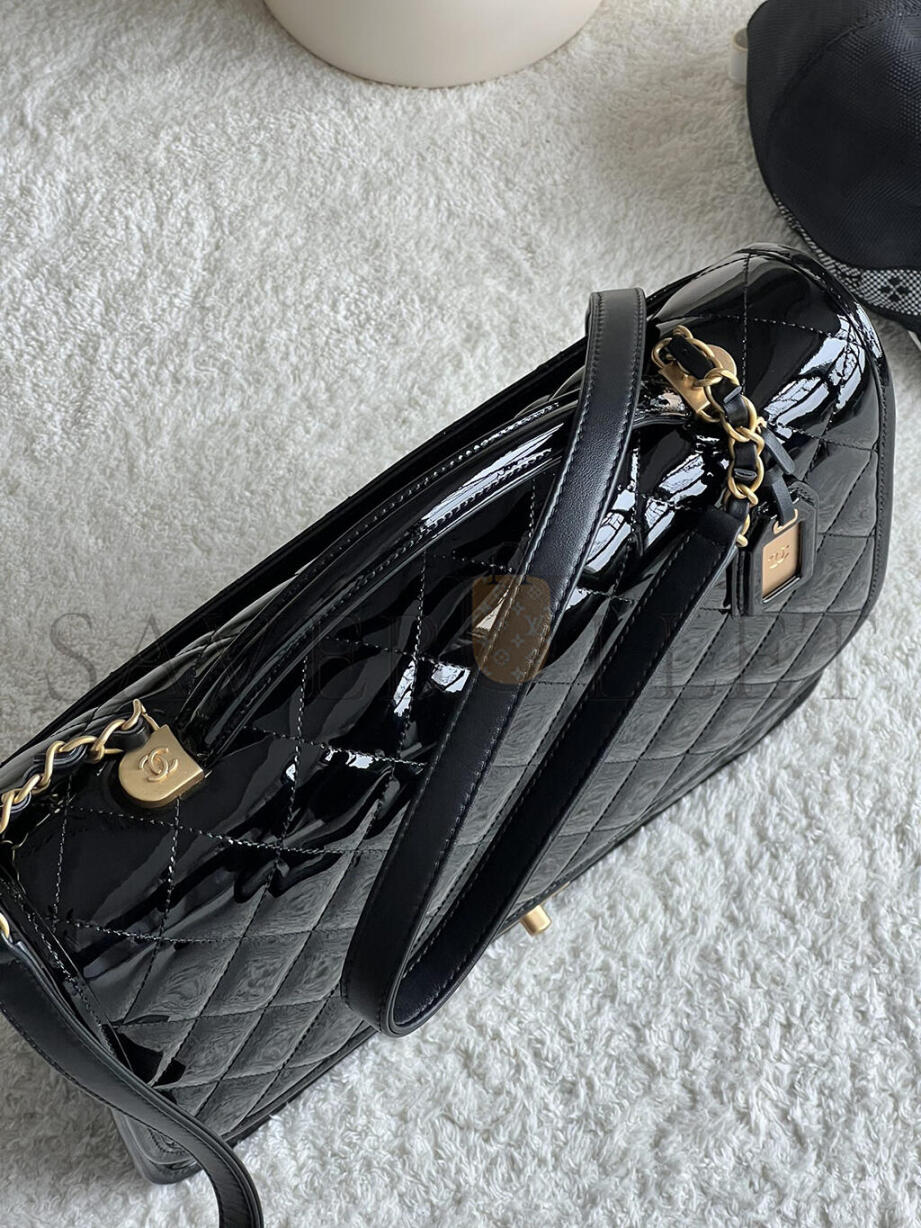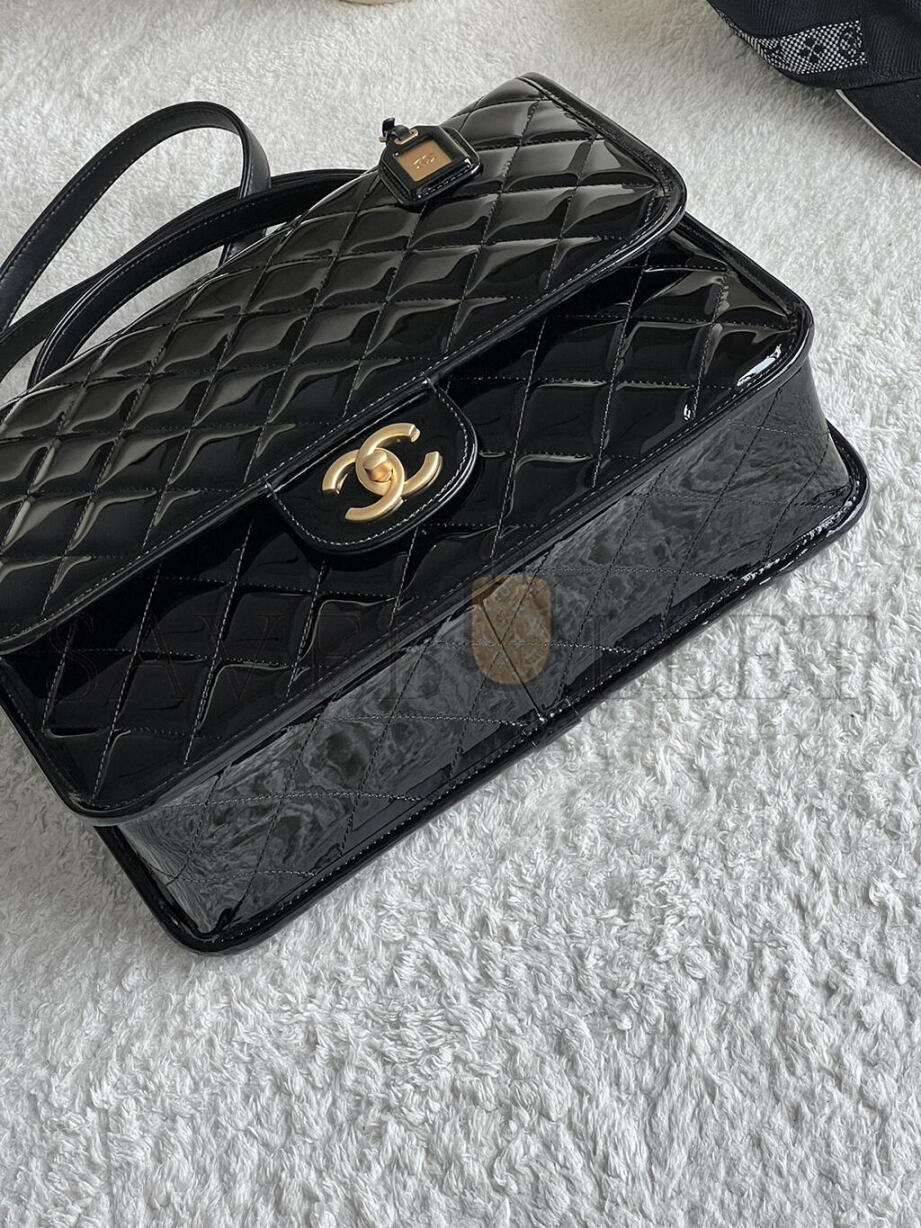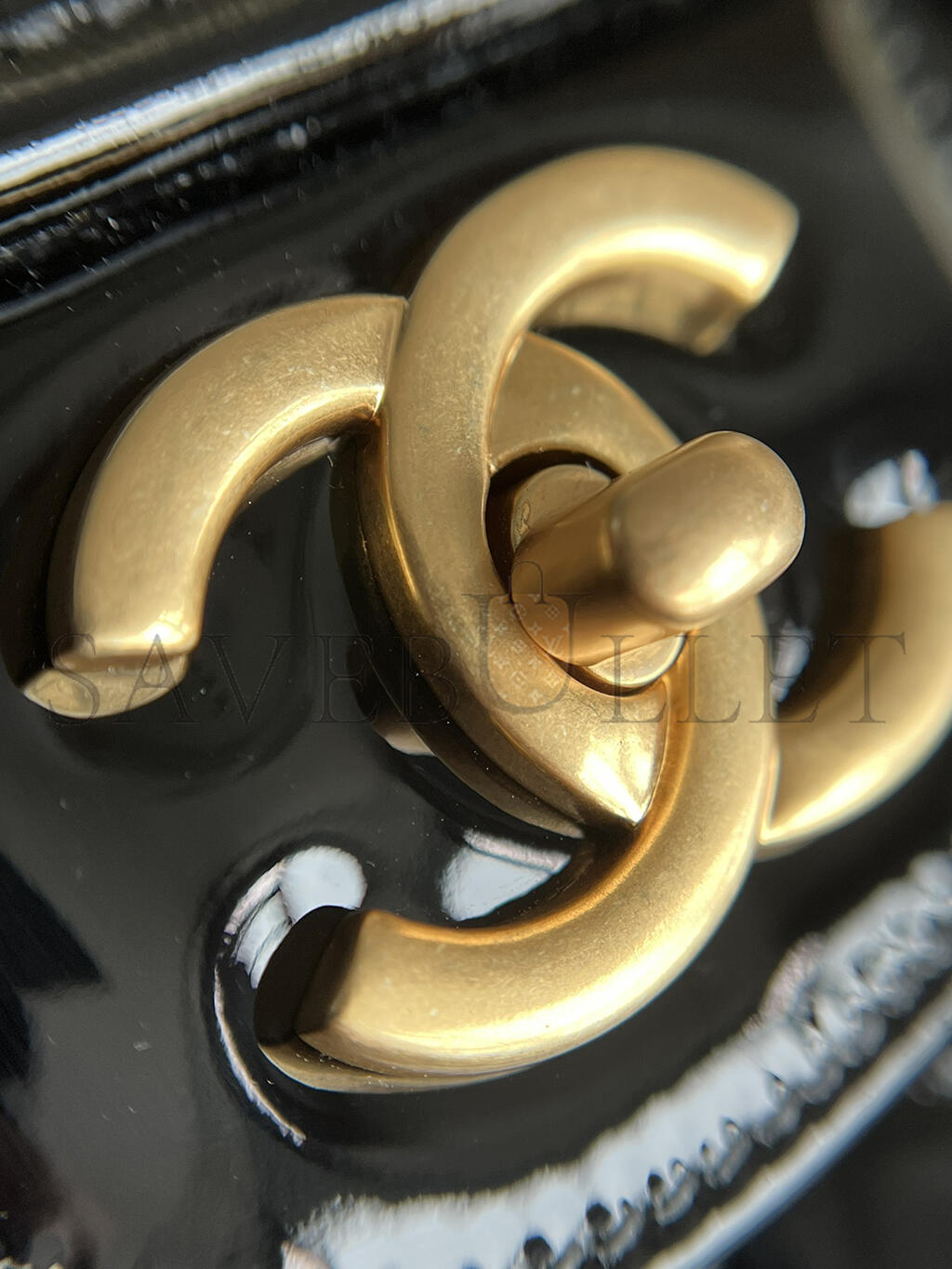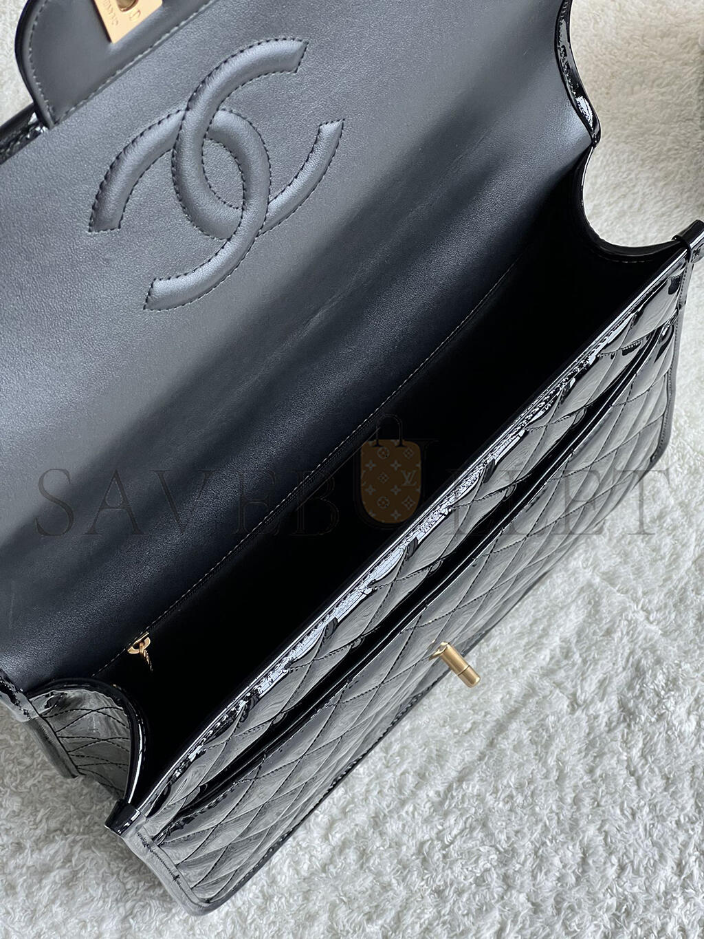 CHANEL LARGE FLAP BACKPACK BLACK PATENT ANTIQUE GOLD HARDWARE (30*23*10cm)