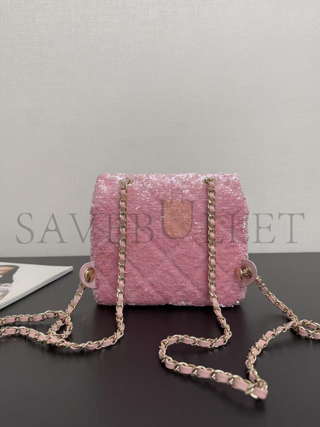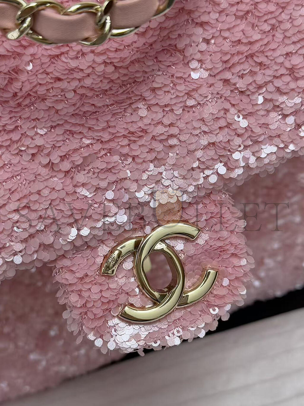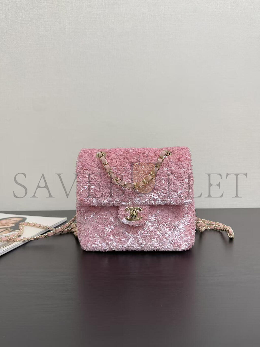 CHANEL QUILTED SEQUINS & GOLD-TONE METAL PINK BACKPACK AS5711 (21*17*7cm)