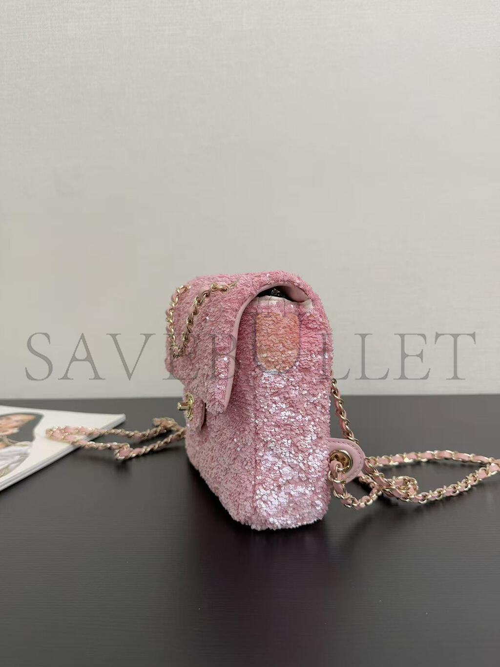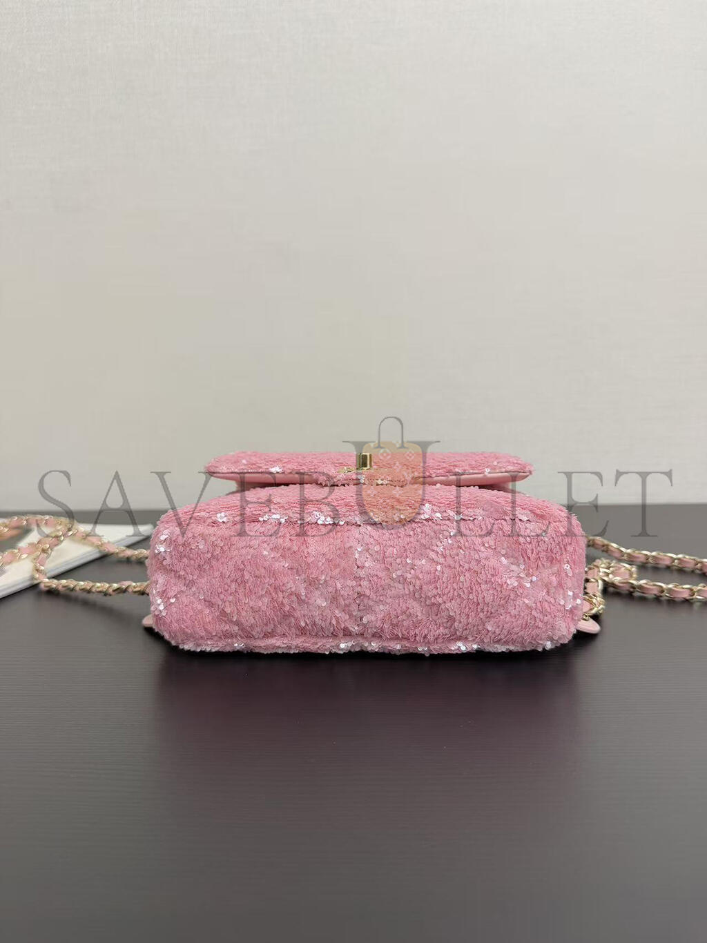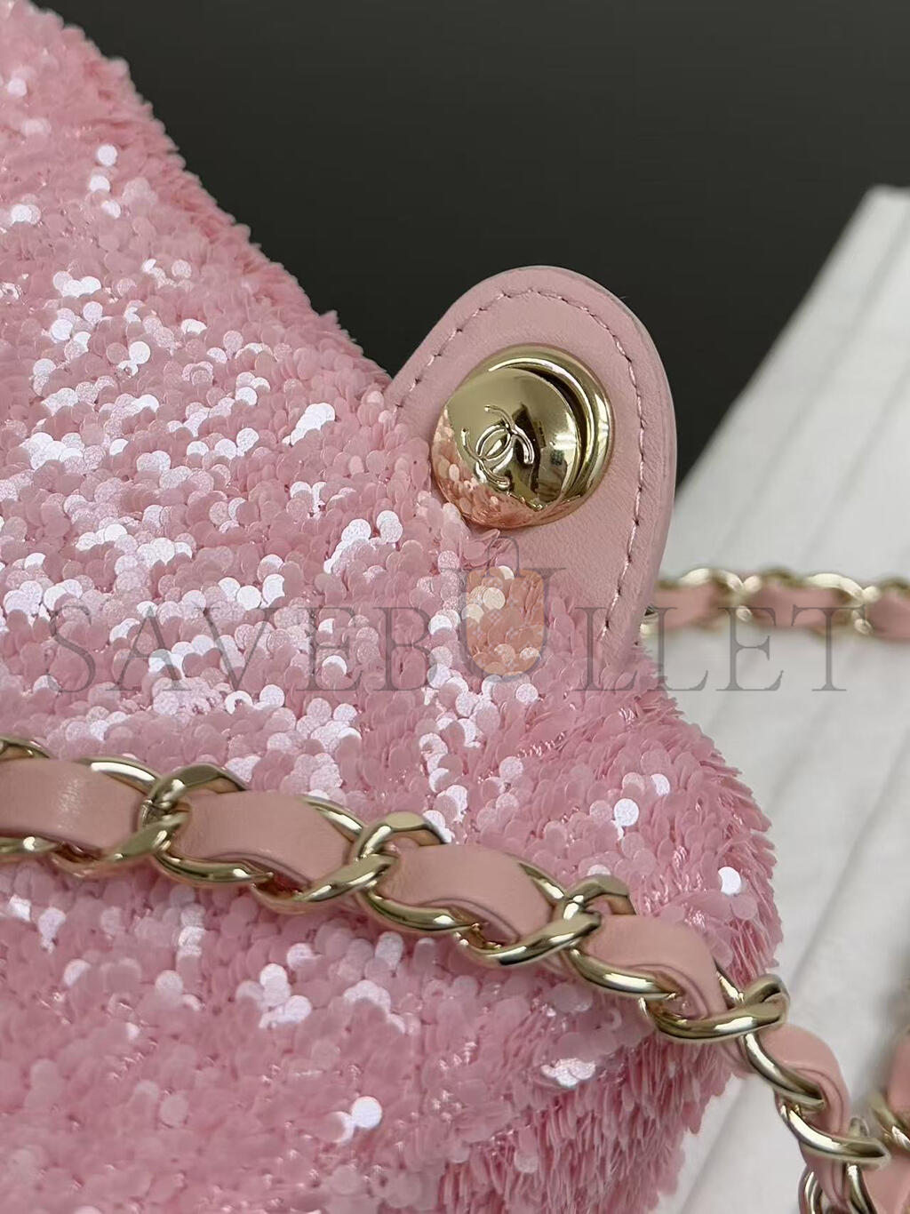 CHANEL QUILTED SEQUINS & GOLD-TONE METAL PINK BACKPACK AS5711 (21*17*7cm)