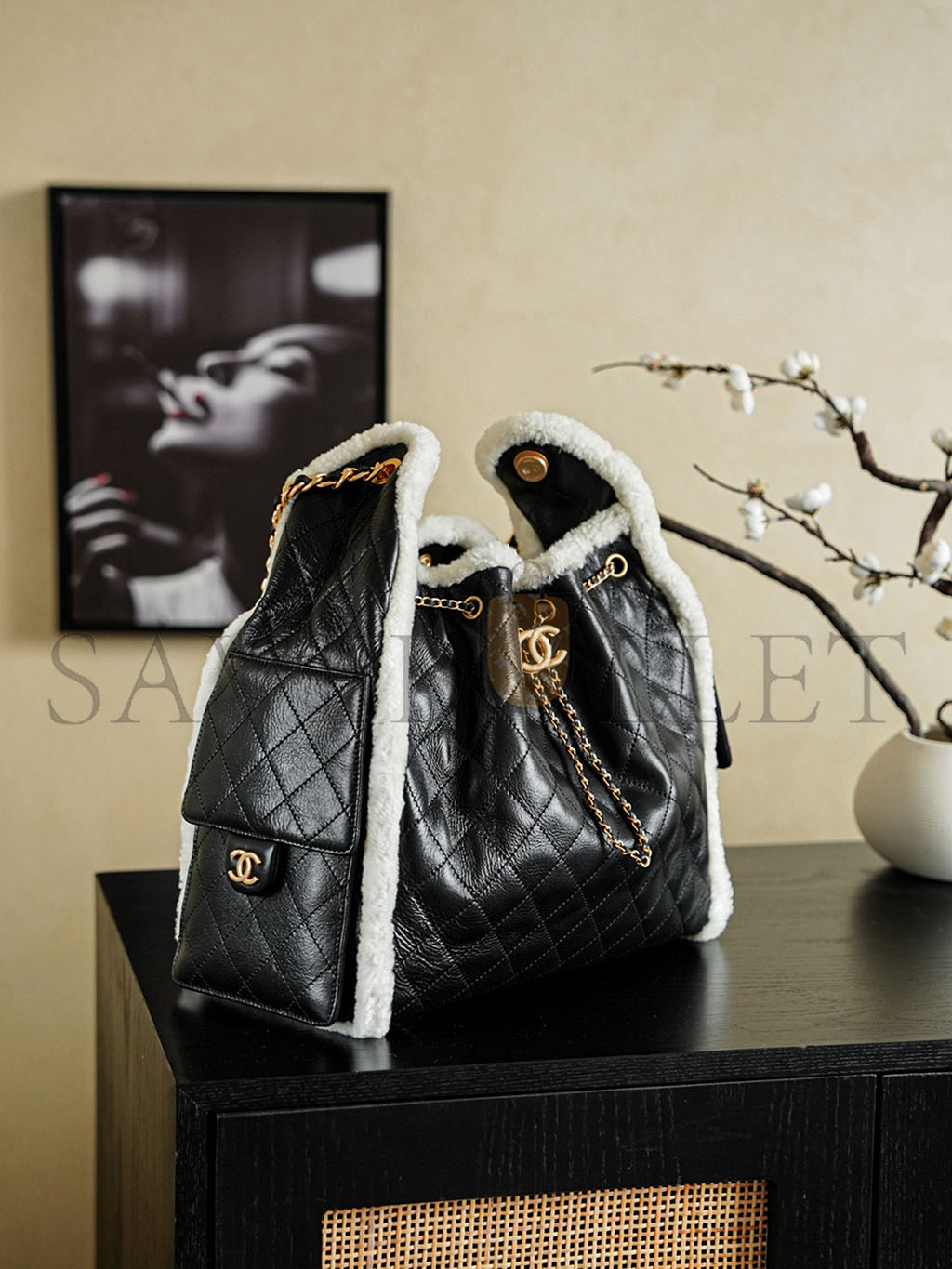 CHANEL FLAP BAG GRAINED SHINY CALFSKIN & GOLD-TONE METAL AS5182 (33*16*5cm)