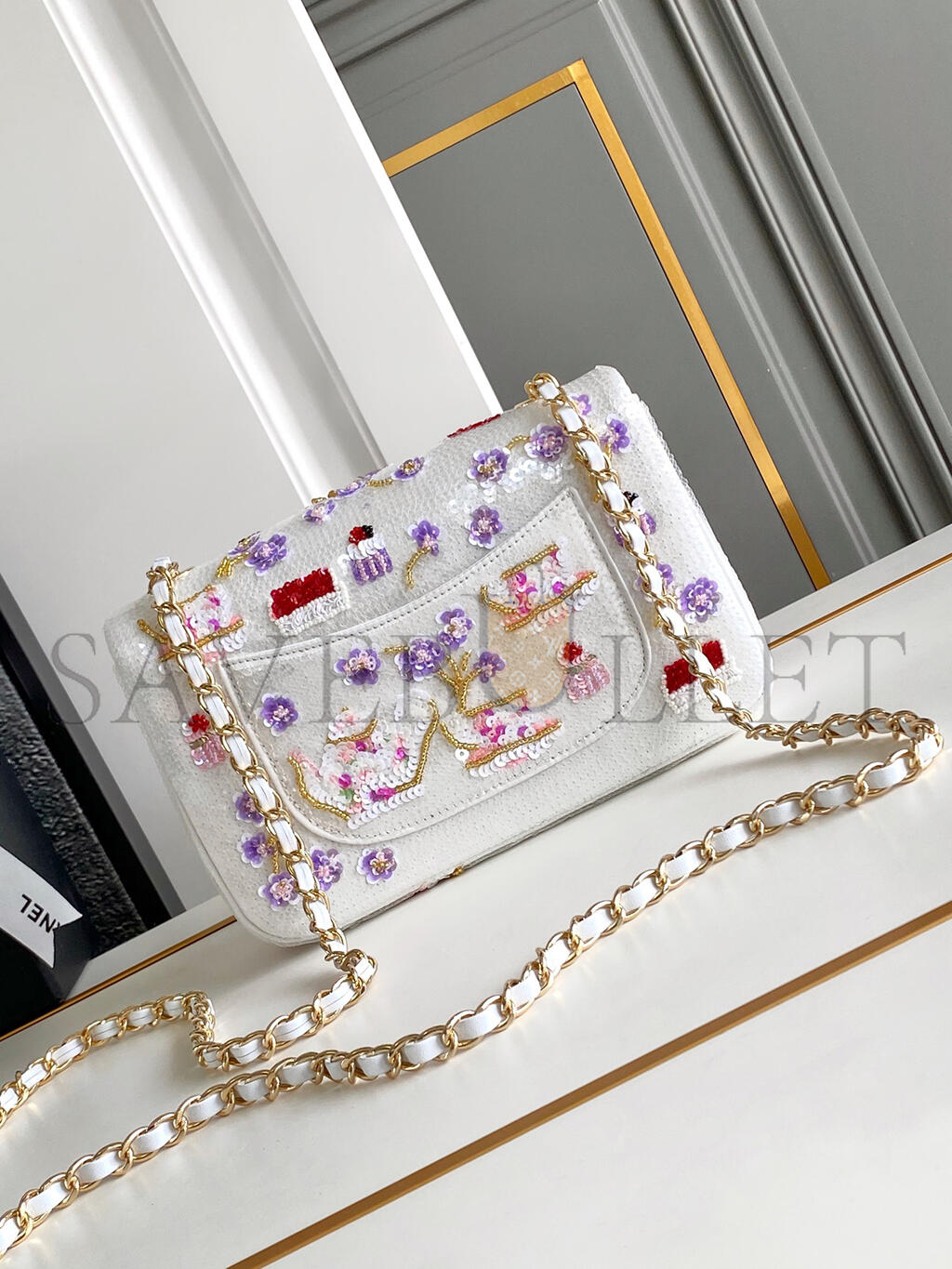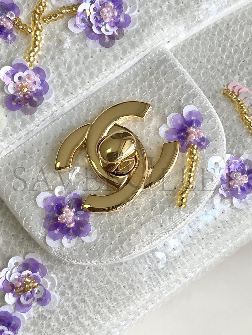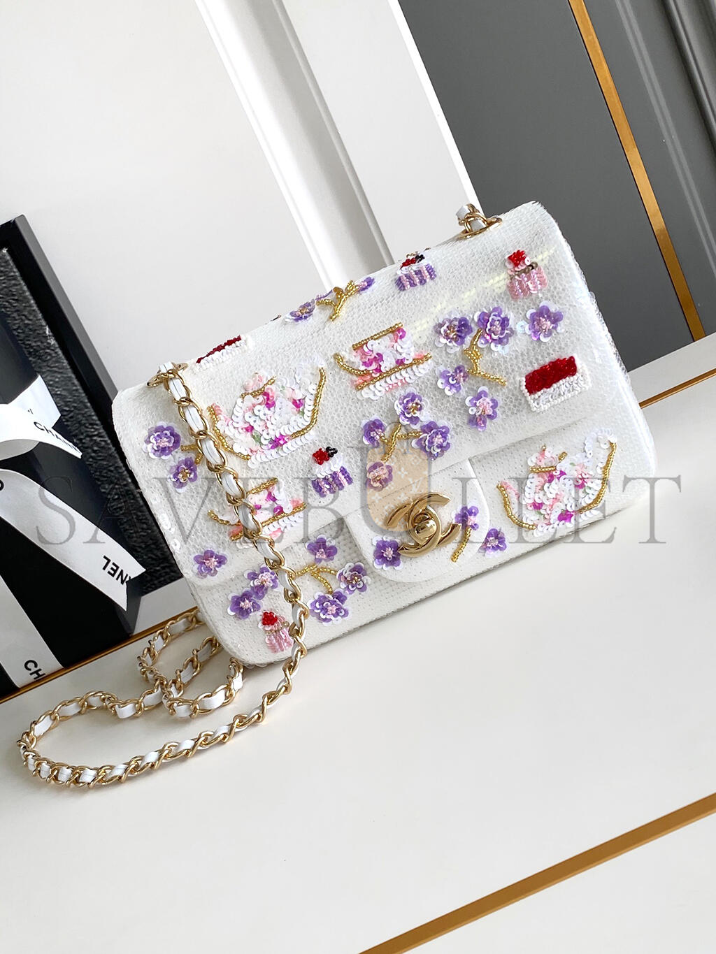 CHANEL NEW MINI CLASSIC FLAP BAG IN EMBROIDERED SATIN A69900 01 (20*12*6cm)