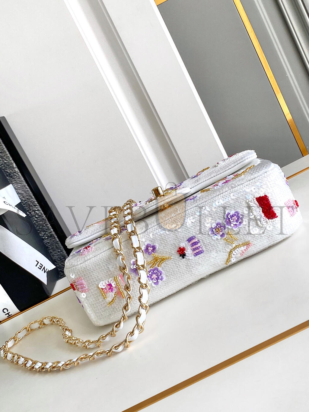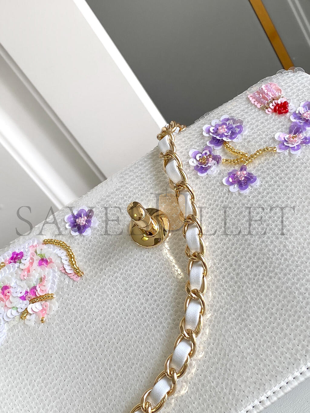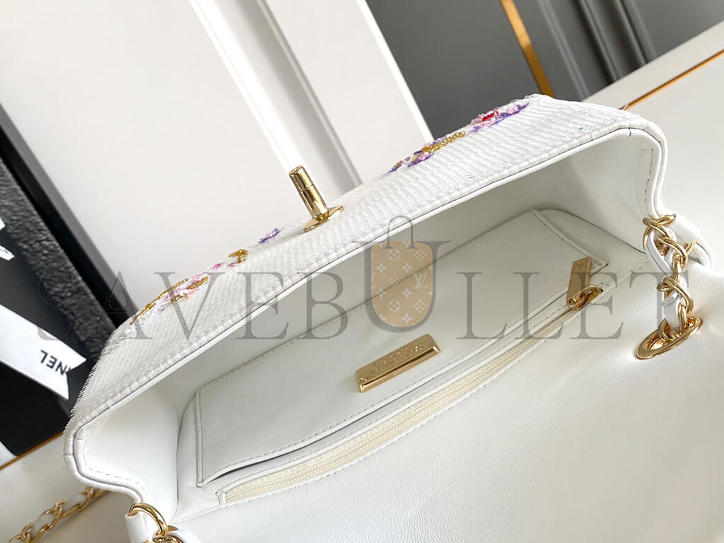 CHANEL NEW MINI CLASSIC FLAP BAG IN EMBROIDERED SATIN A69900 01 (20*12*6cm)