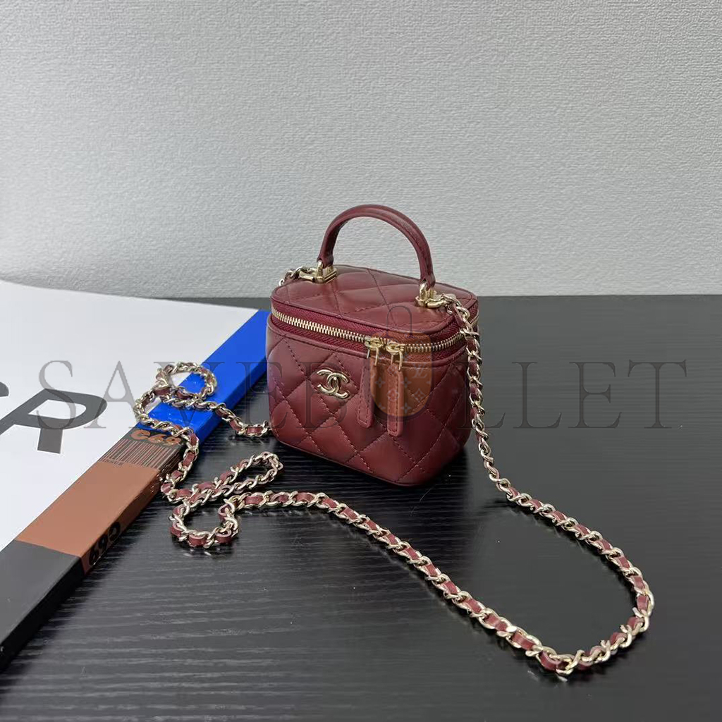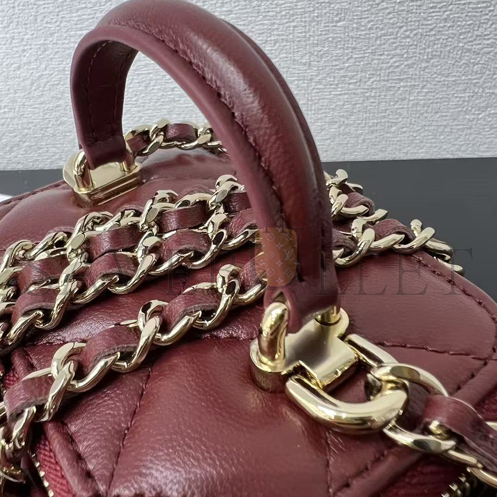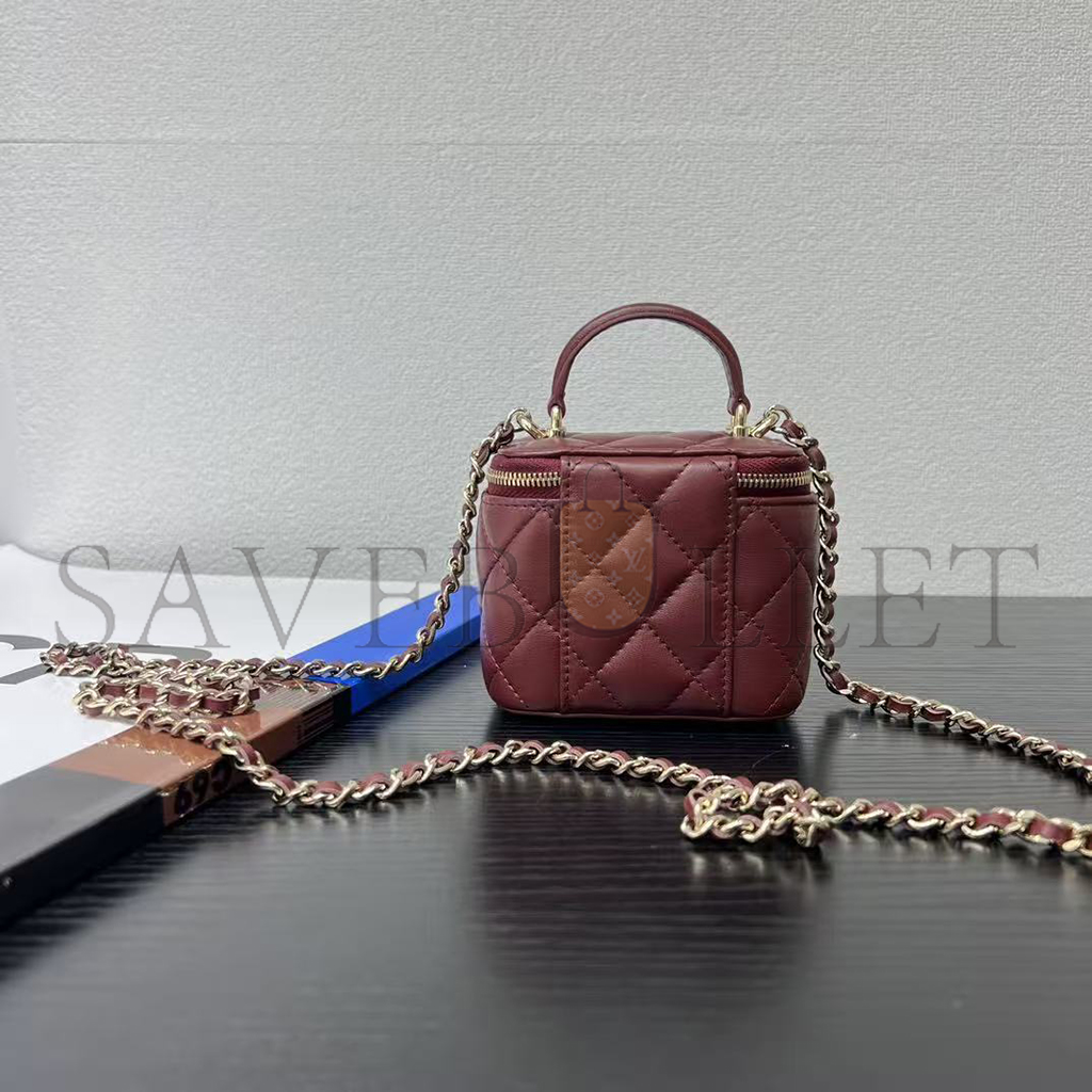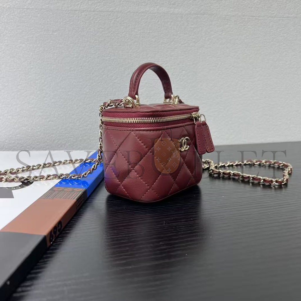 CHANEL LAMBSKIN QUILTED MINI TOP HANDLE VANITY CASE WITH CHAIN BURGUNDY 1271085 (10*9*7cm)