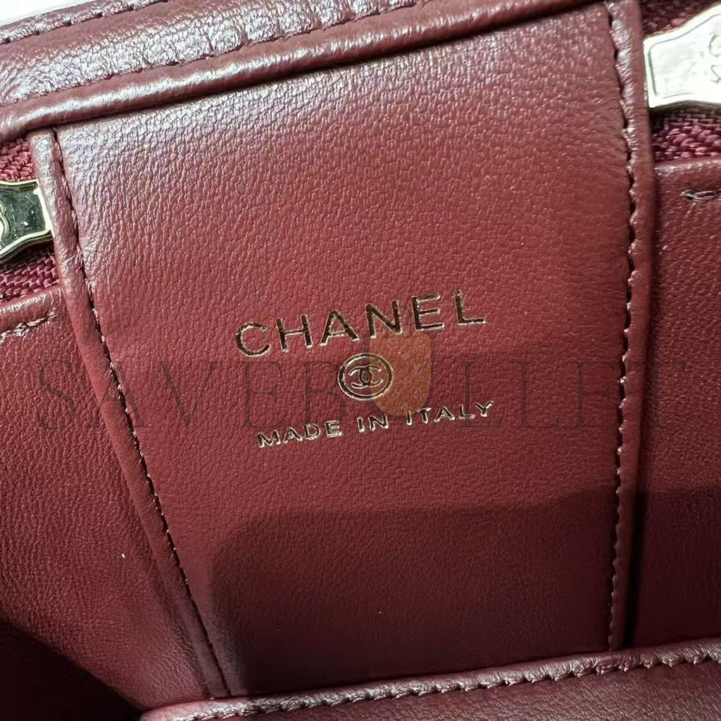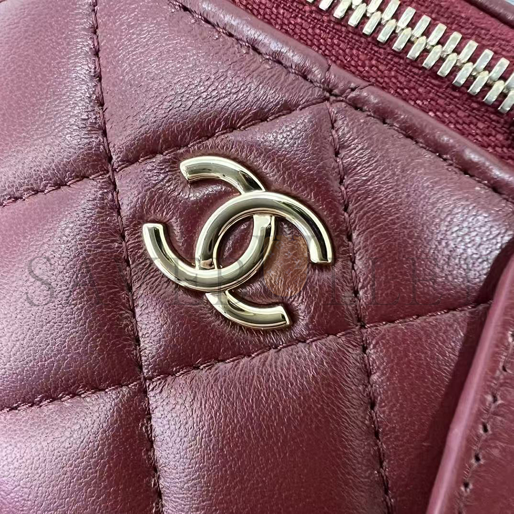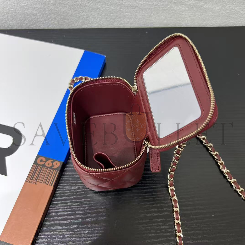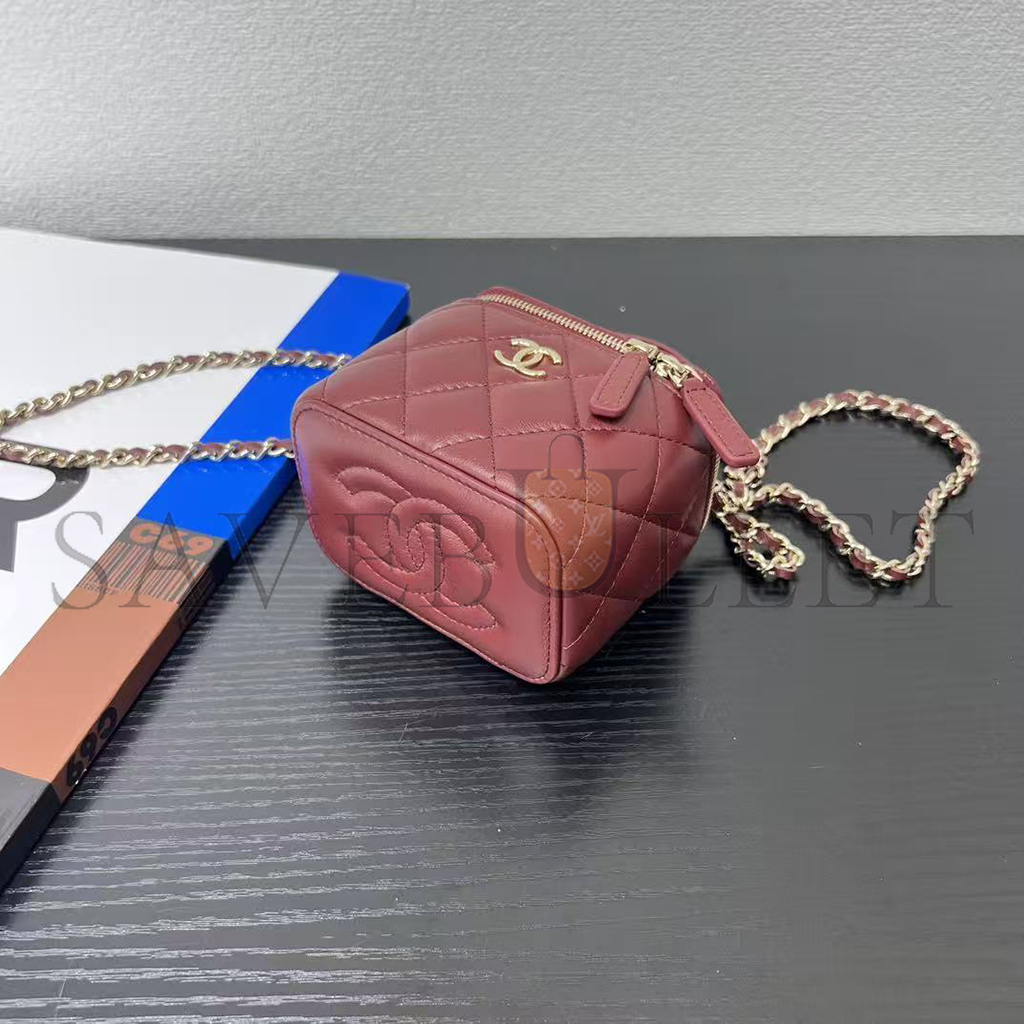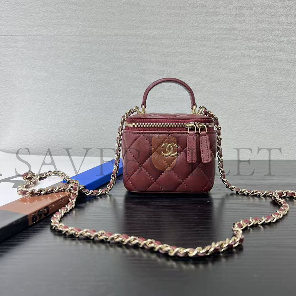 CHANEL LAMBSKIN QUILTED MINI TOP HANDLE VANITY CASE WITH CHAIN BURGUNDY 1271085 (10*9*7cm)