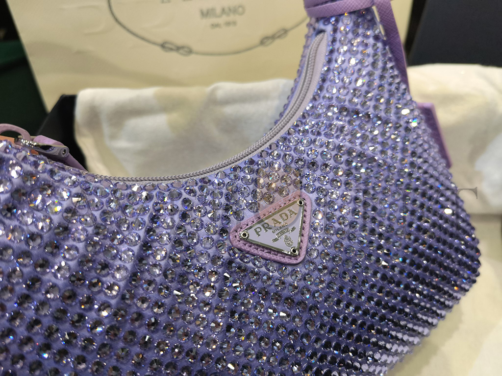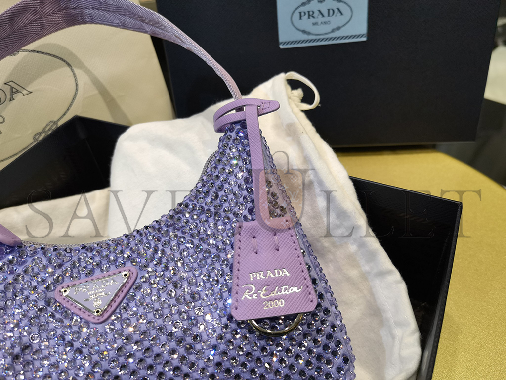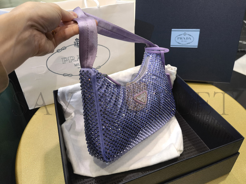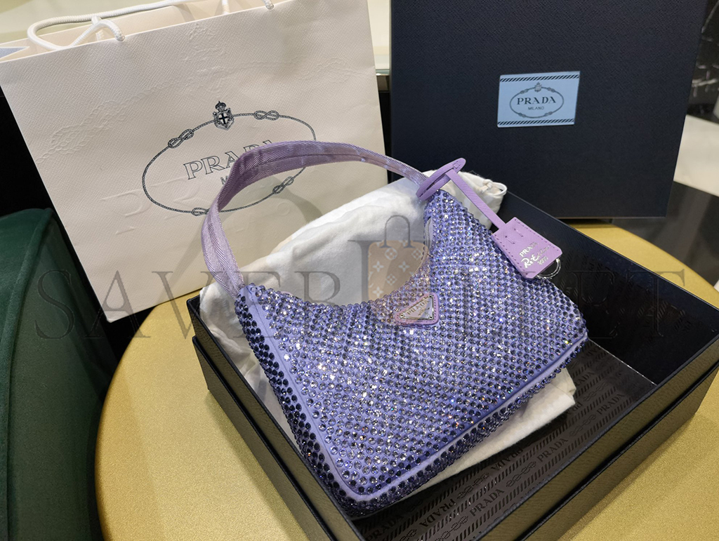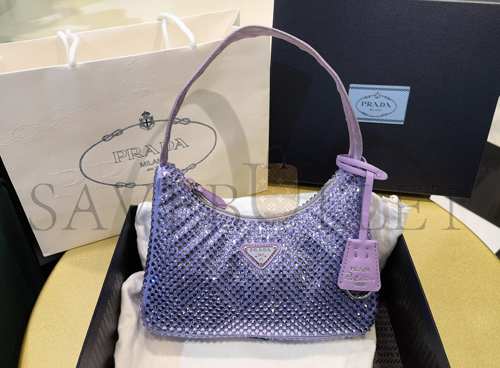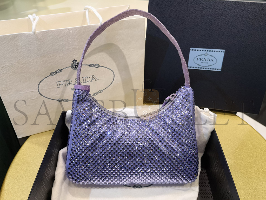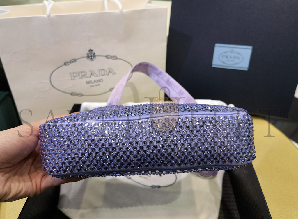 PRADA LAVENDER SATIN MINI BAG WITH CRYSTALS 1NE515 (22*17*6cm)