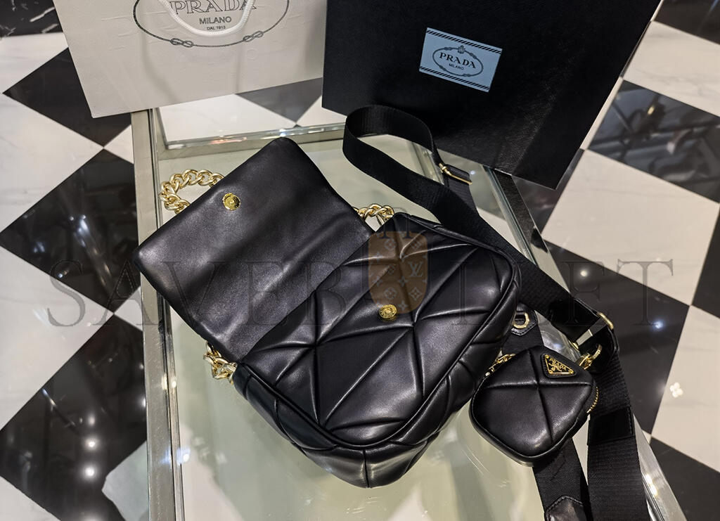 PRADA SYSTEM PATCHWORK MINI SHOULDER BAG BLACK 1BD292 (21*16*7cm)