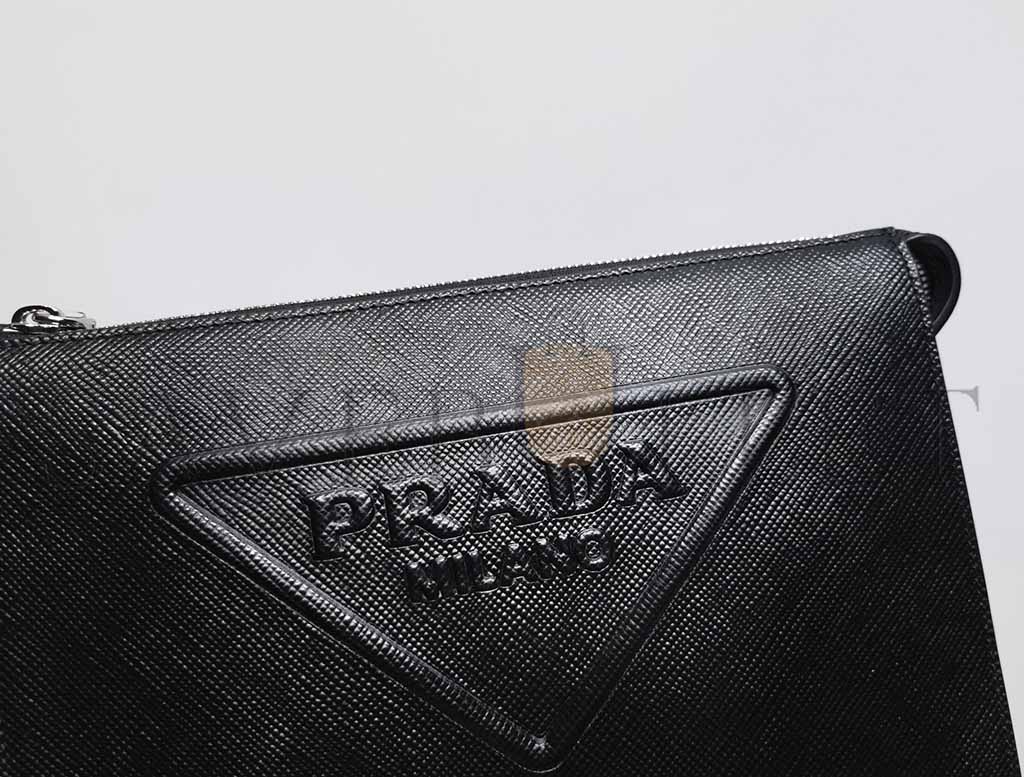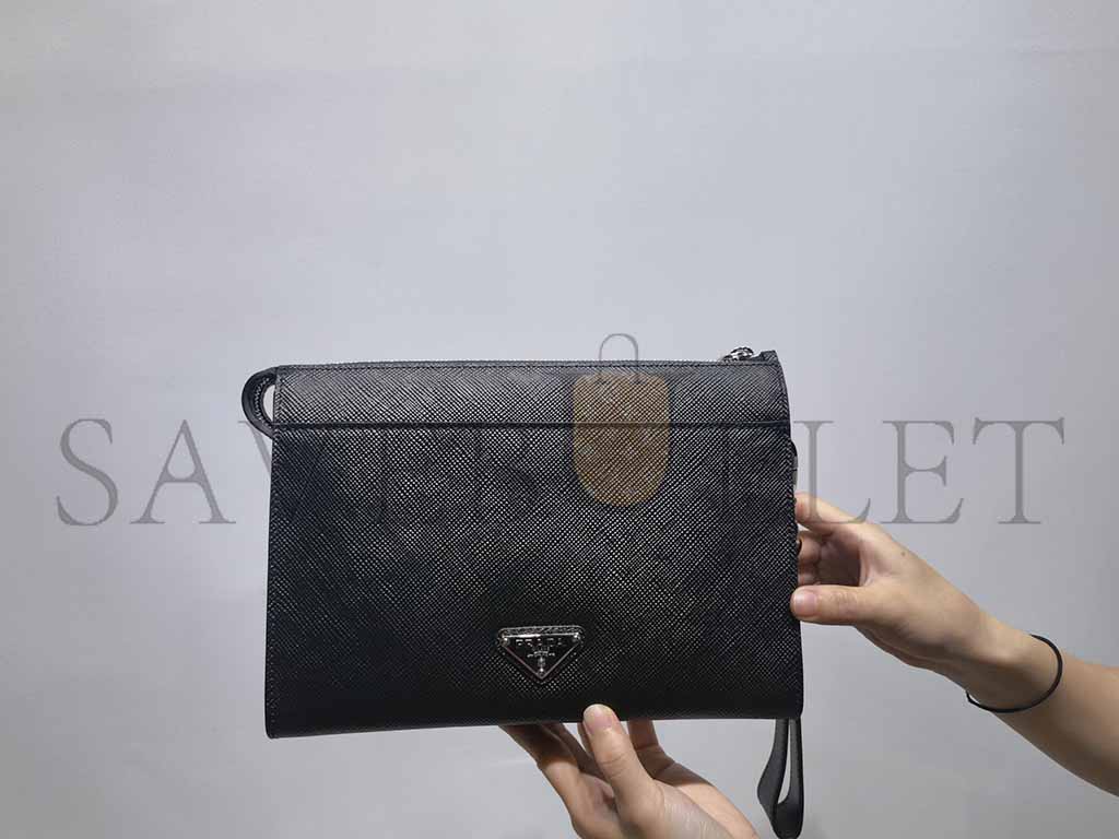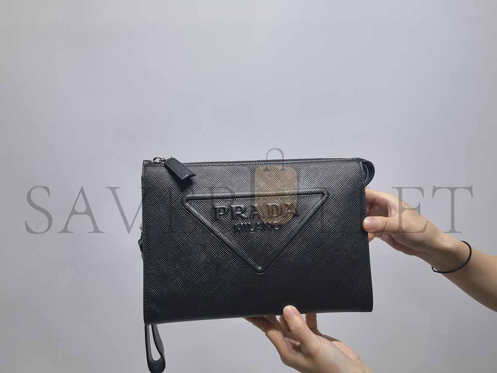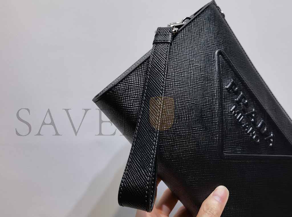PRADA EMBOSSED LOGO POUCH IN SAFFIANO-LEATHER 2VF039 (25*17*5cm)