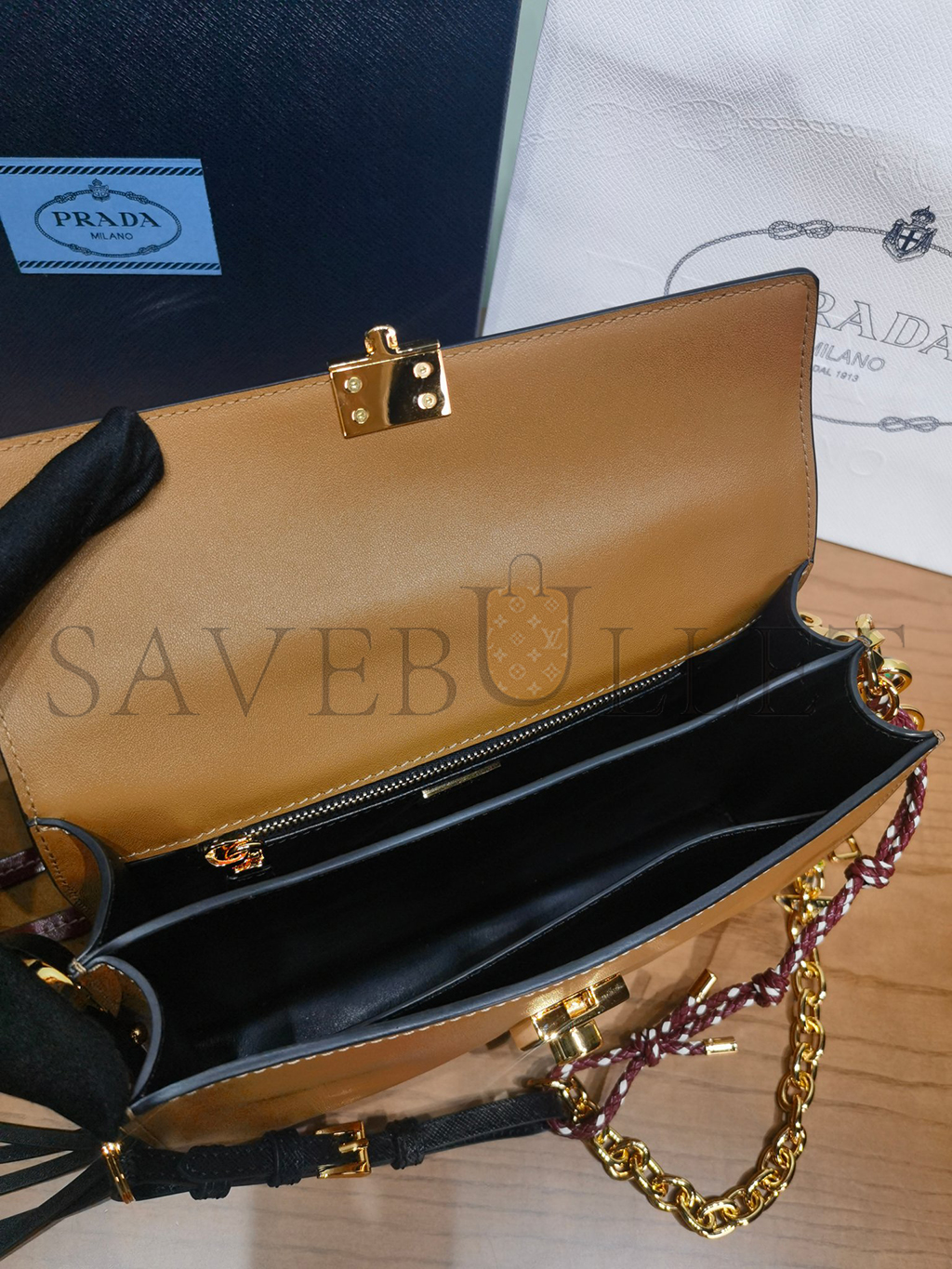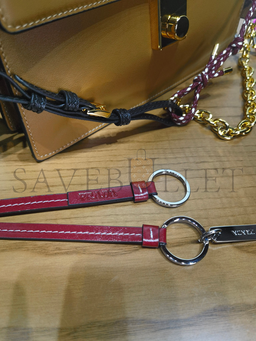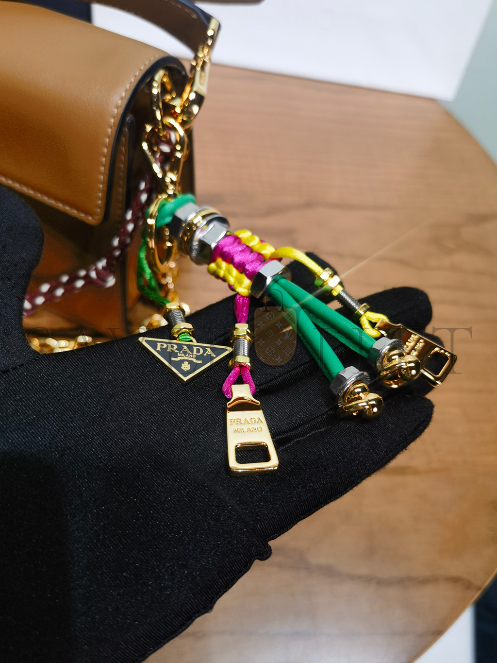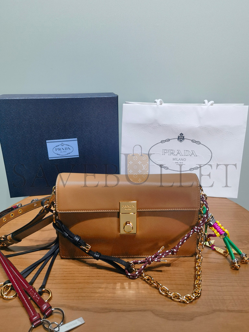 PRADA SOFT SOUND SMALL LEATHER SHOULDER BAG WITH CHARMS 1BD379 (24*13.5*5cm)