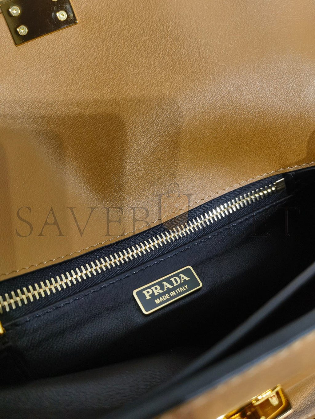 Nappa leather lining with two compartments and two pockets, one with zipper
