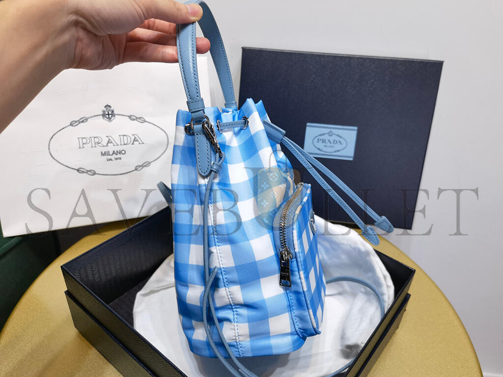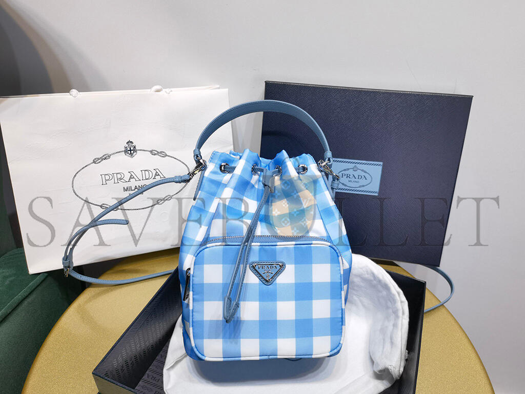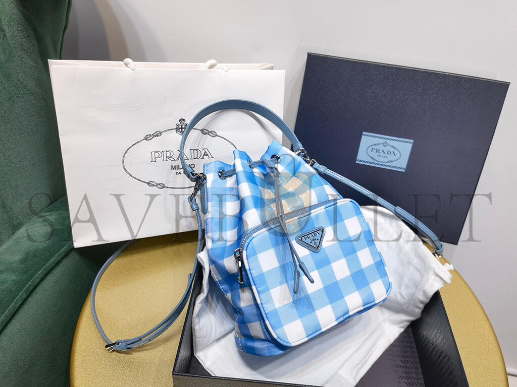 PRADA DUET DRAWSTRING BUCKET BAG PRINTED TESSUTO SMALL 1BH038 (22.5*17.5*12cm)
