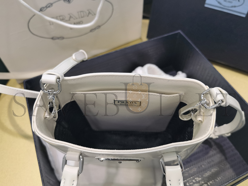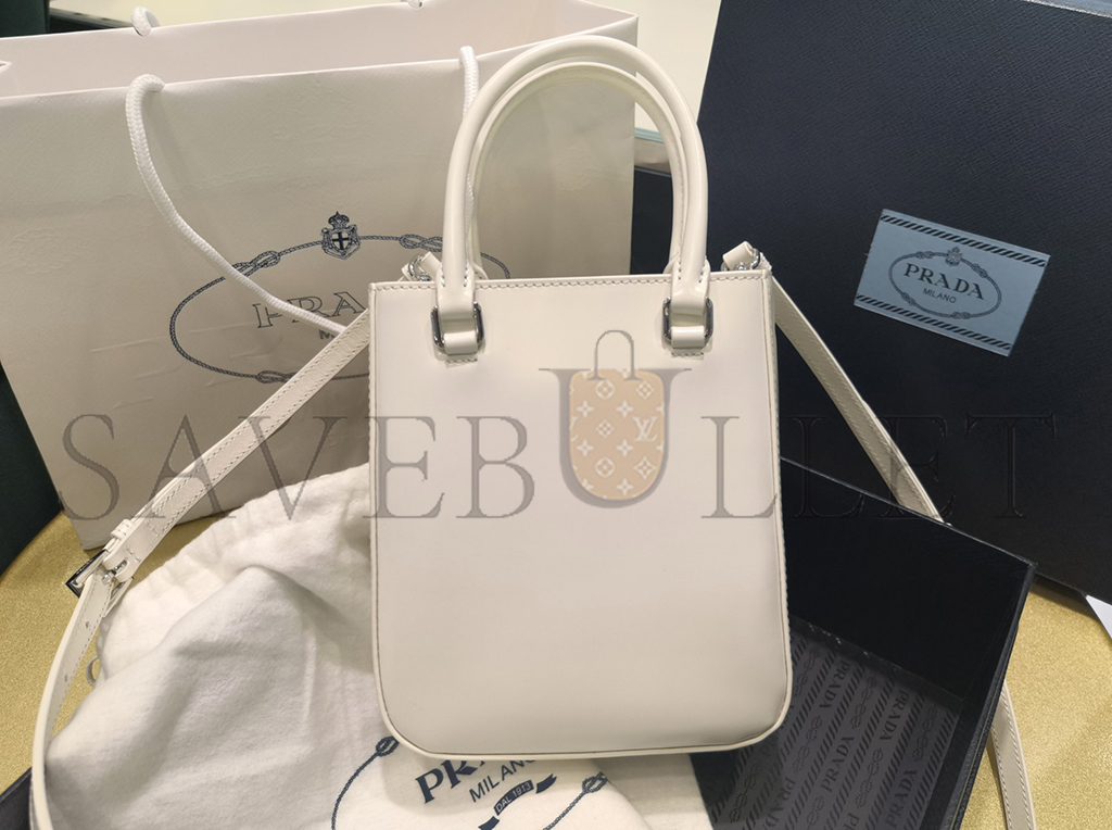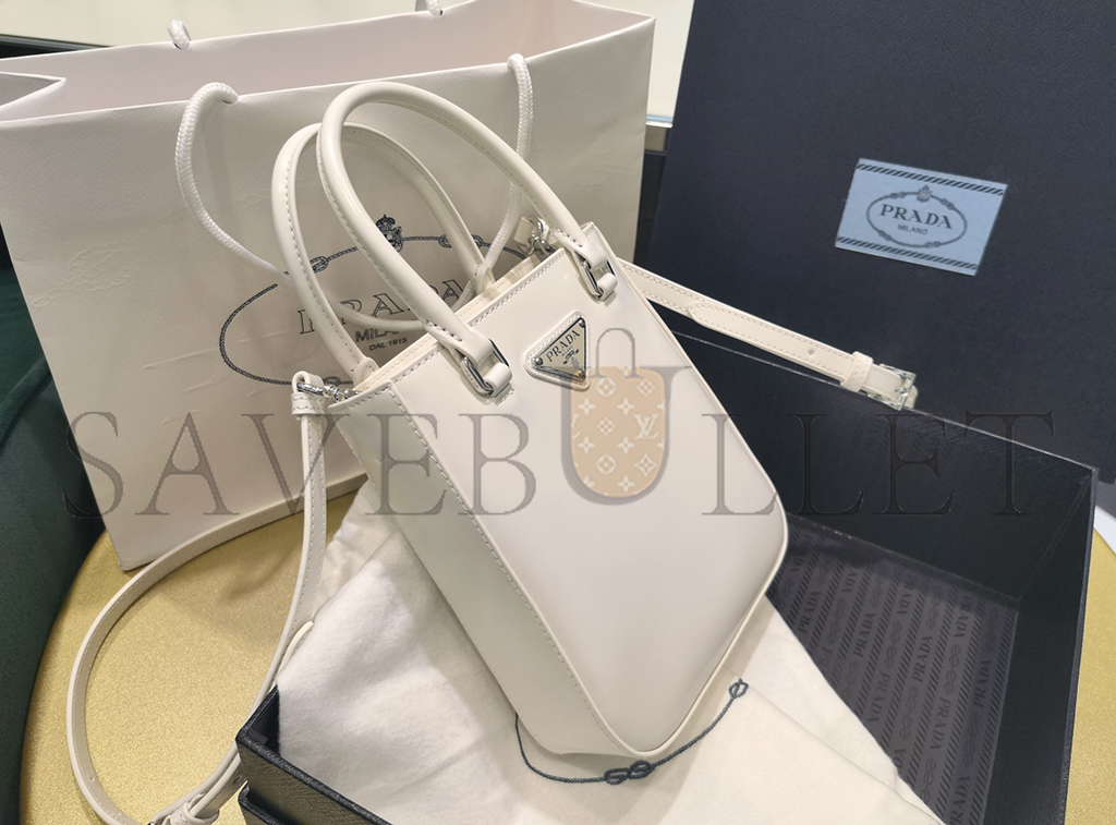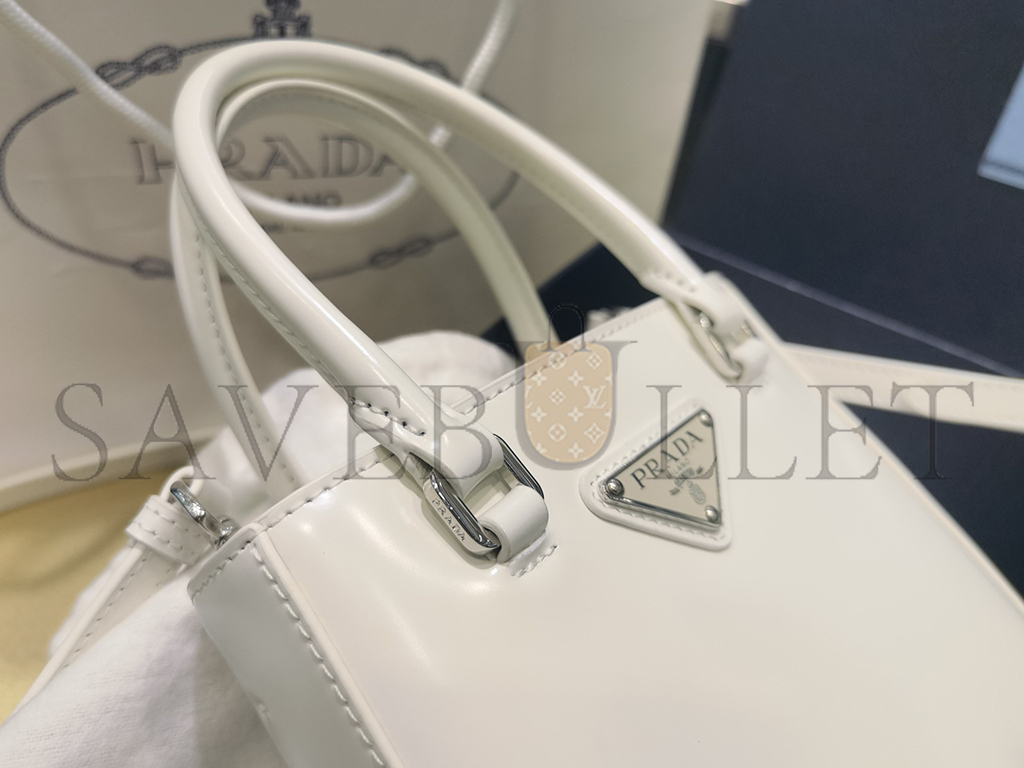 PRADA SMALL CROSSBODY TOTE WHITE BRUSHED LEATHER 1BA331 (17.5*15*5cm)
