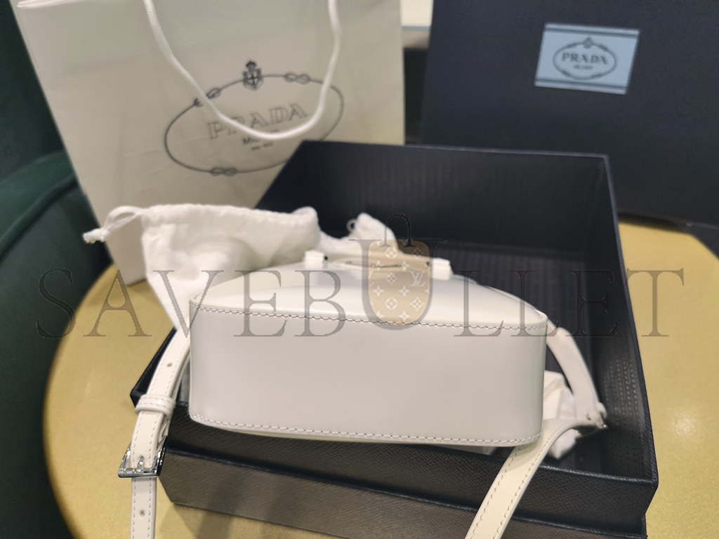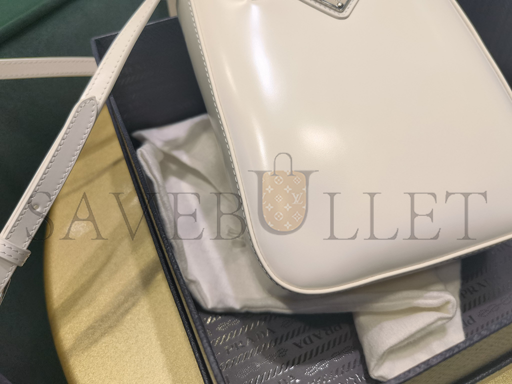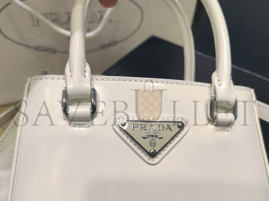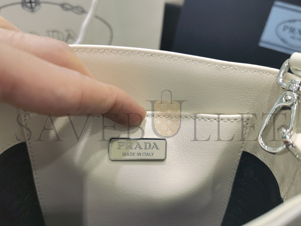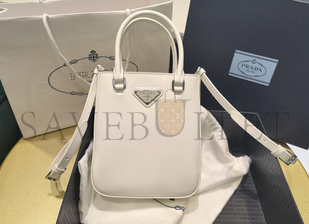 PRADA SMALL CROSSBODY TOTE WHITE BRUSHED LEATHER 1BA331 (17.5*15*5cm)